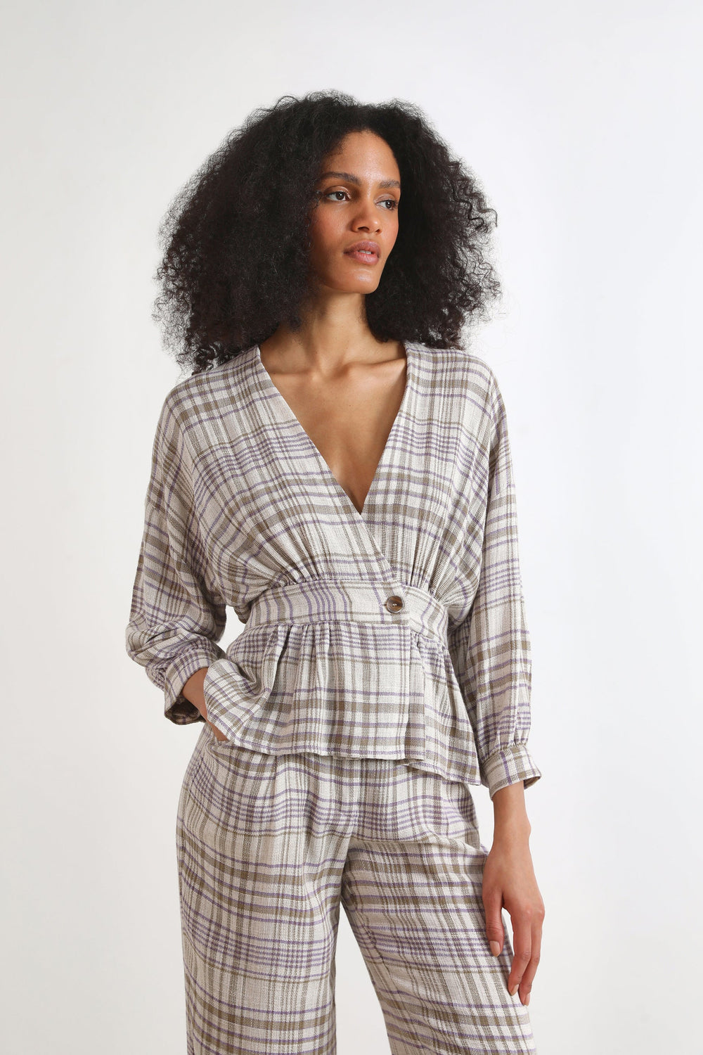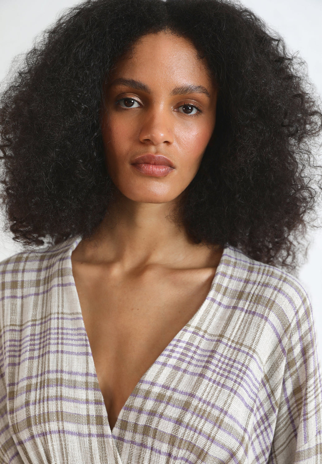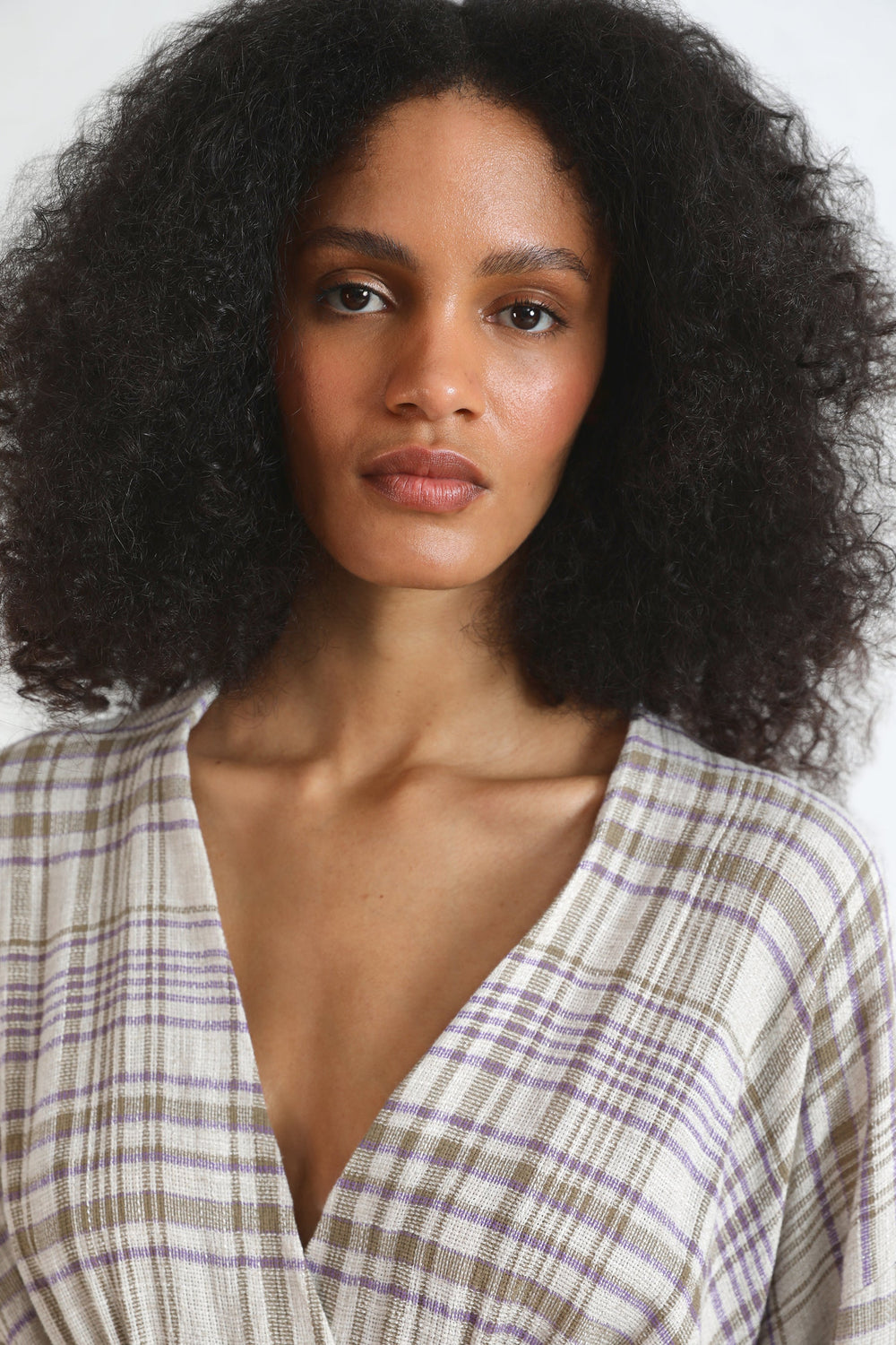 - Confecionado em mistura de linho com pormenores de fio metalizado