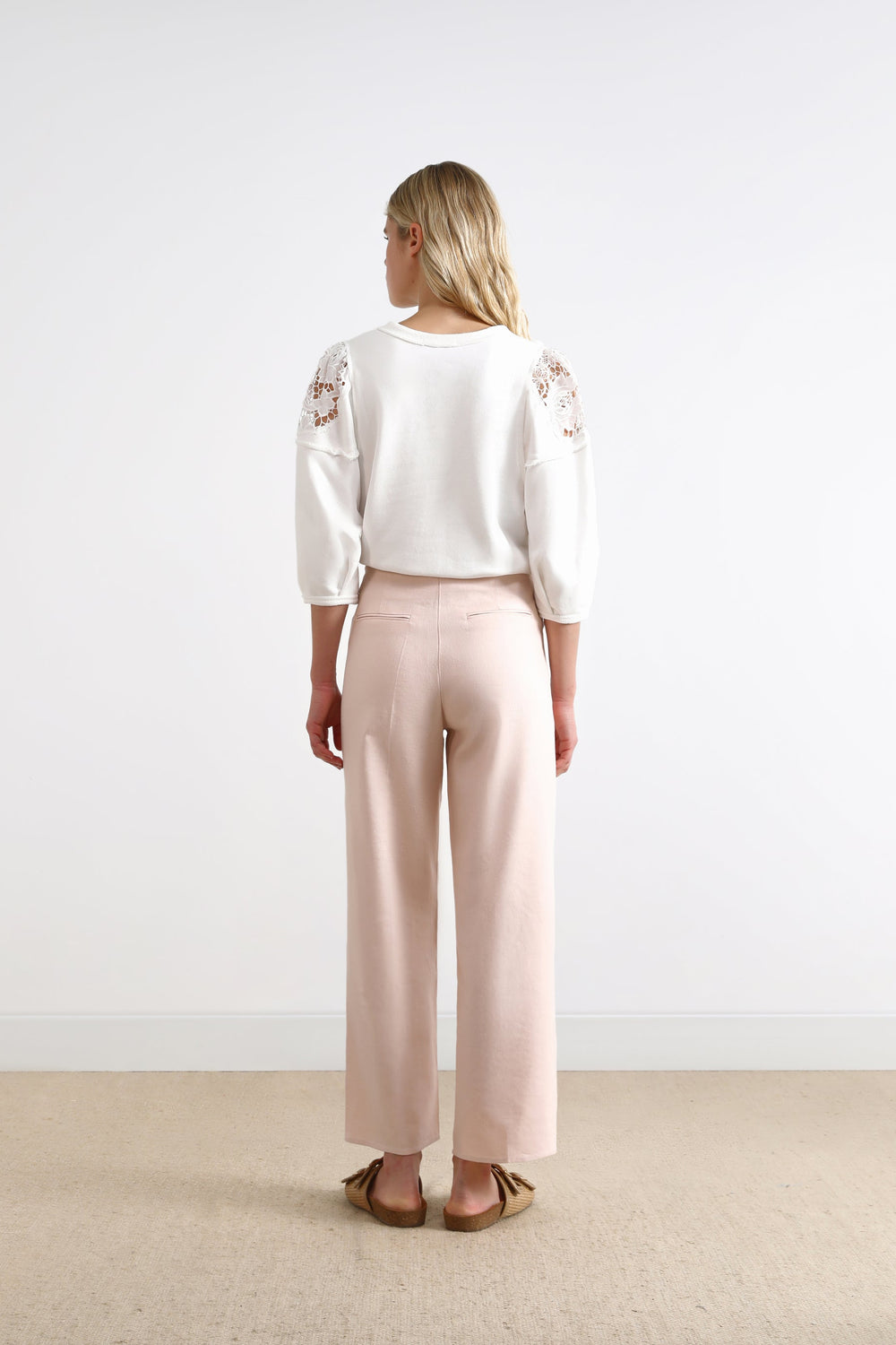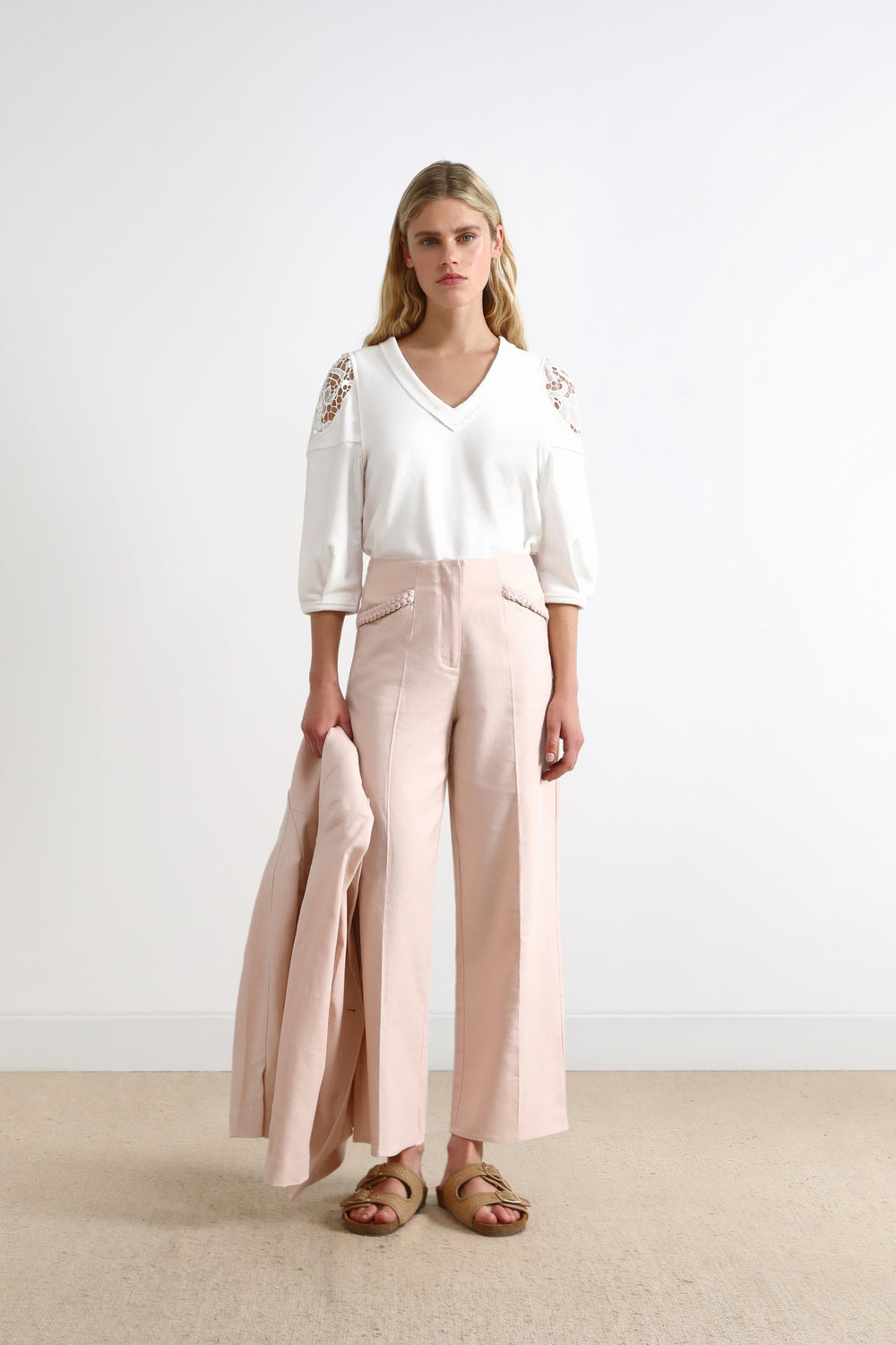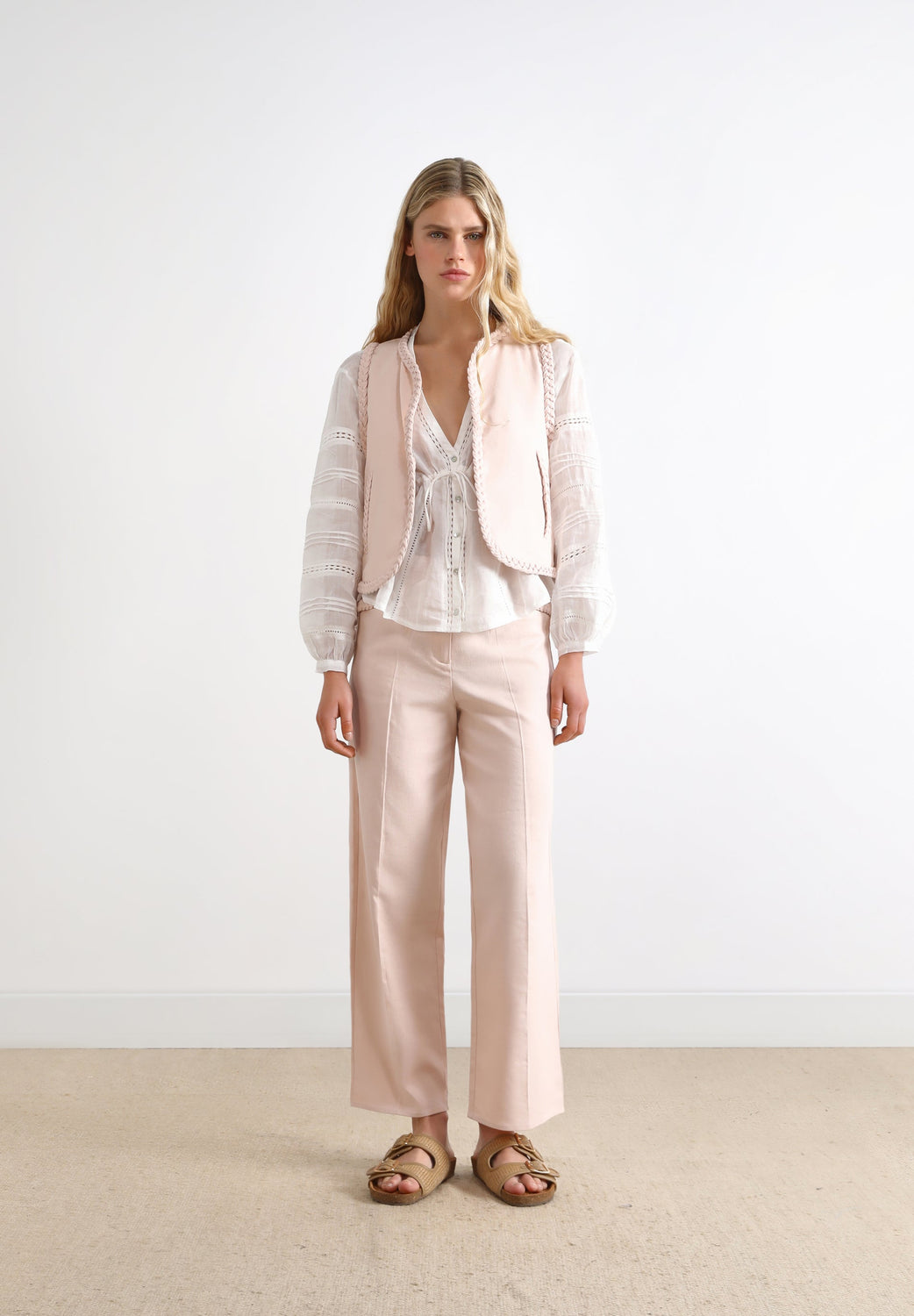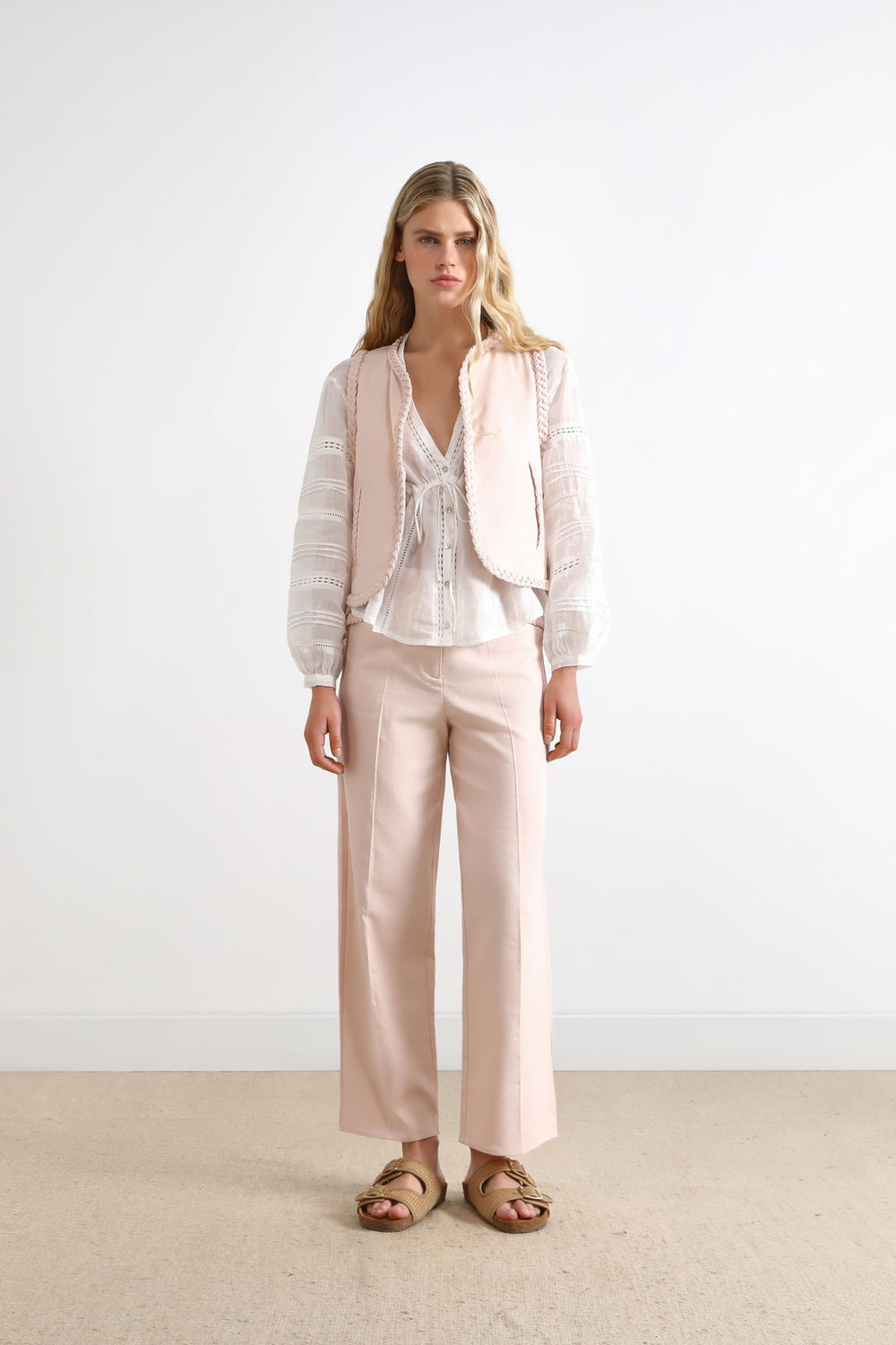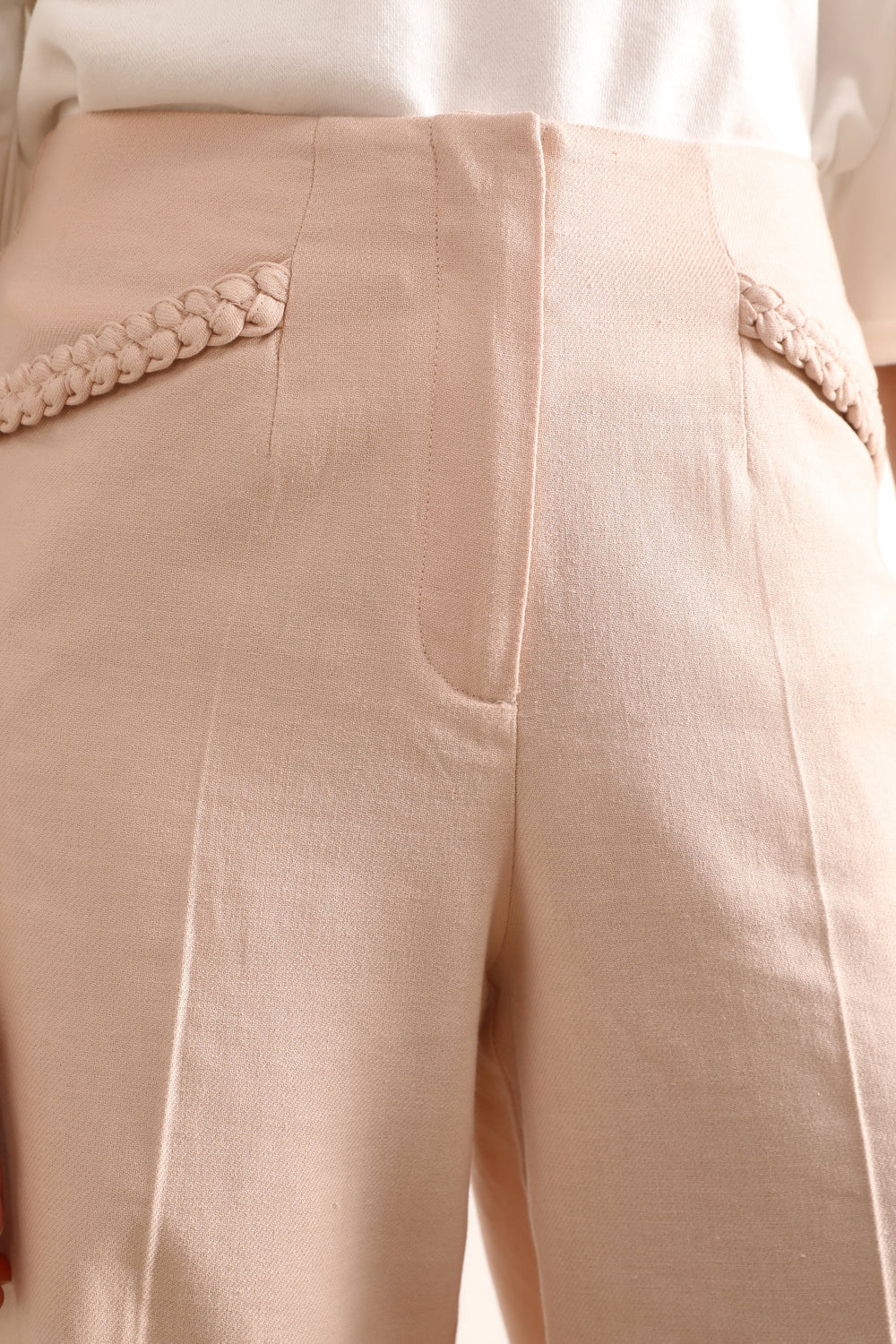 CALÇAS EM LINHO COM PORMENORES TRANÇADOS
