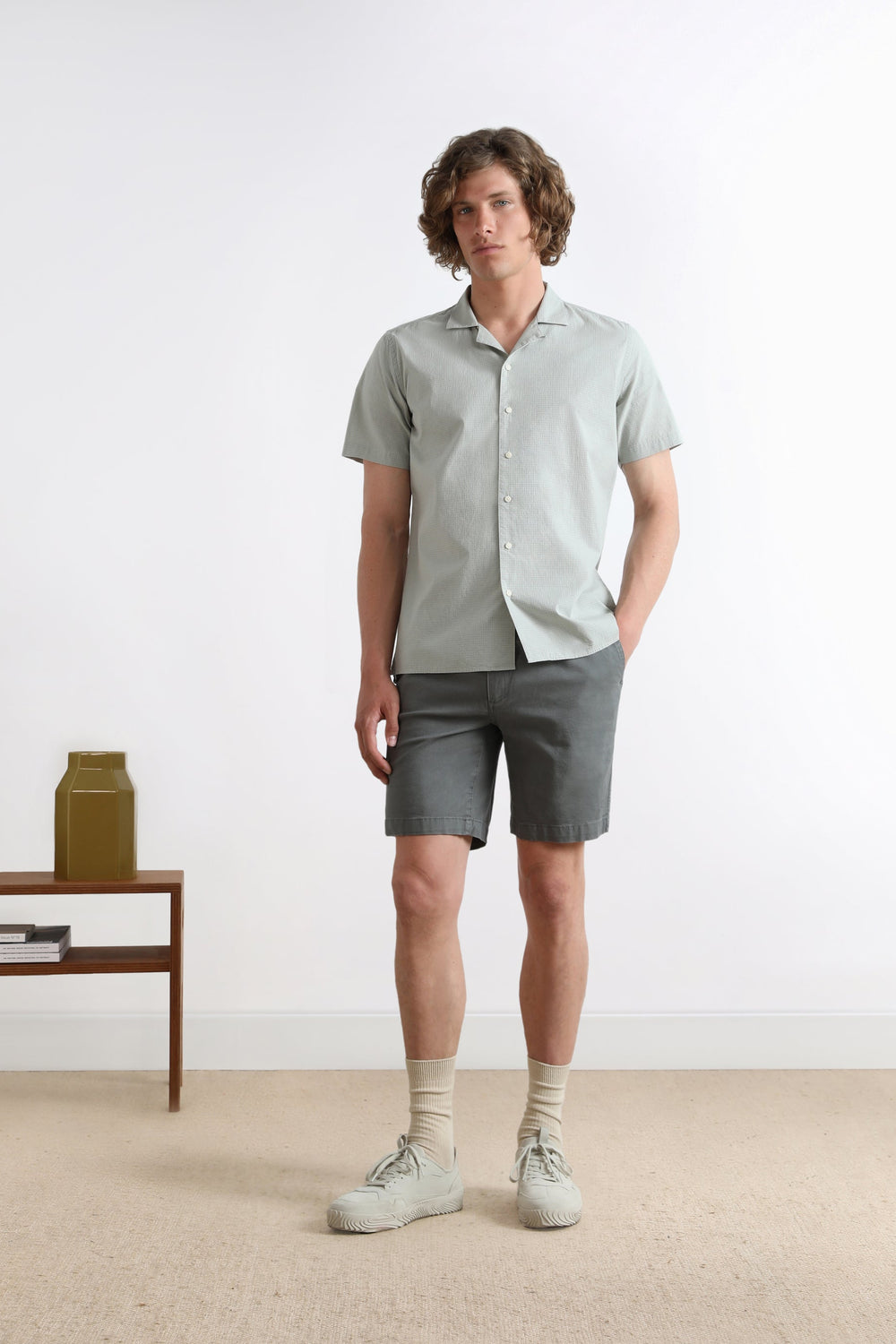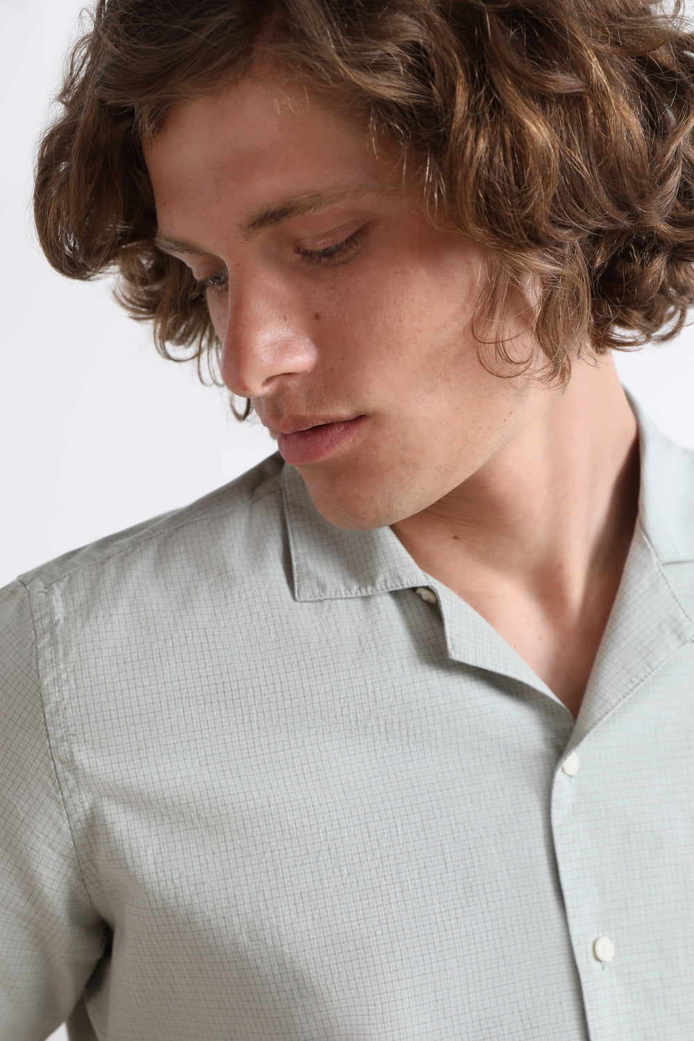 Camisa com tecido de xadrez mini e botões no tom.