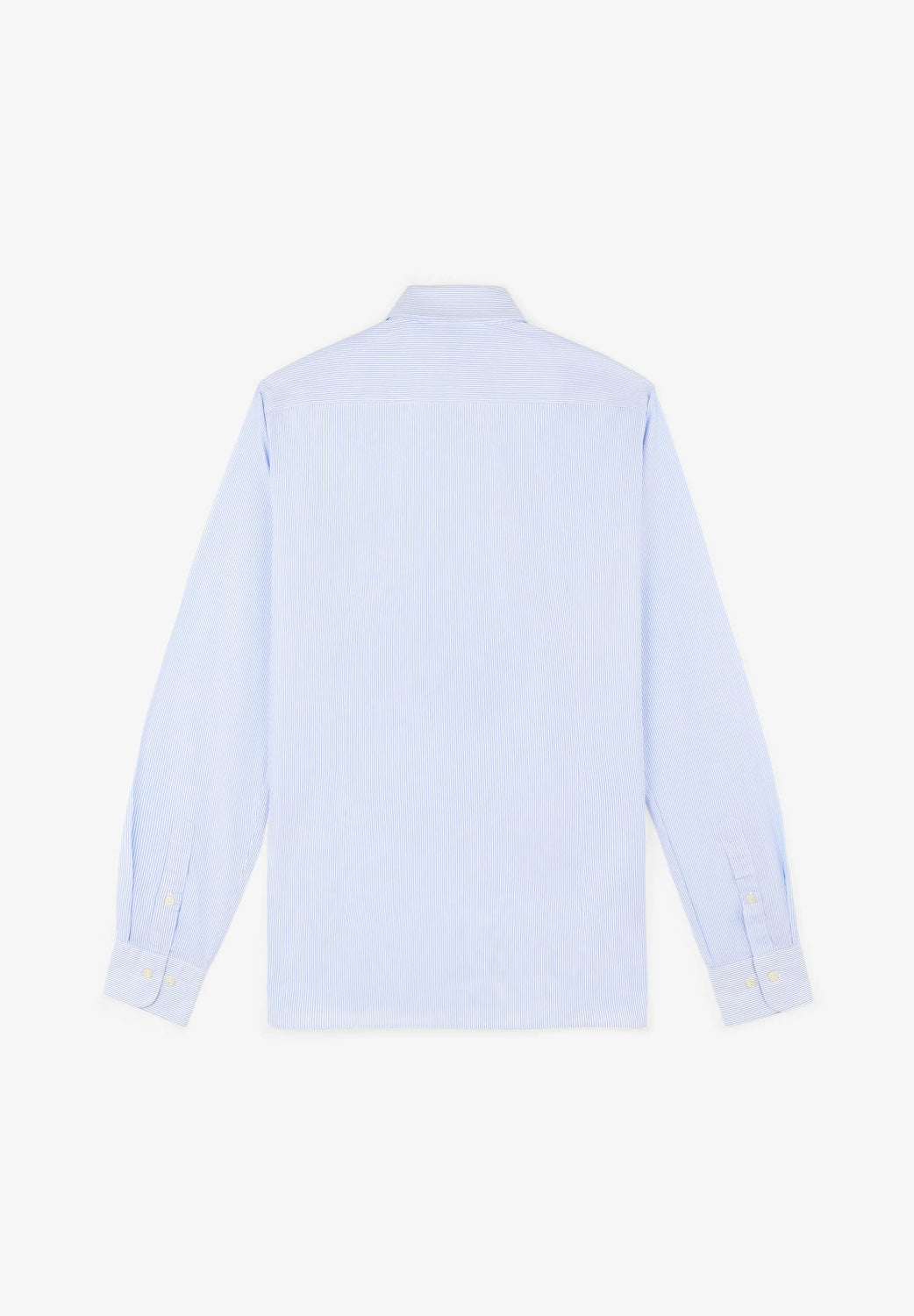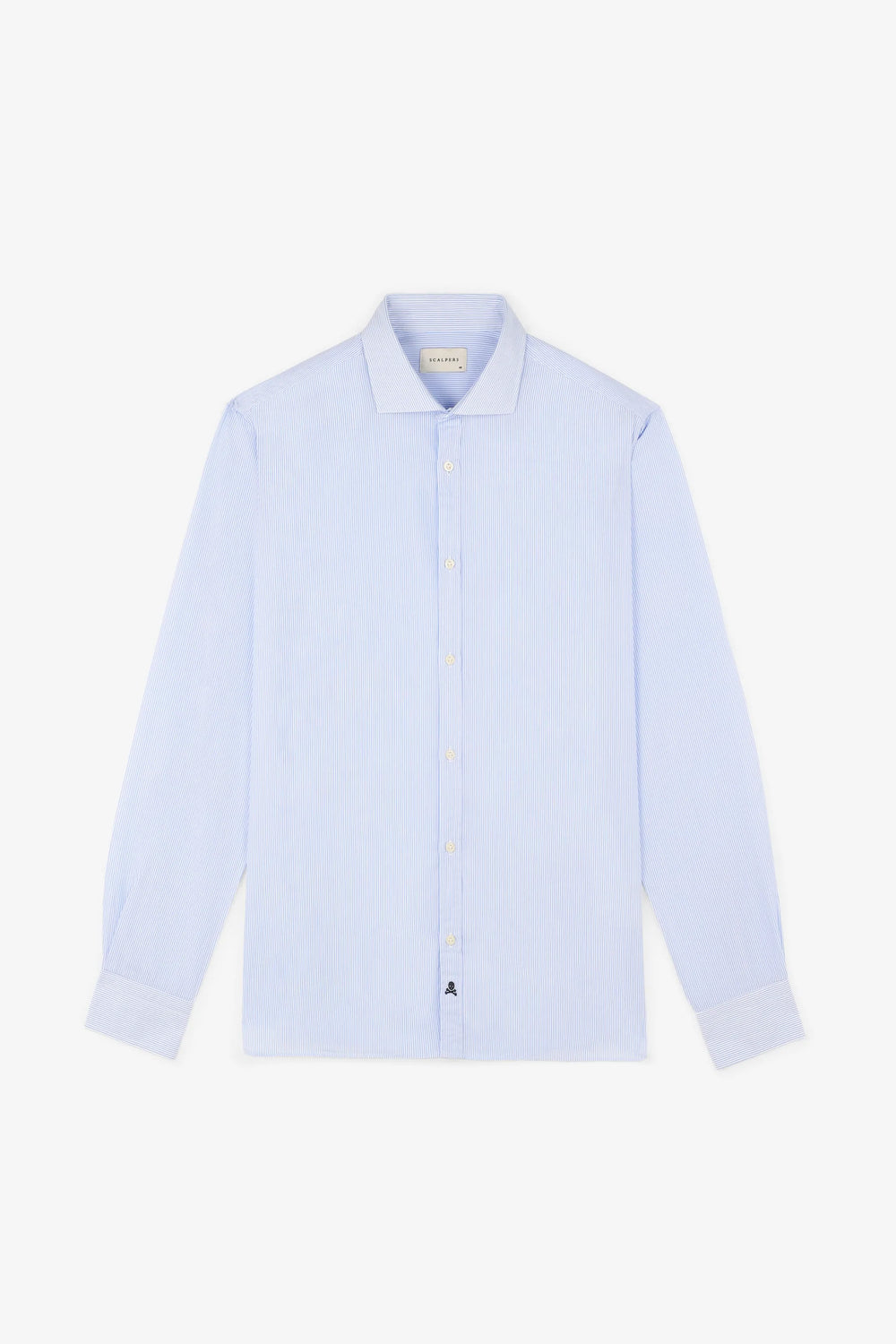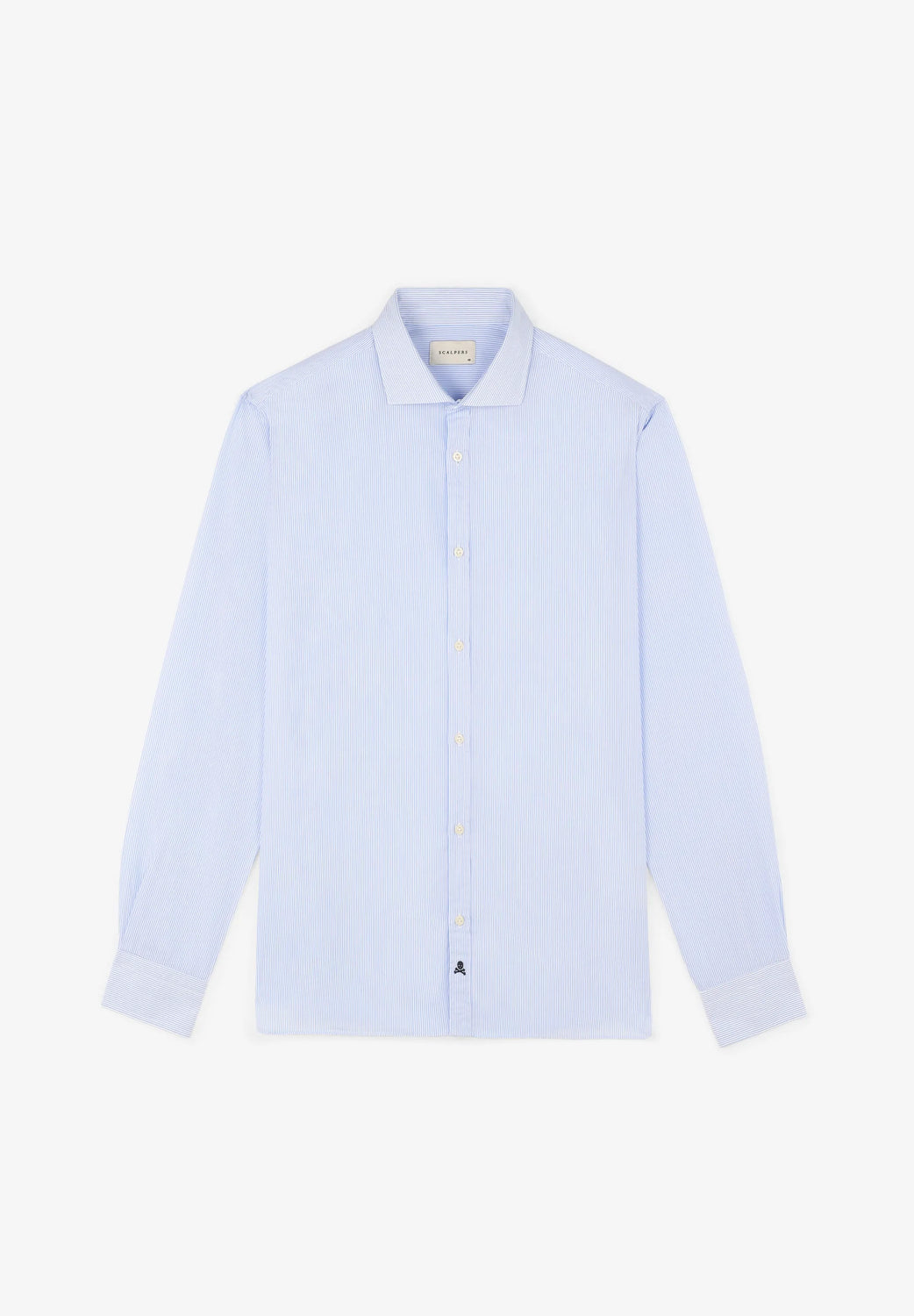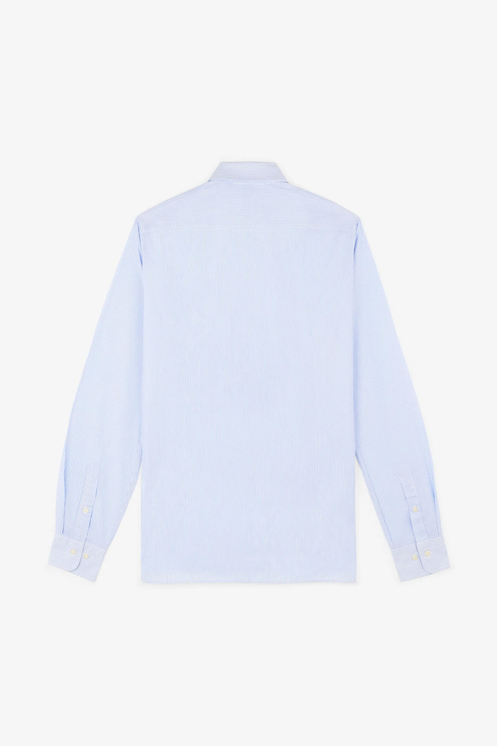 Camisa em tecido de riscas finas com pormenor de logo no placket à frente.