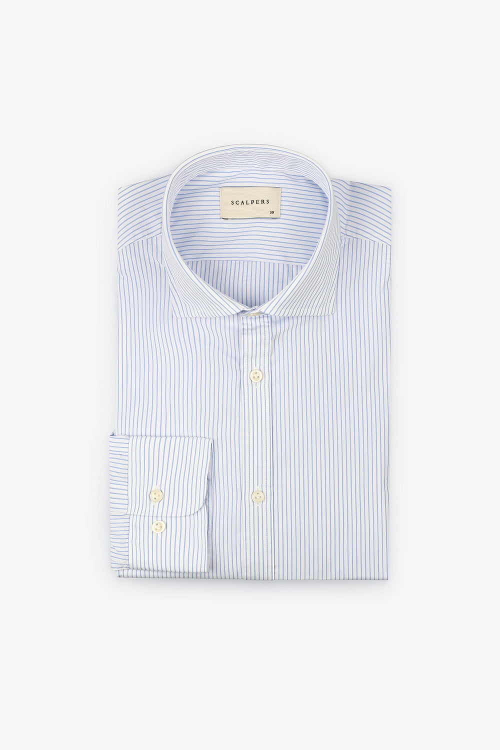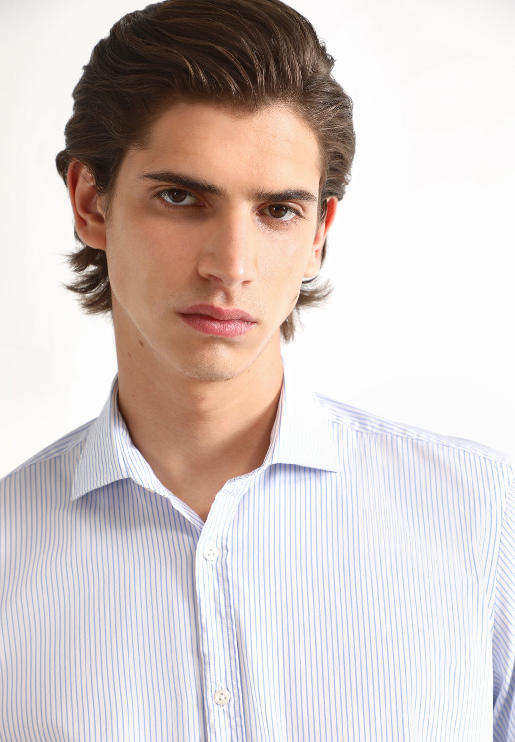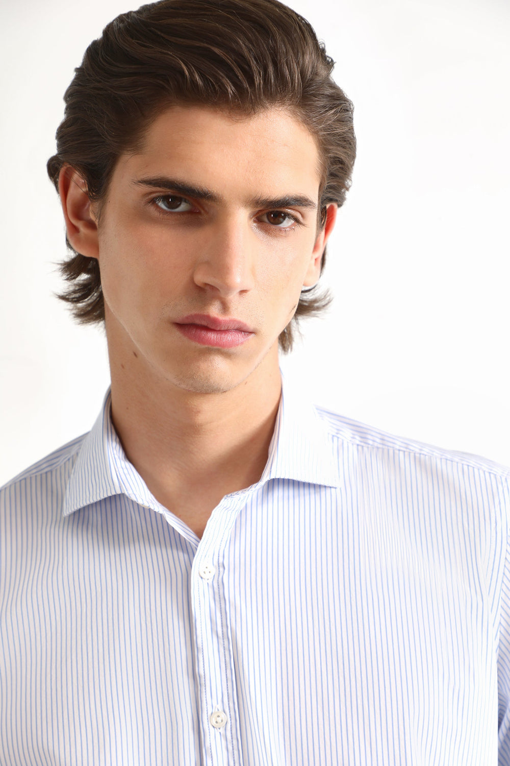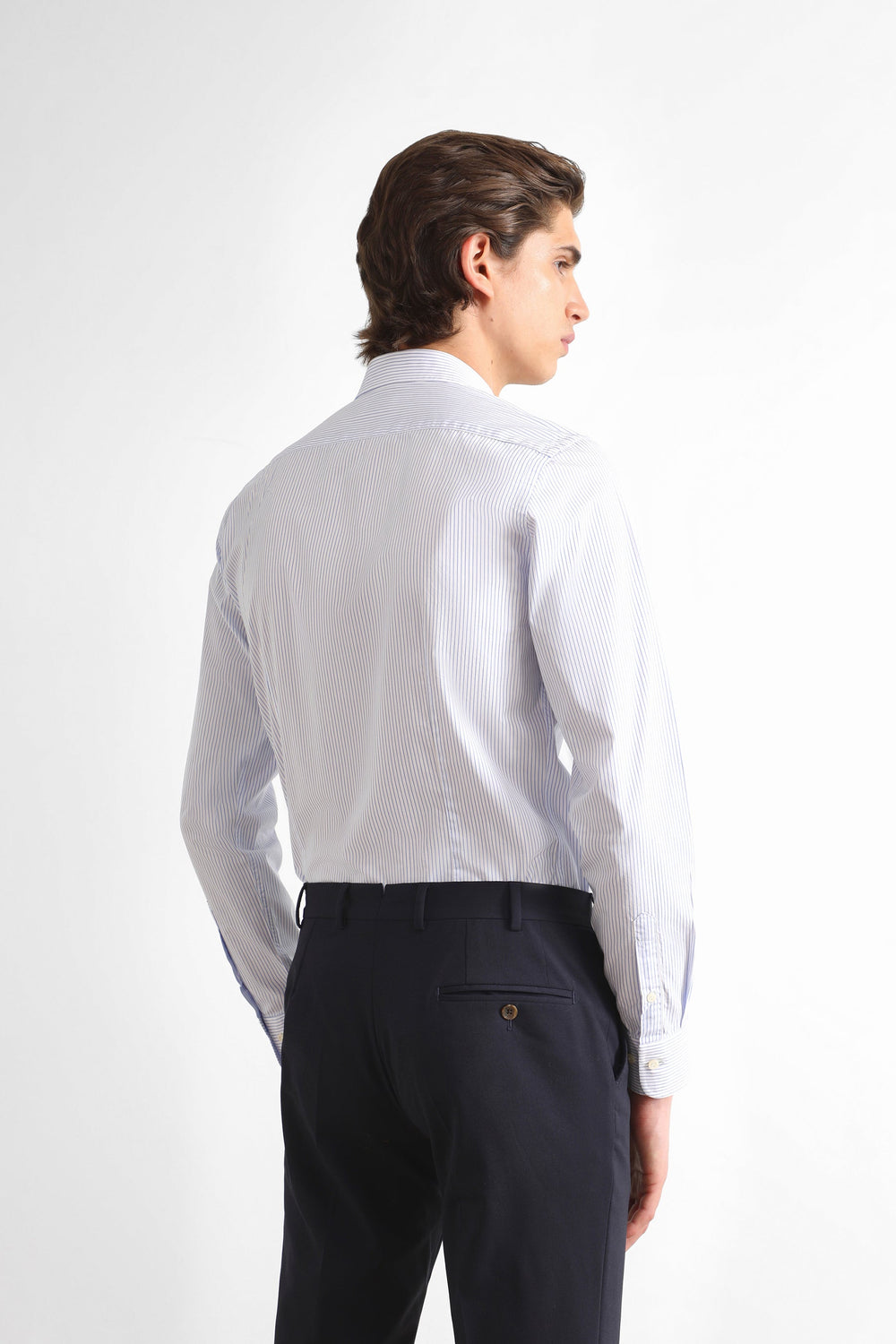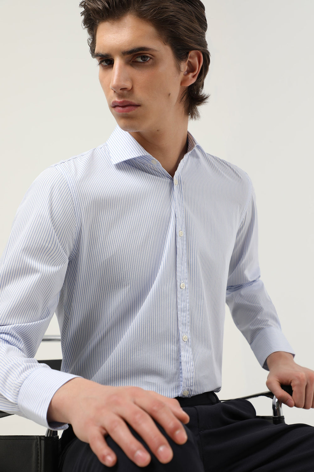 Camisa em tecido de riscas finas com pormenor de logo no placket à frente.