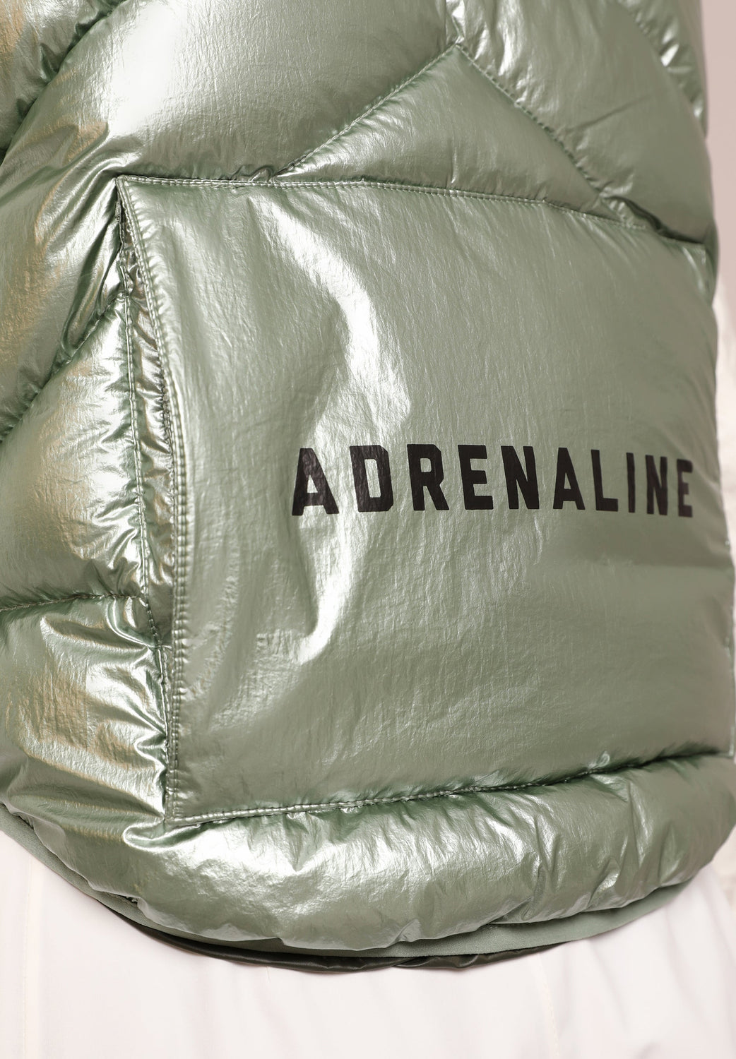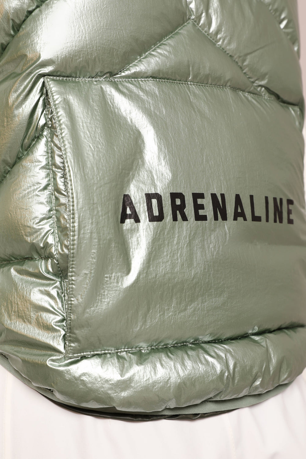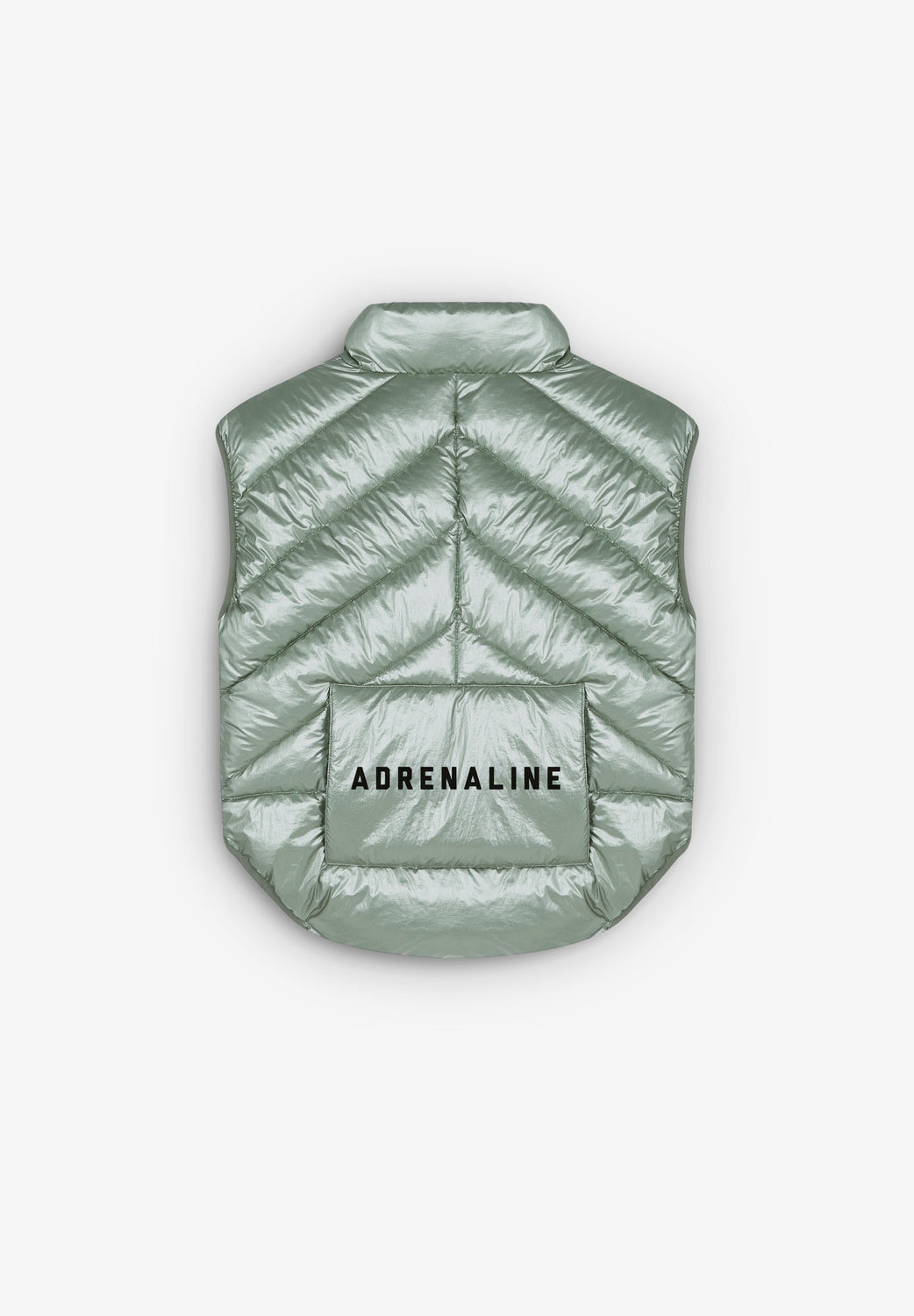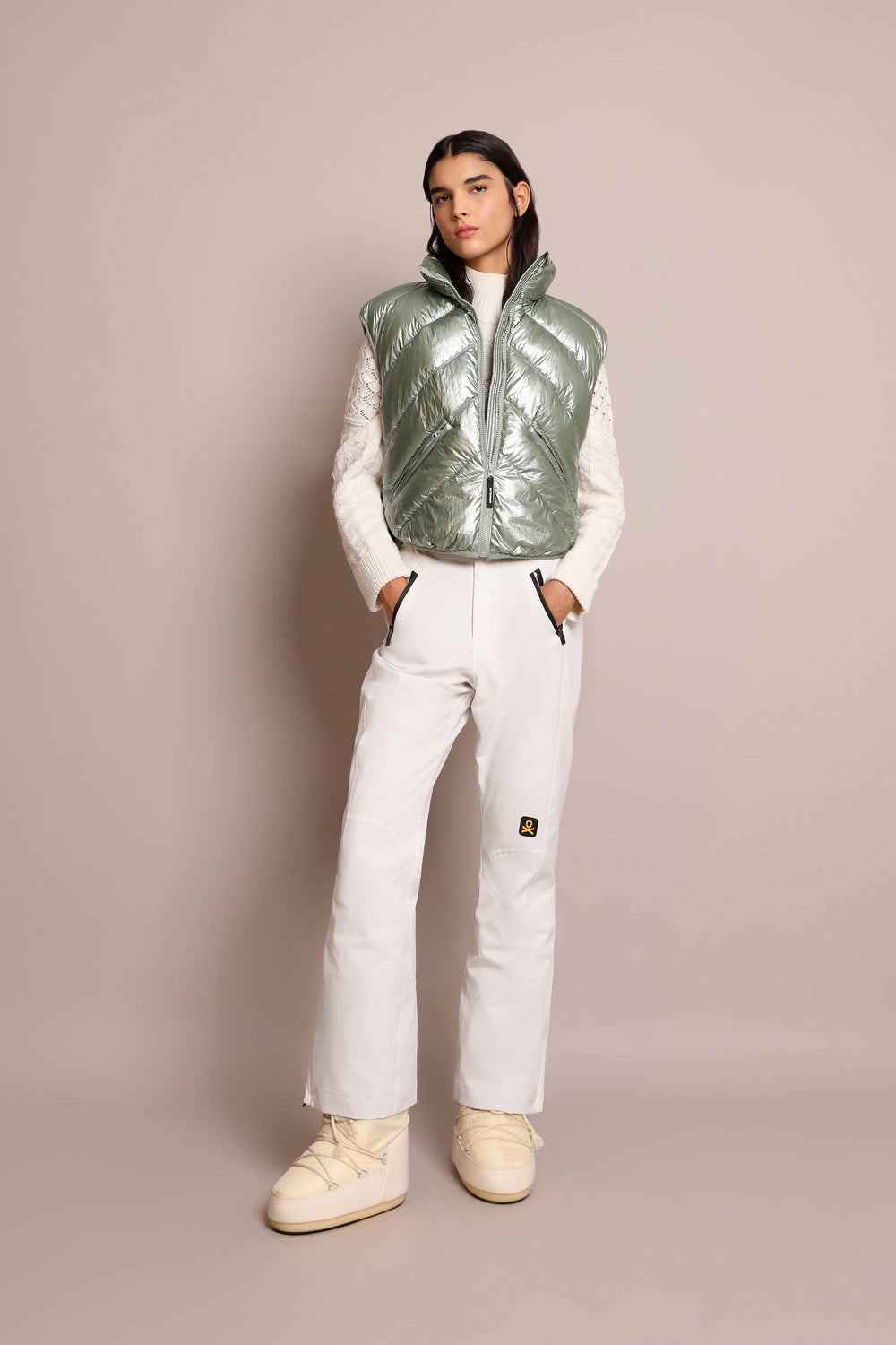Colete metálico feito de tecido técnico. Encaixe regular, gola alta. Fecho de correr. Bolsos laterais. Detalhe do painel traseiro com logótipo.
