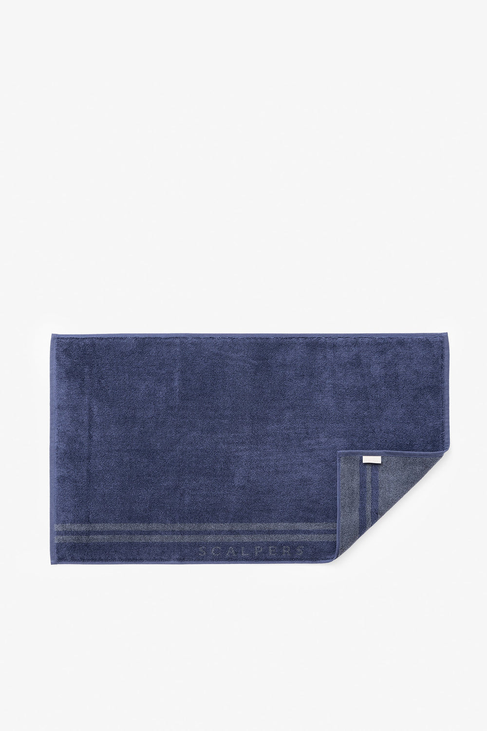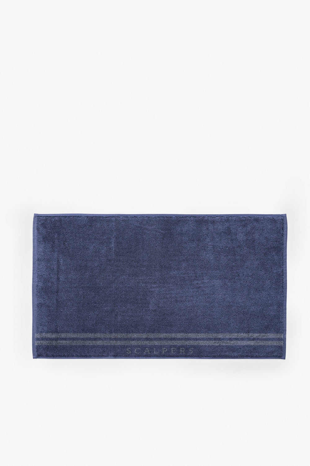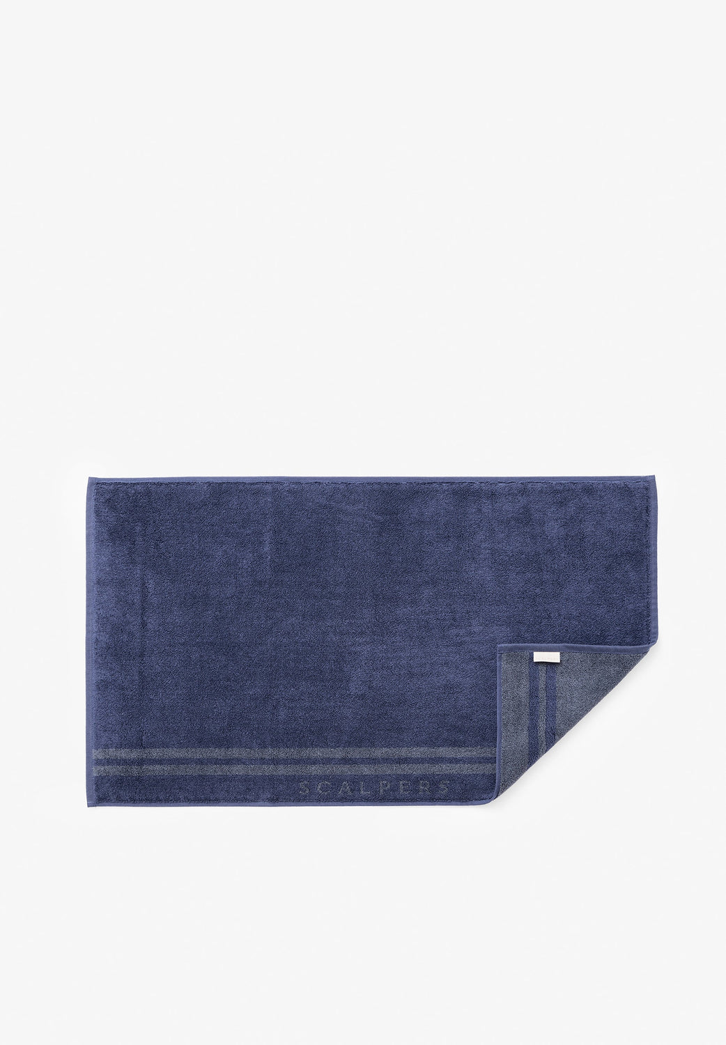 Tapete para casa de banho. Confecionada em 100% algodão Pormenor de riscas e SCALPERS em contraste Comprimento: 80 cm/Largura: 50 cm