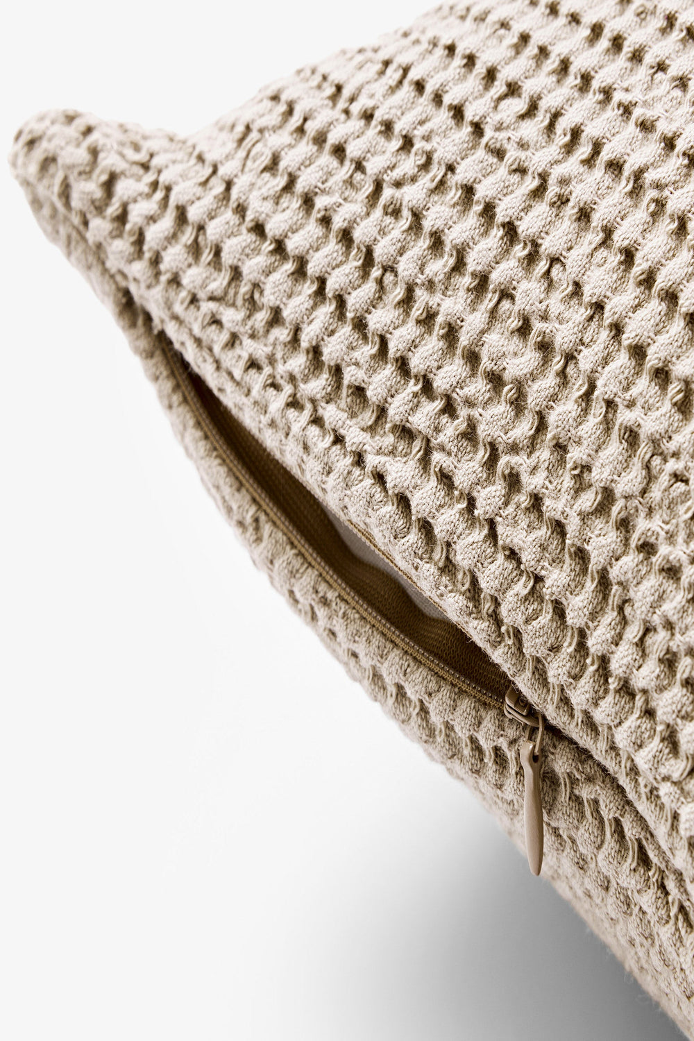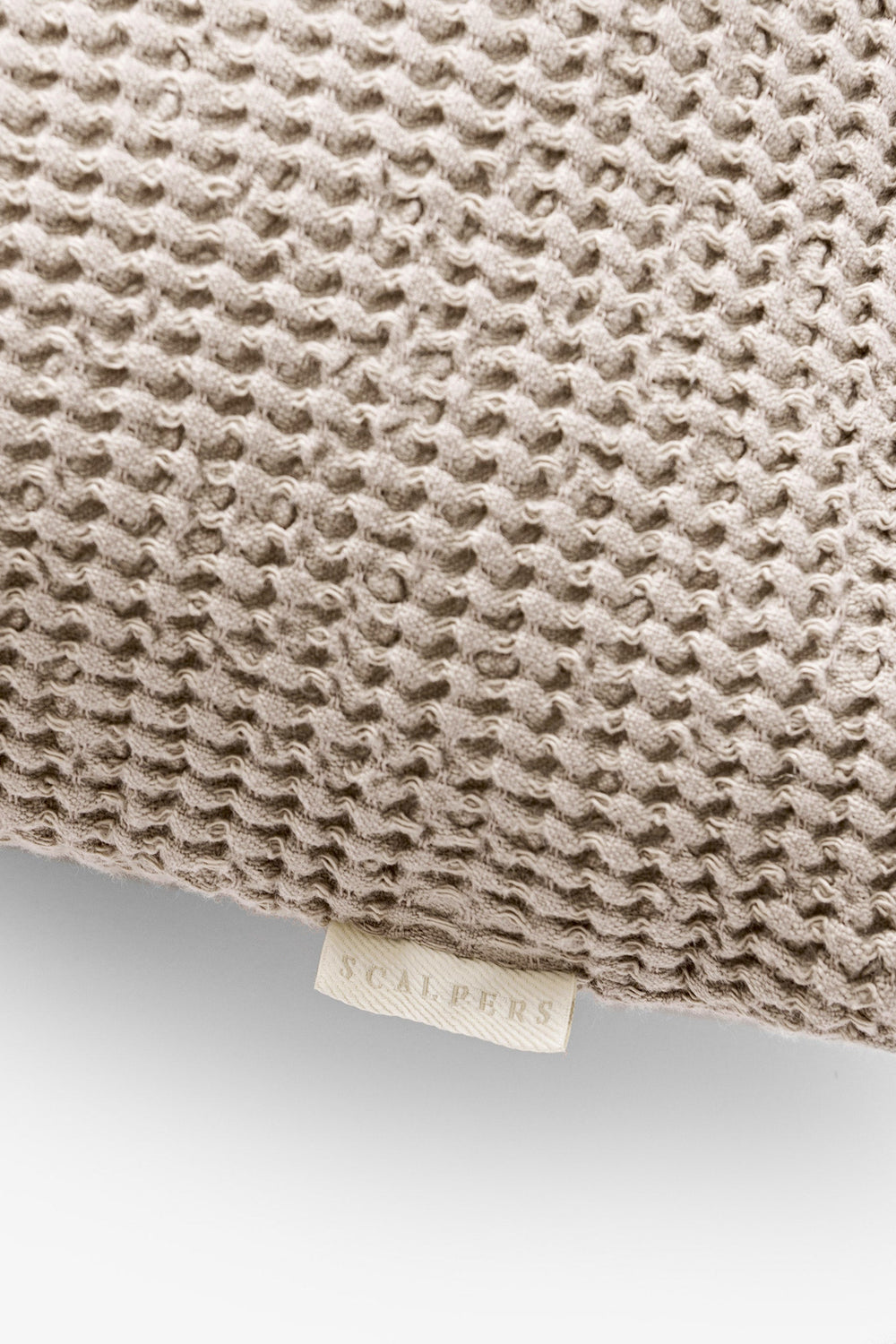 Almofada de malha. Confecionada em mistura de algodão Pormenor de etiquetas na lateral Comprimento: 45 cm/Largura: 45 cm