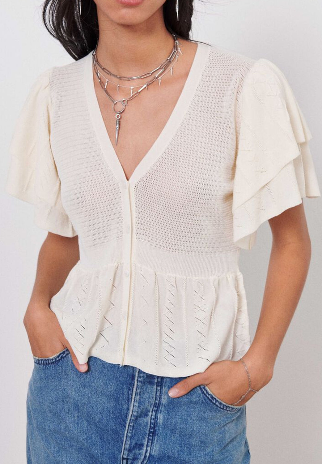 Cárdigan Bash confeccionado en tejido mezcla de viscosa y algodón.