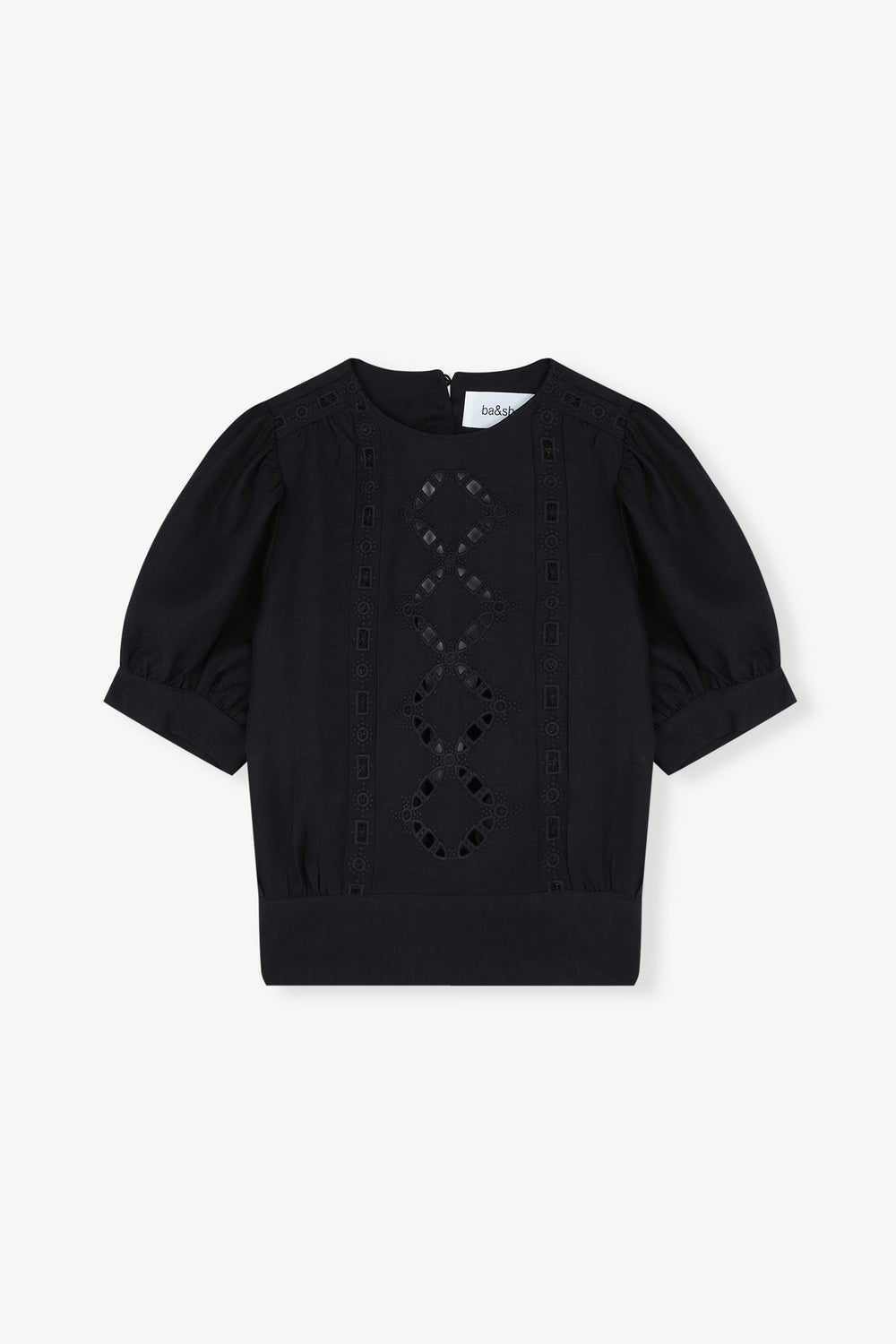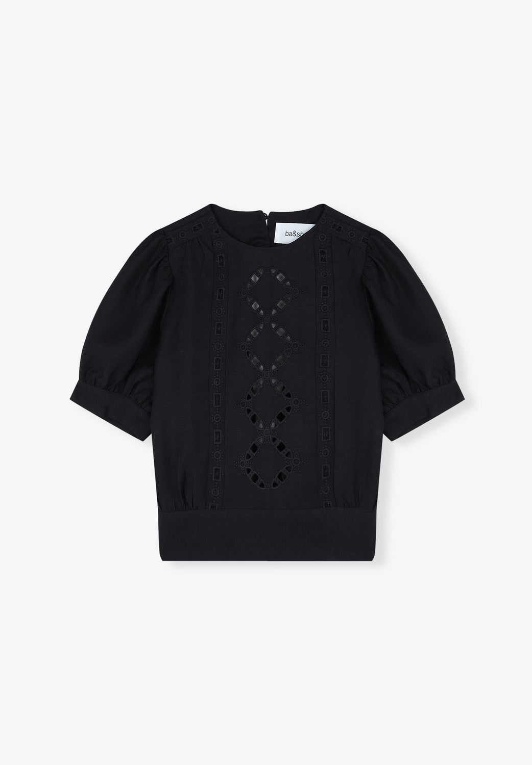 Top bordado Bash confeccionado en tejido mezcla de viscosa y lino.
