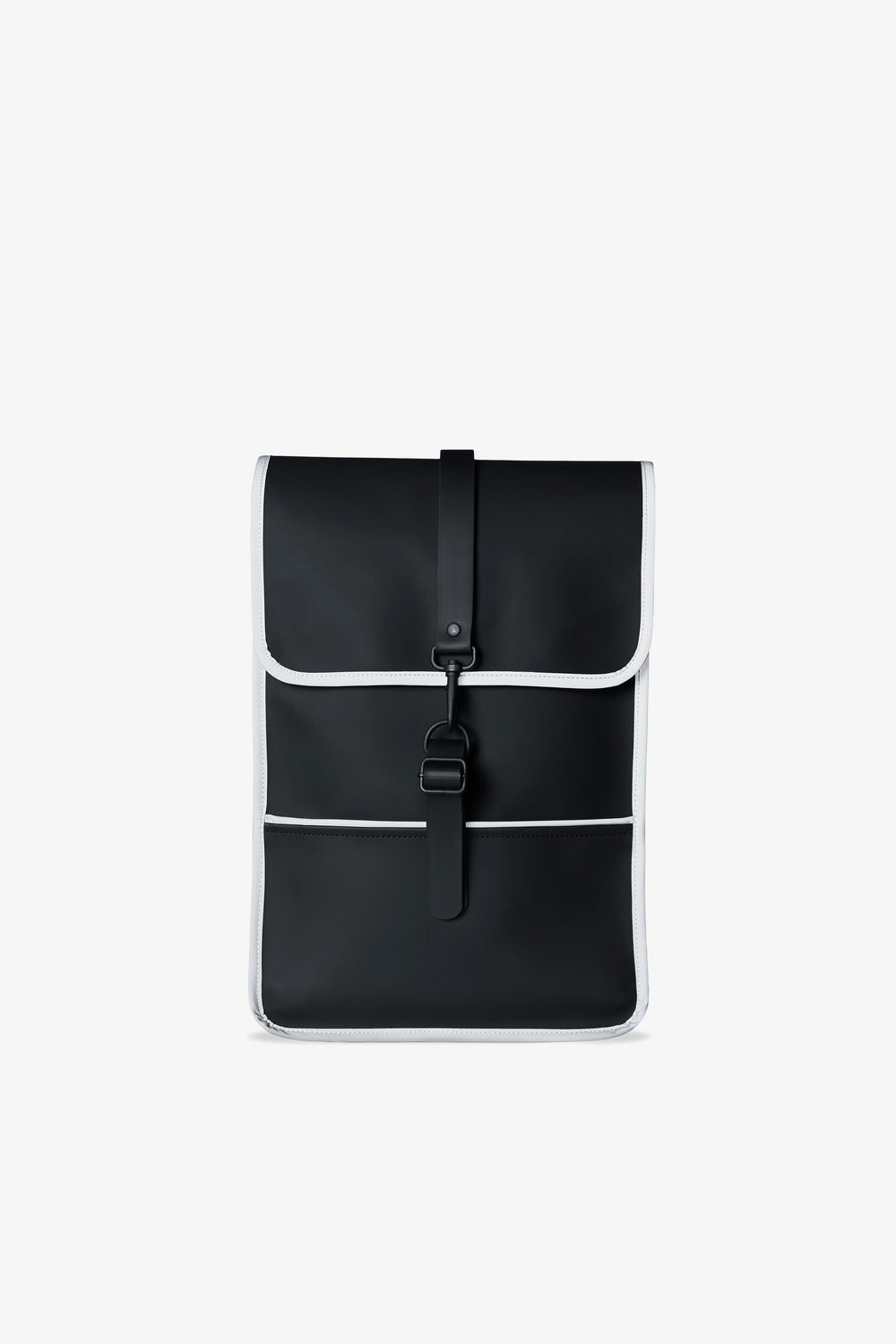 Mochila Rains confecionada em tecido PU impermeável com pormenores refletores.