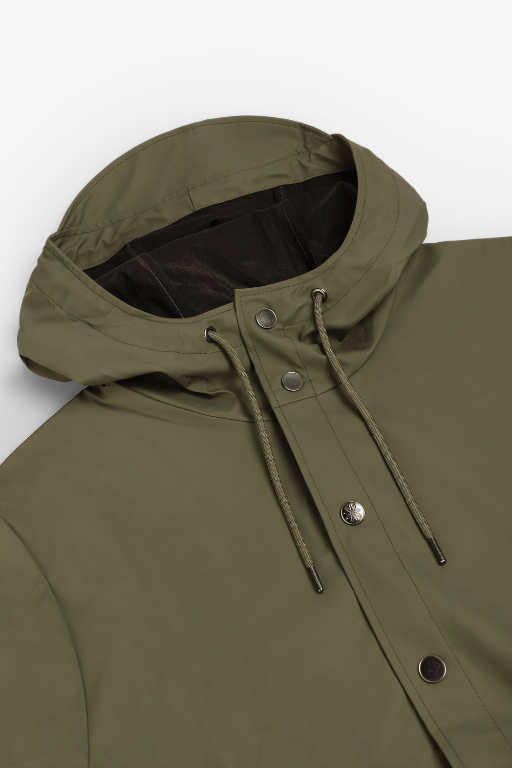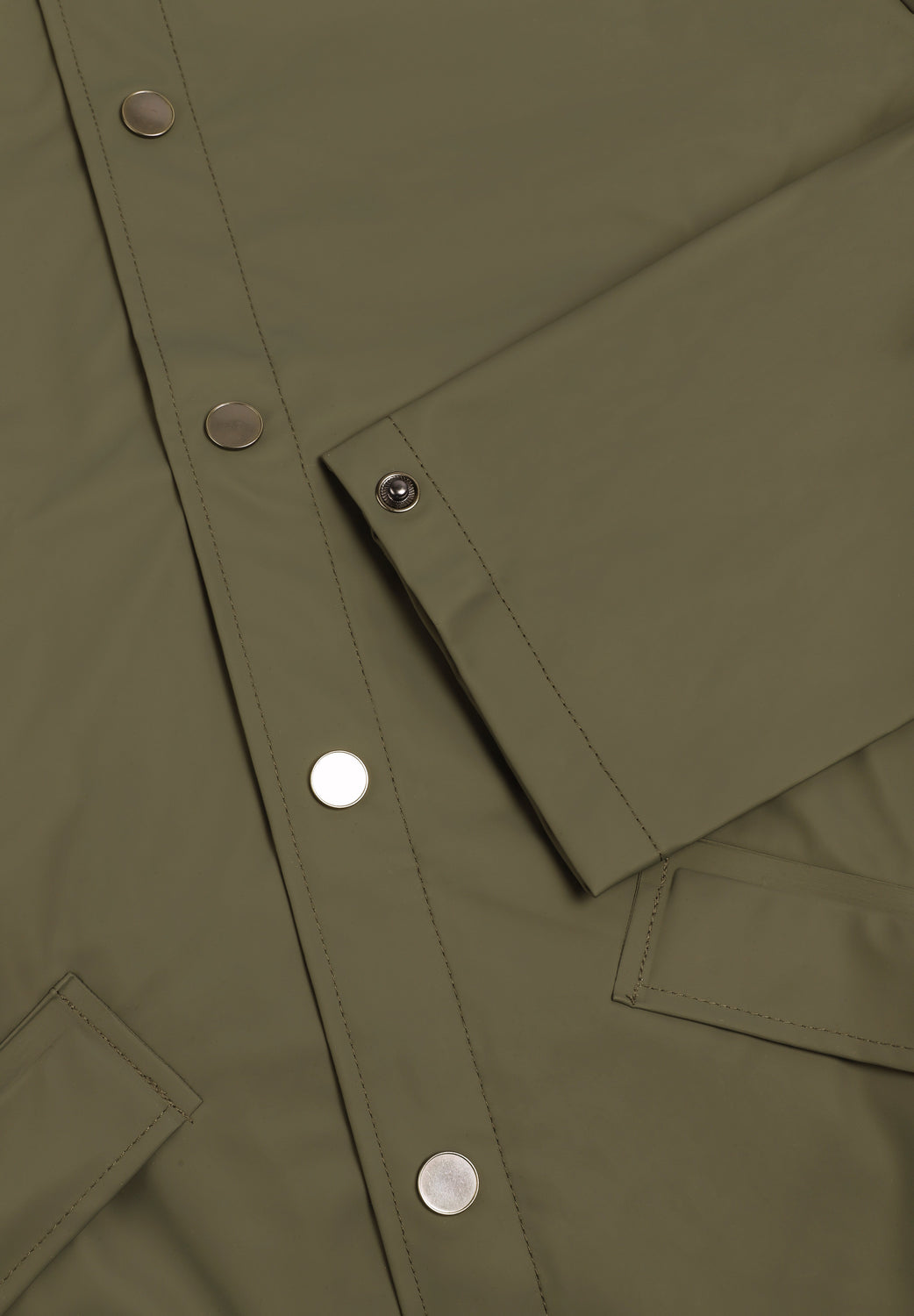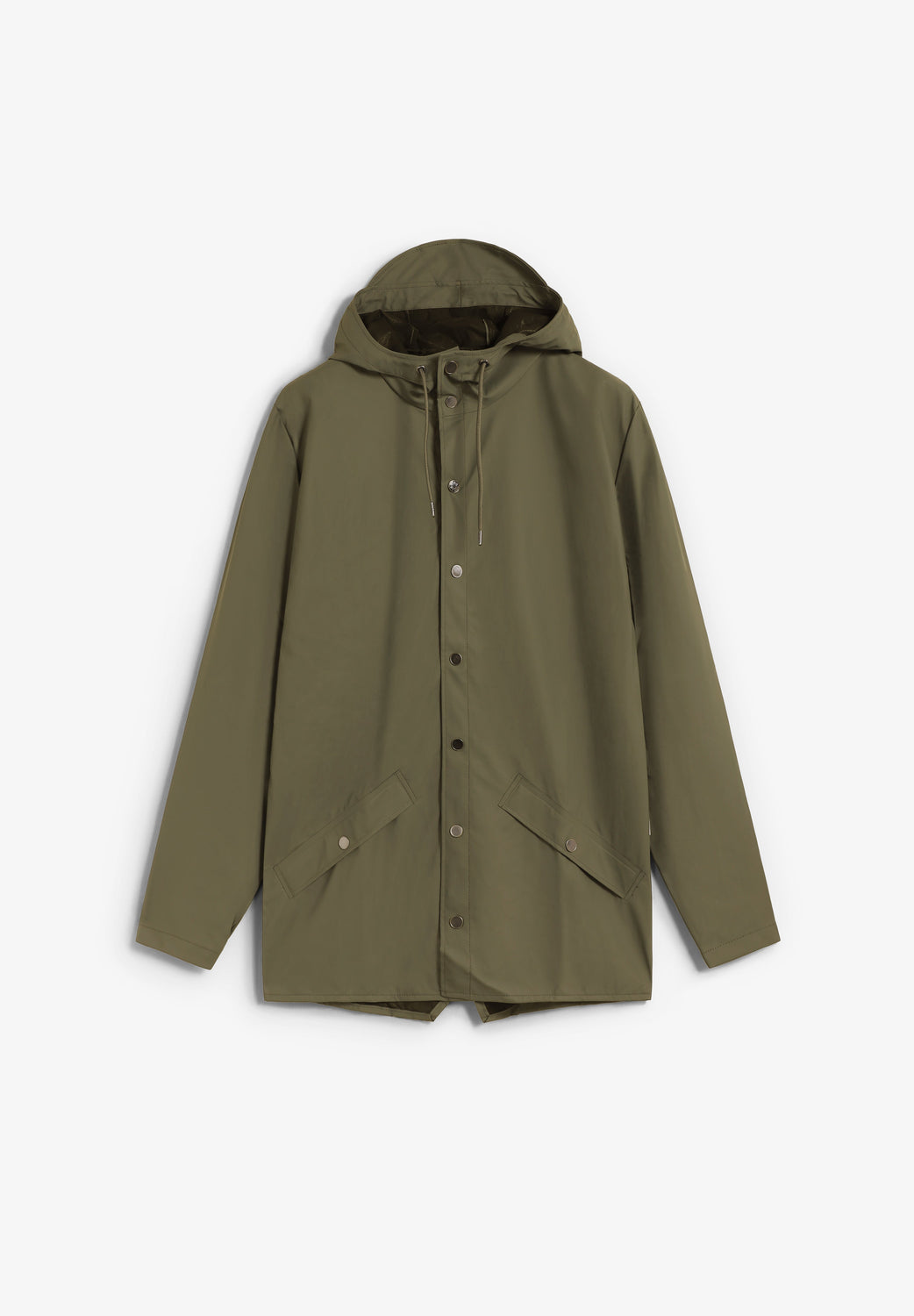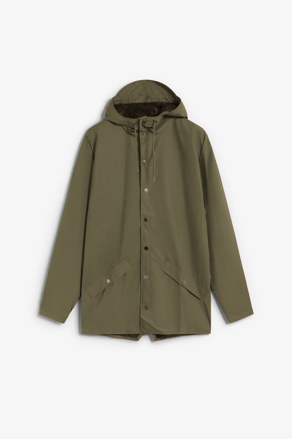 Casaco Rains W3 confecionado em 100% poliéster. Impermeável que tem um placket com botões de pressão, capuz com pala incorporada e dois bolsos laterais com botões de pressão. As mangas têm botões de pressão que permitem um ajuste solto ou recolhido. Possui ilhós nas axilas e uma parte superior traseira com orifícios de ventilação ocultos para maior conforto e respirabilidade. Costuras seladas.