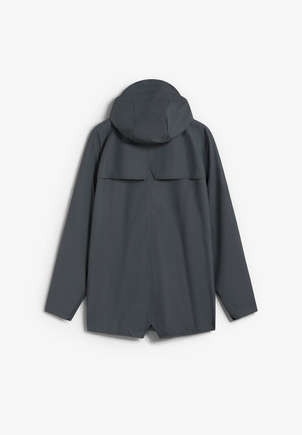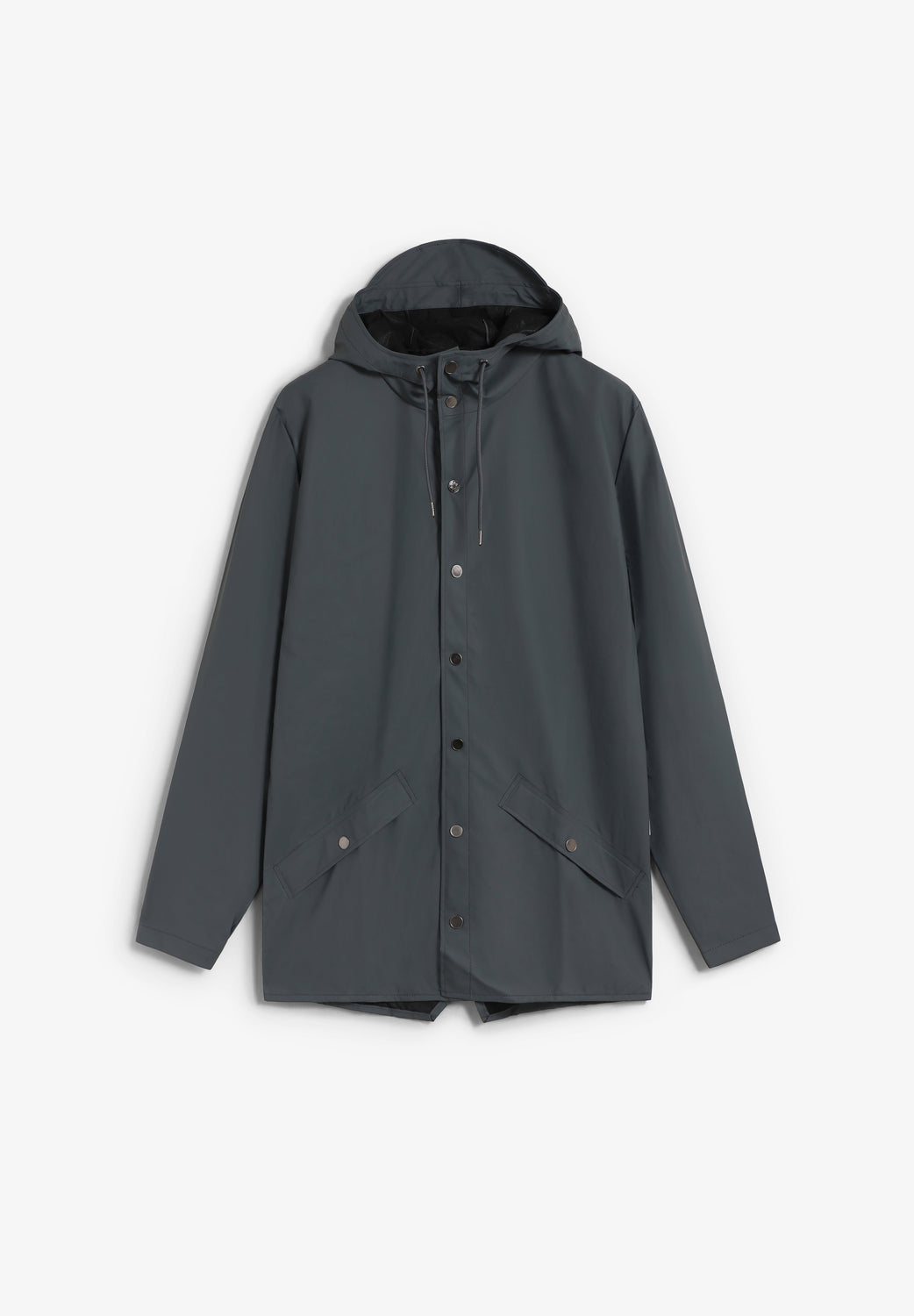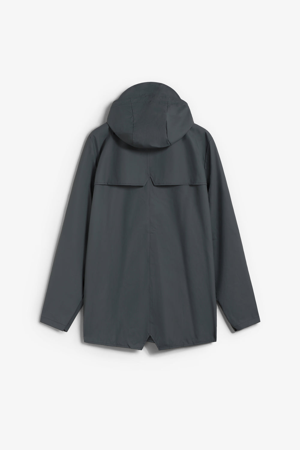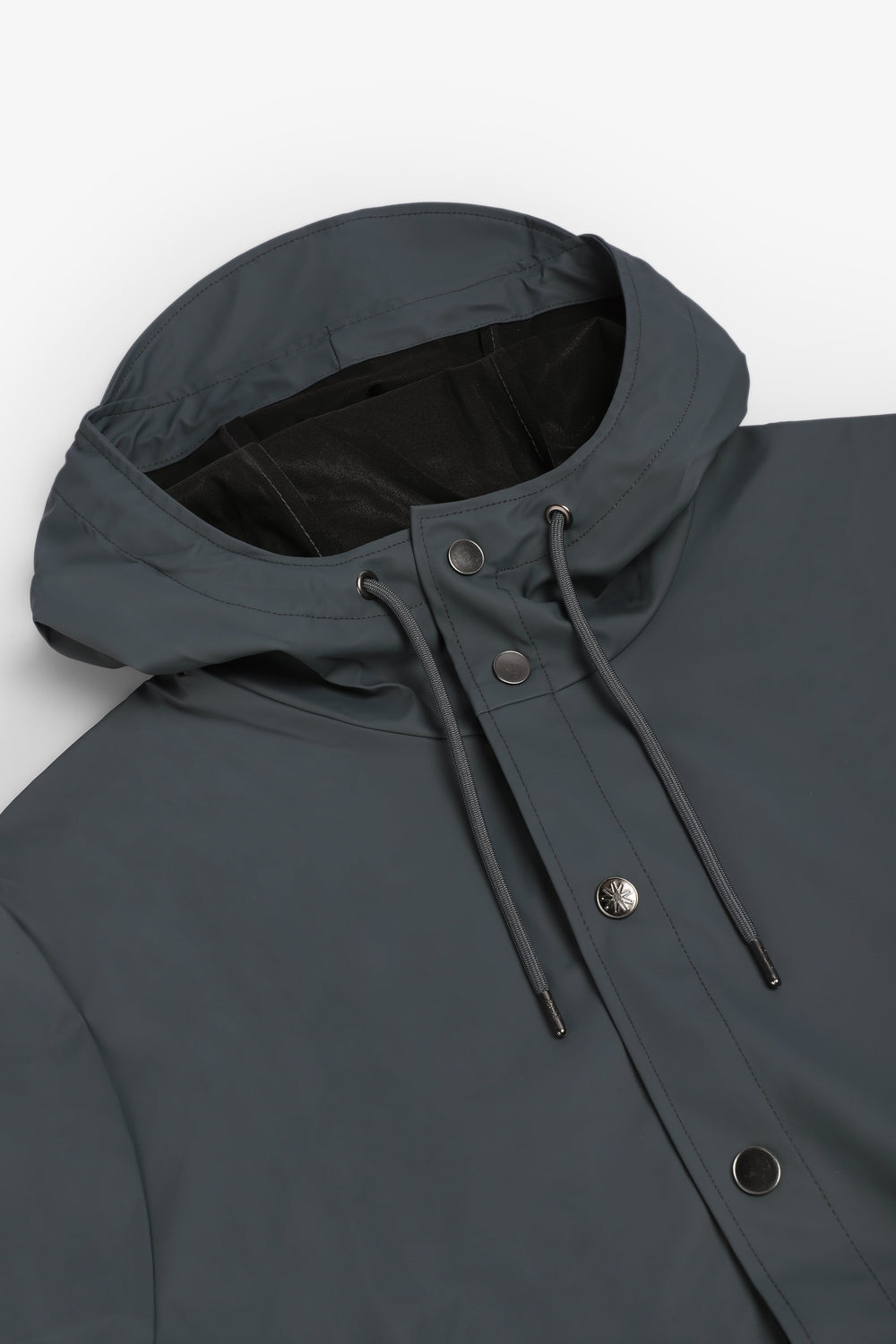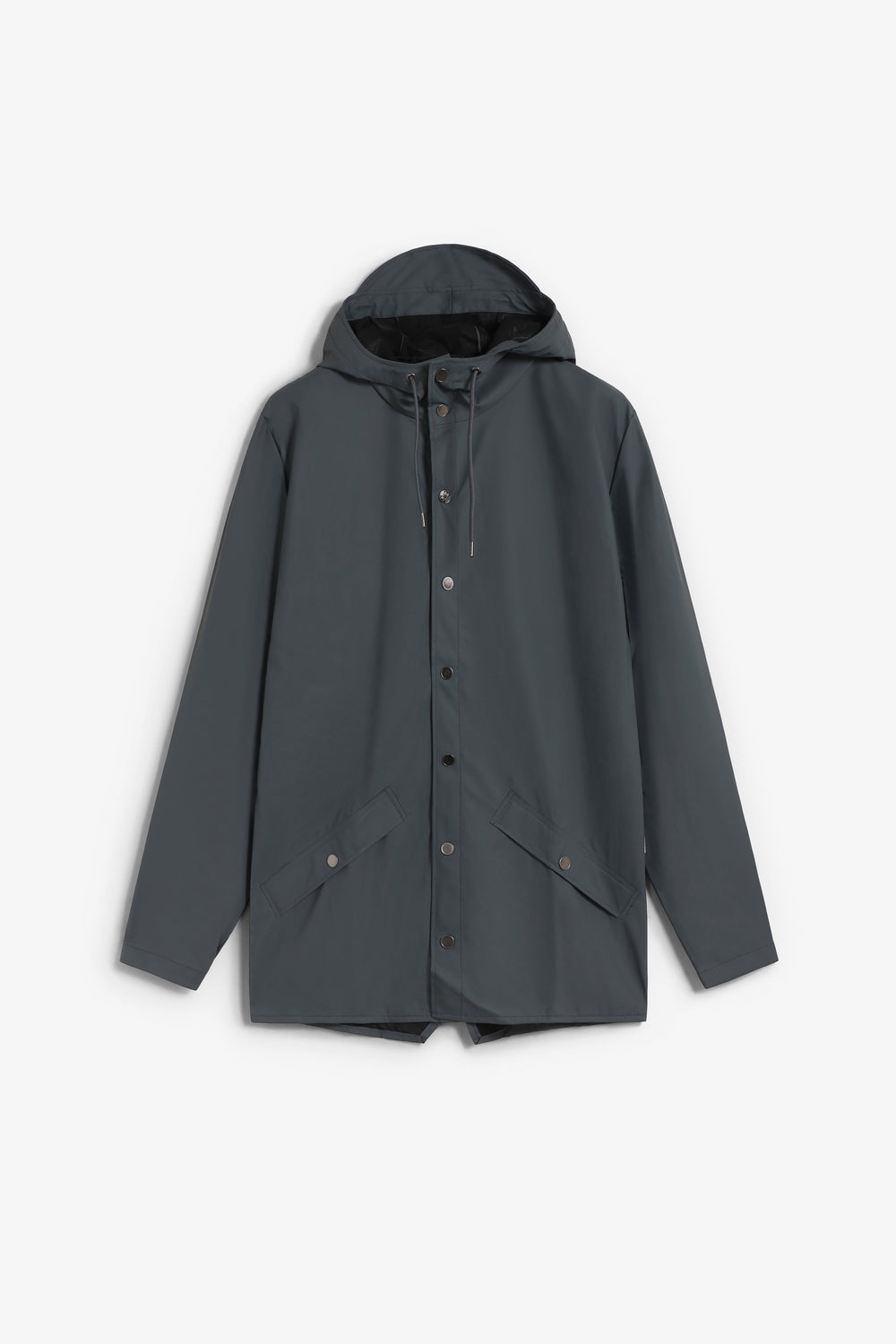 Casaco Rains W3 confecionado em 100% poliéster. Impermeável que tem um placket com botões de pressão, capuz com pala incorporada e dois bolsos laterais com botões de pressão. As mangas têm botões de pressão que permitem um ajuste solto ou recolhido. Possui ilhós nas axilas e uma parte superior traseira com orifícios de ventilação ocultos para maior conforto e respirabilidade. Costuras seladas.