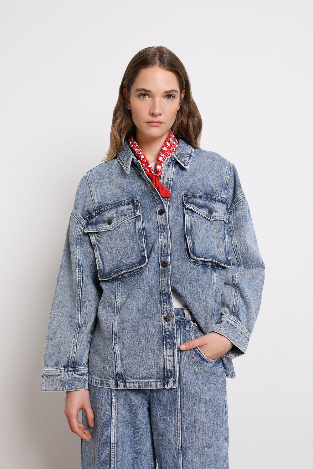 Sobrecamisa American Vintage confeccionada en tejido denim 100% algodón.
