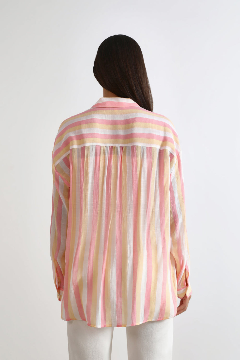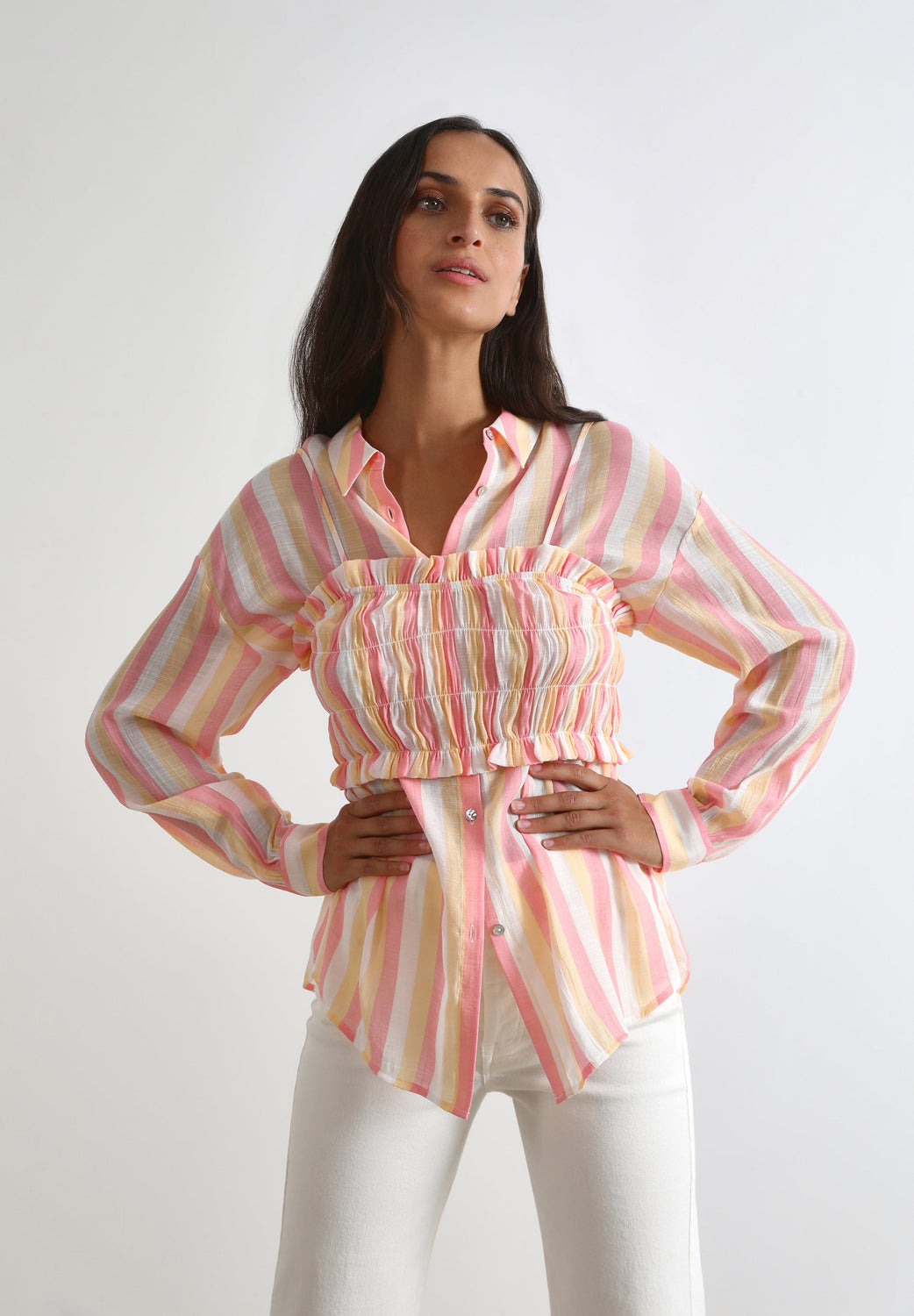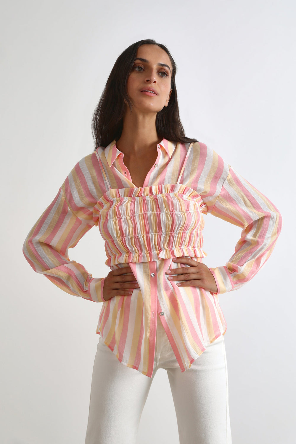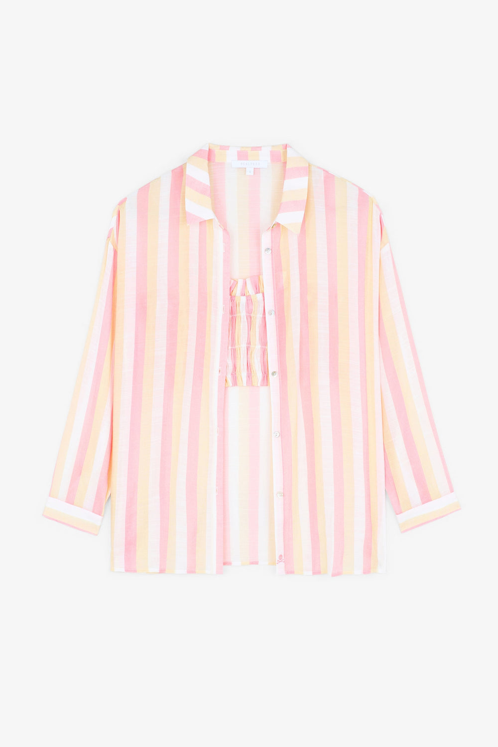 CONJUNTO DE CAMISA COM TOP ÀS RISCAS