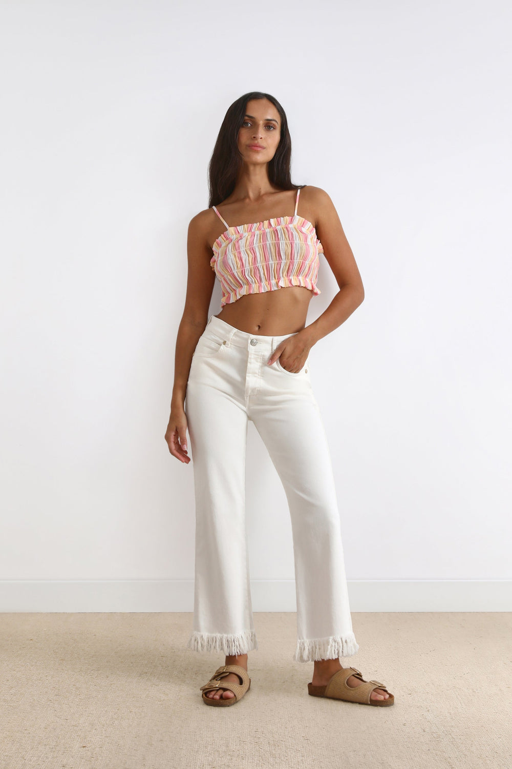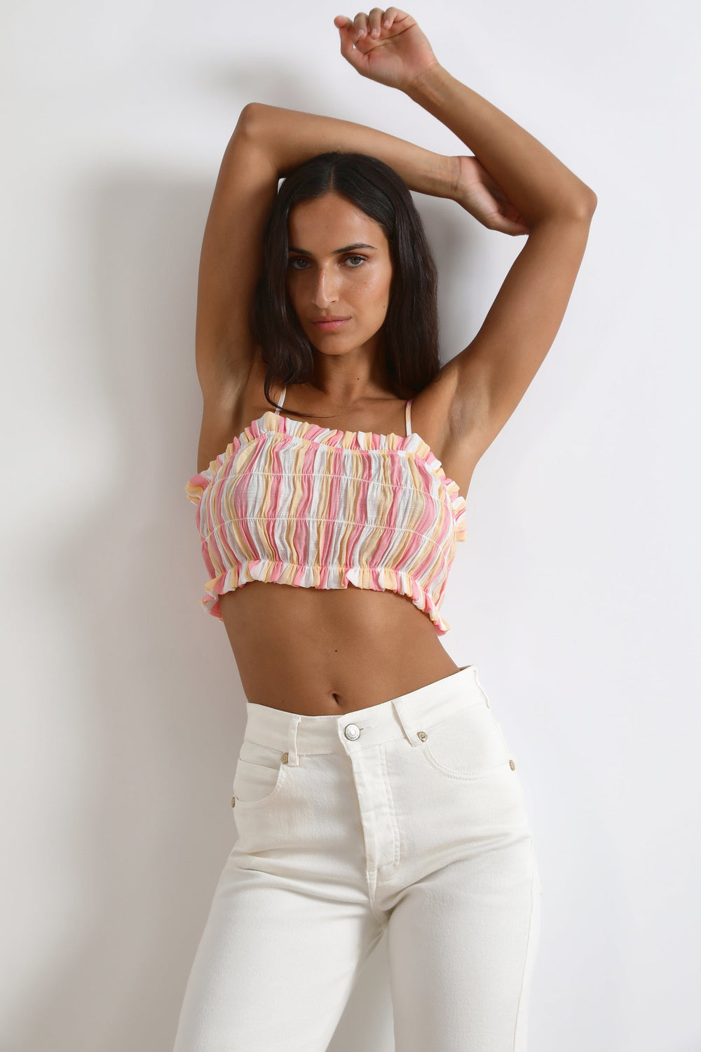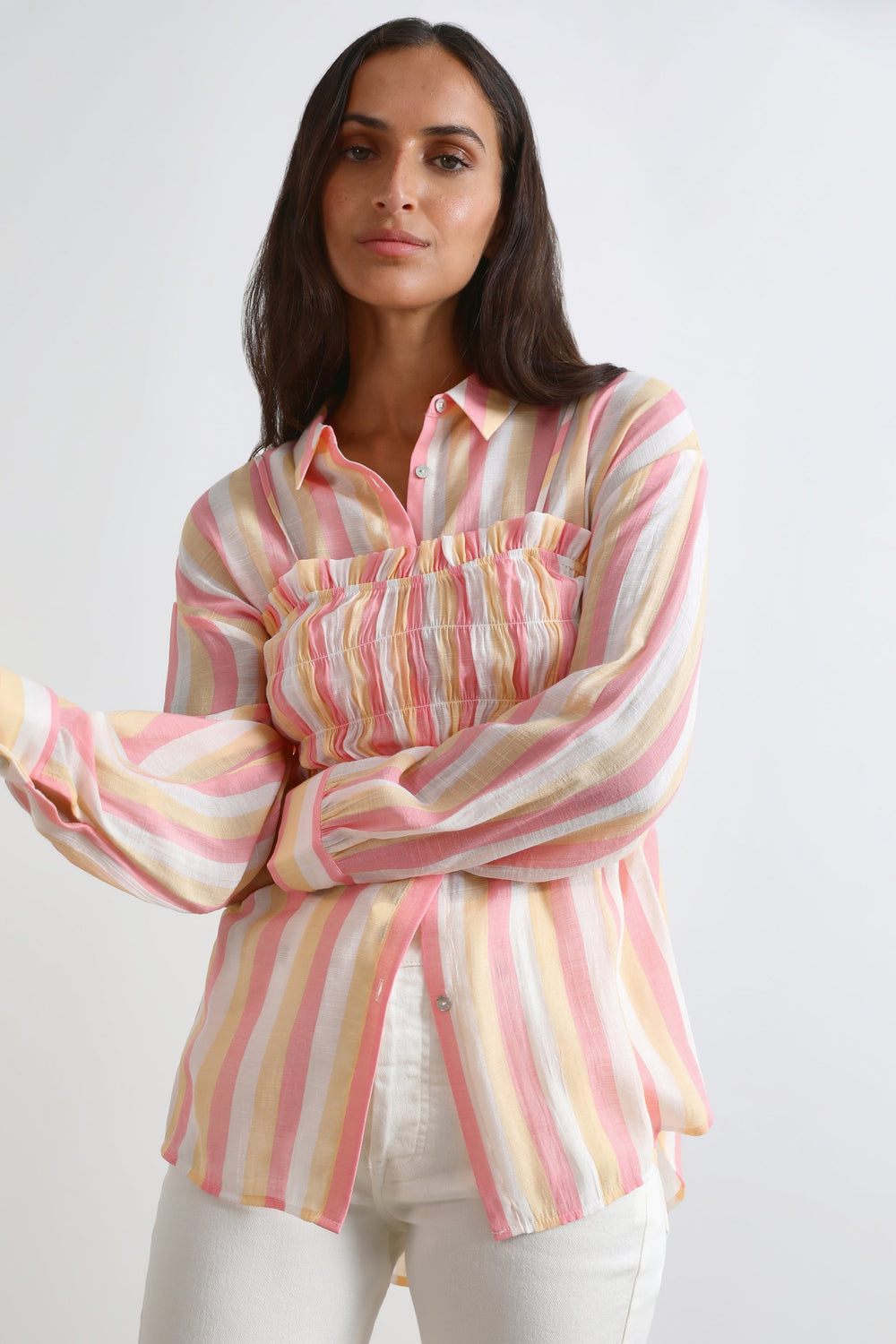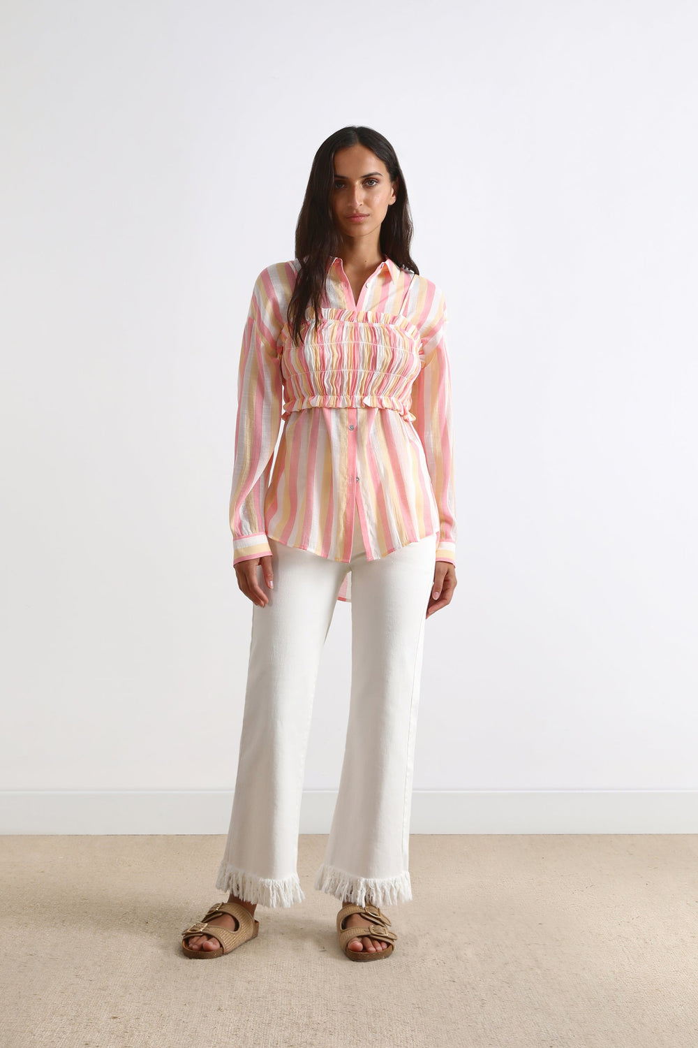 CONJUNTO DE CAMISA COM TOP ÀS RISCAS