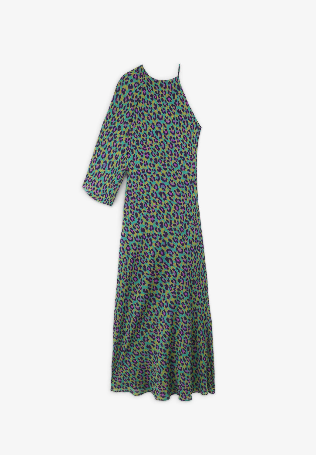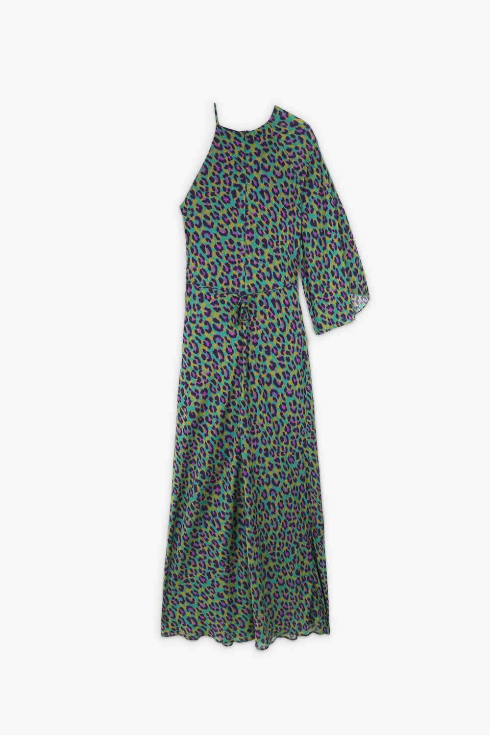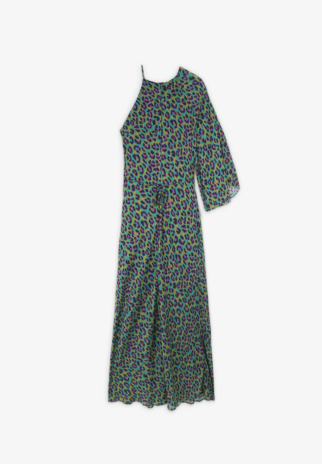 VESTIDO COMPRIDO ASSIMÉTRICO COM ESTAMPADO ANIMAL