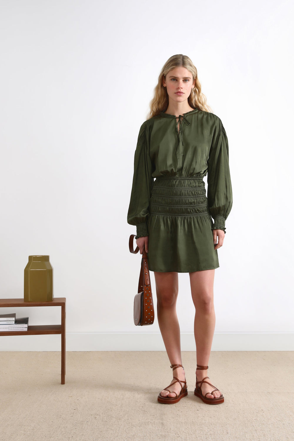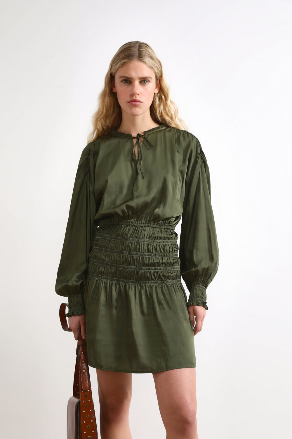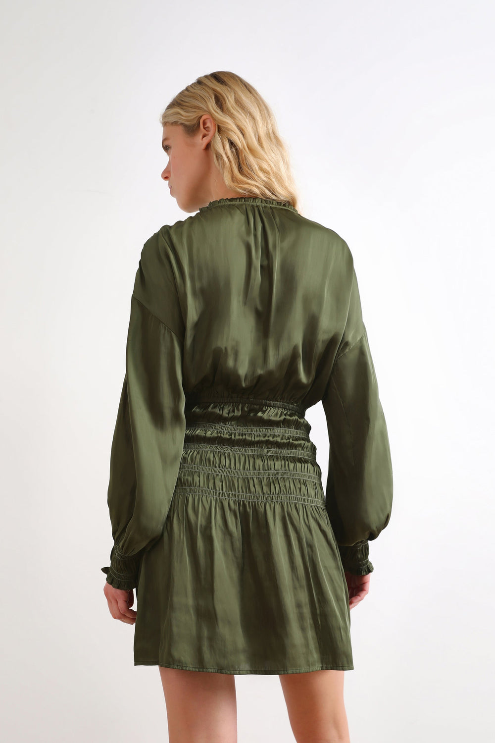 Vestido mini com drapeados em favo de mel.