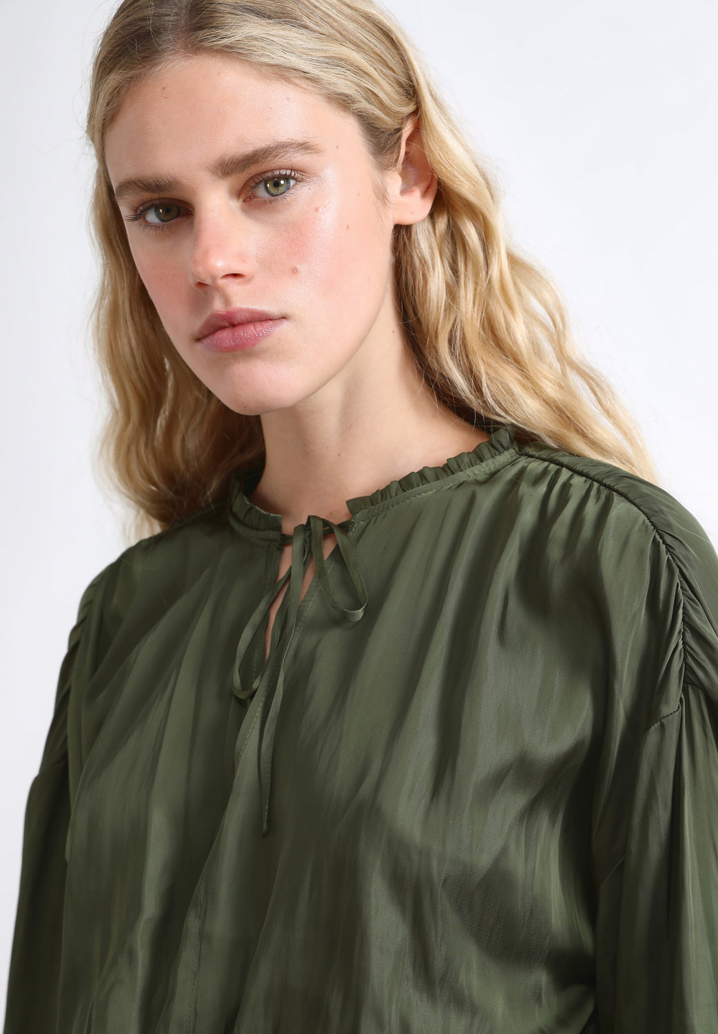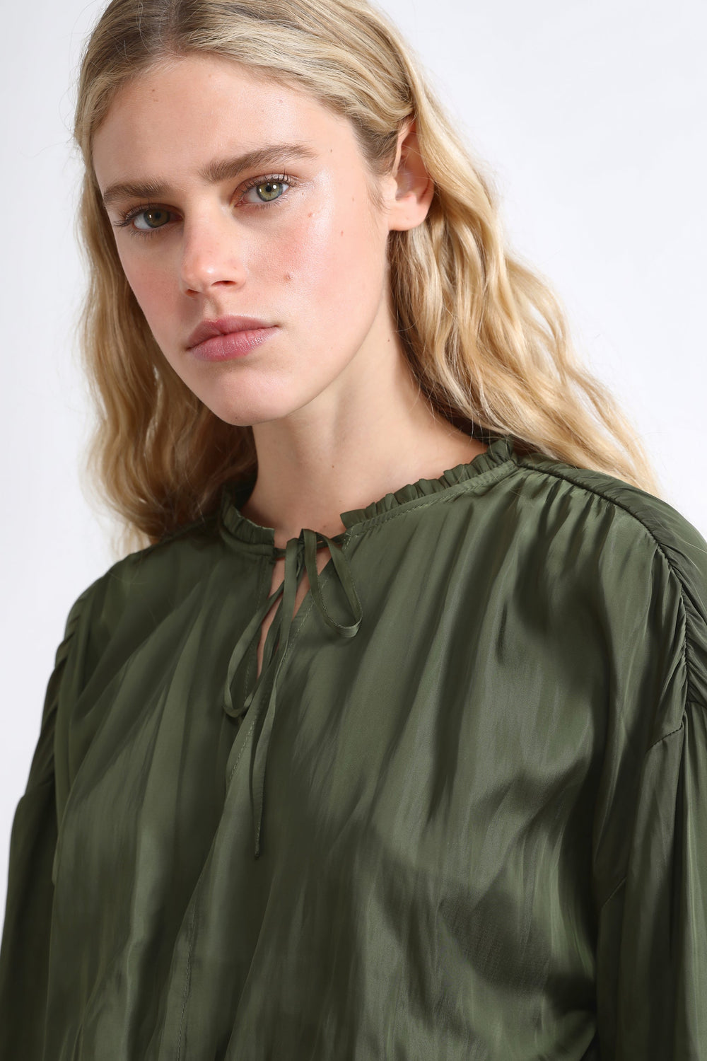 - Decote redondo com fechos de laço