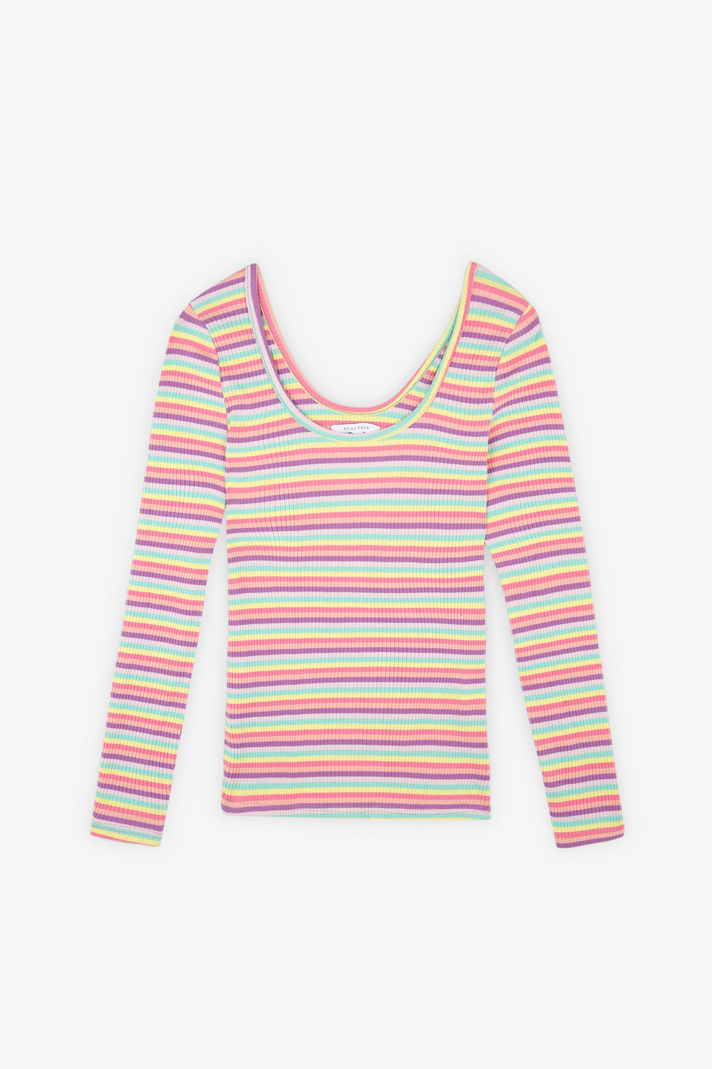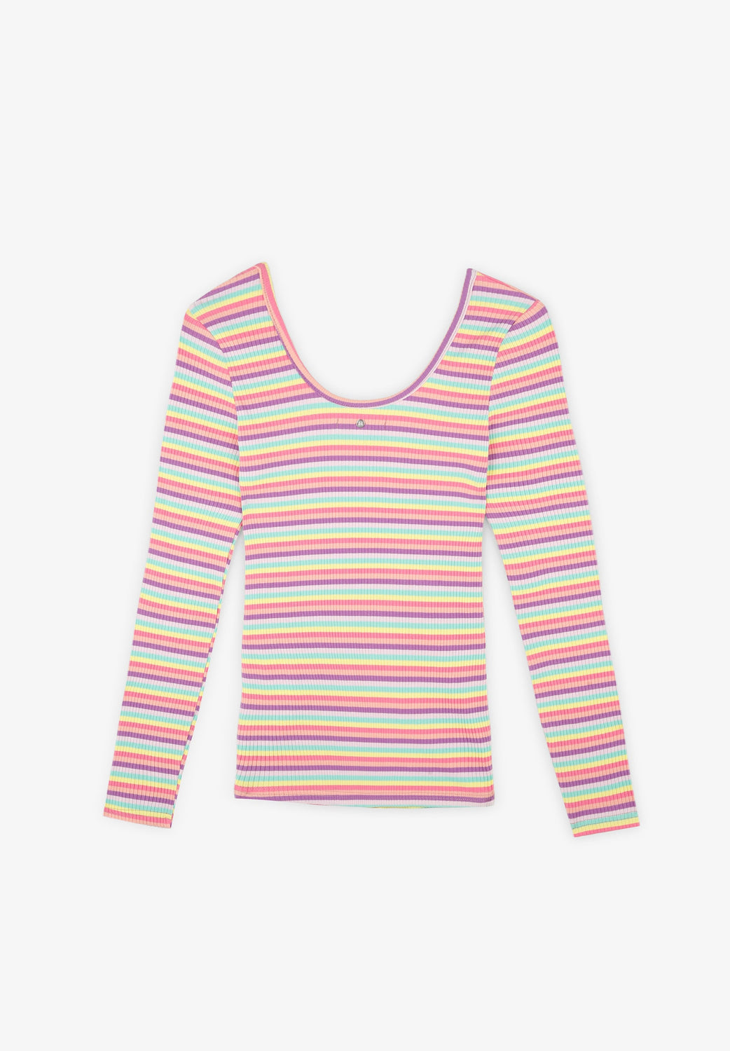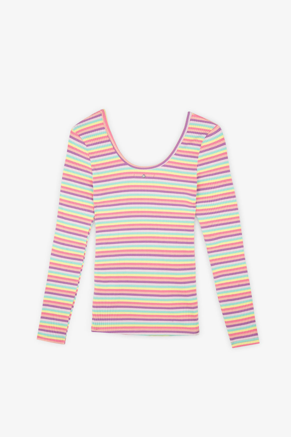 T-shirt básica com riscas multicolor.