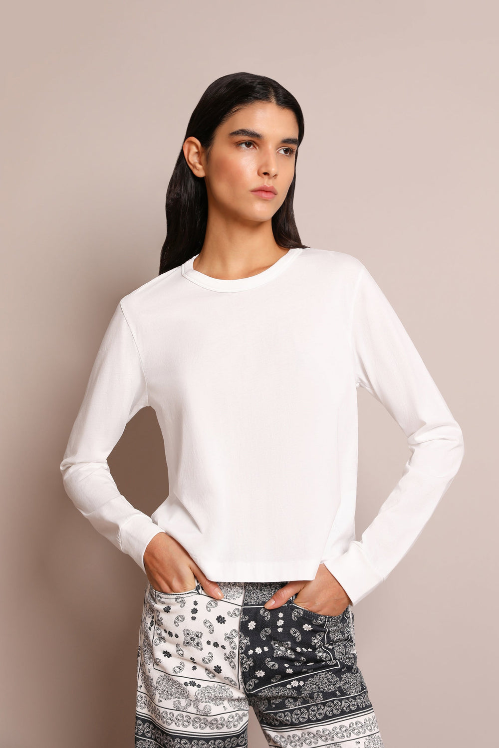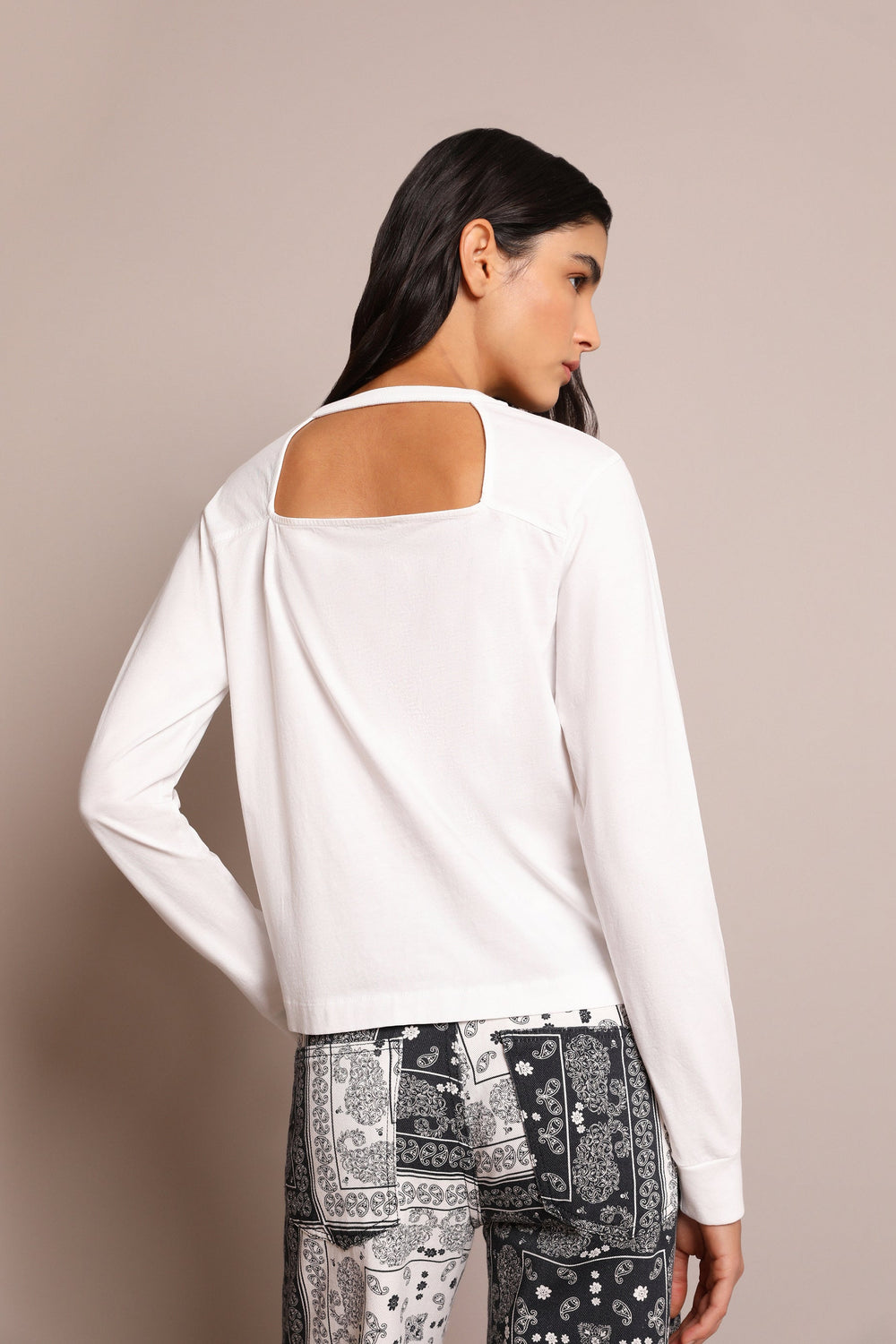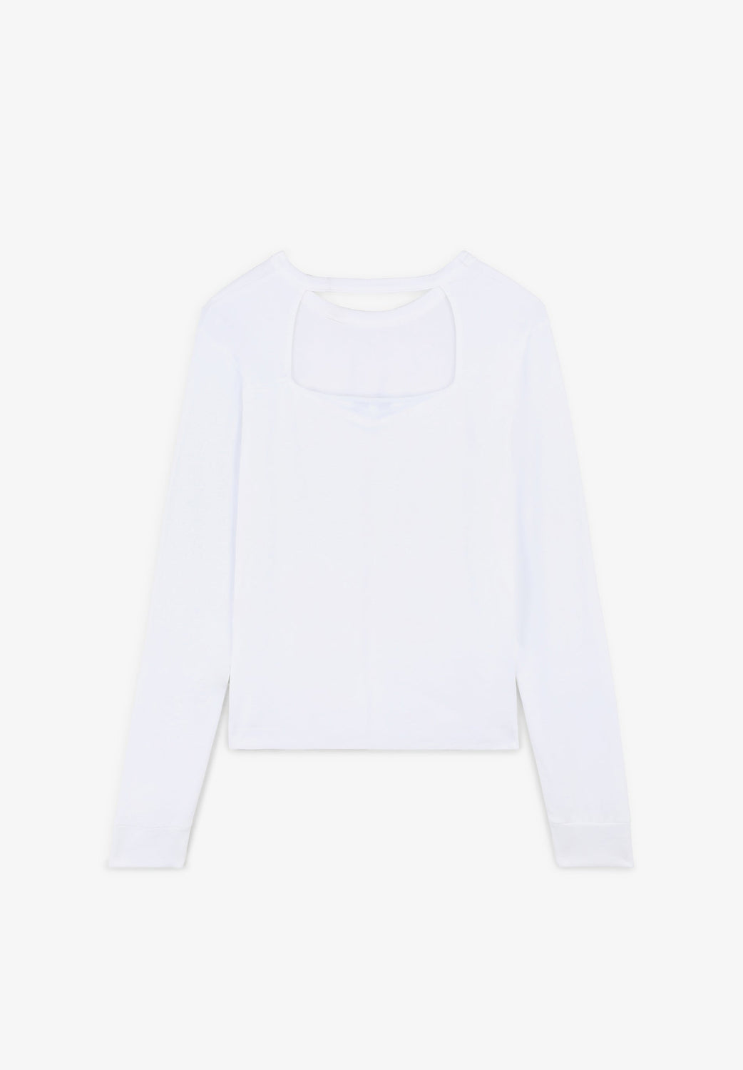 T-shirt com abertura atrás confecionada em 100% algodão BCI. Corte Regular Fit, decote redondo e manga comprida.