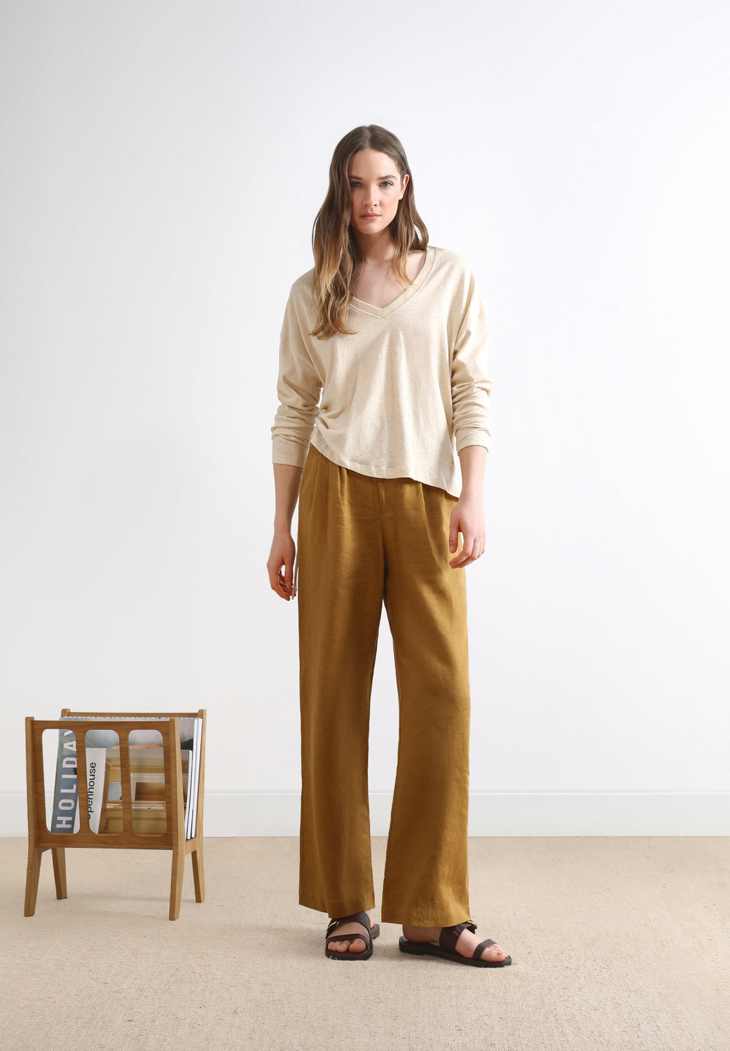 • Confecionada em mistura de linho e algodão