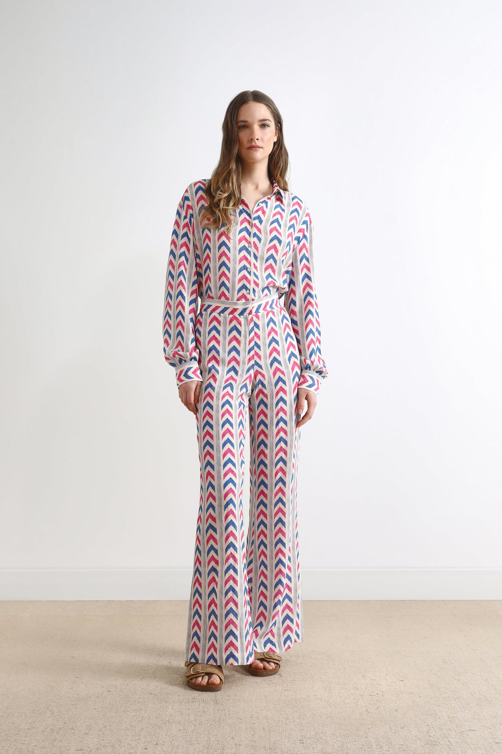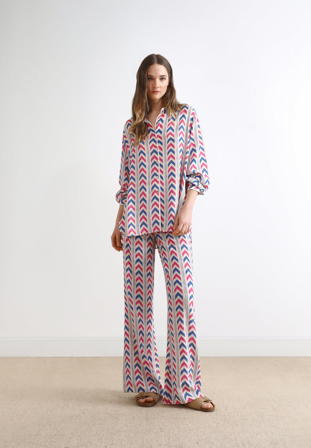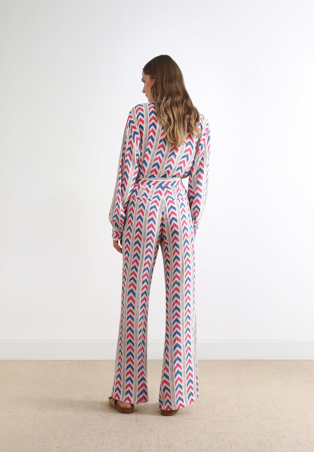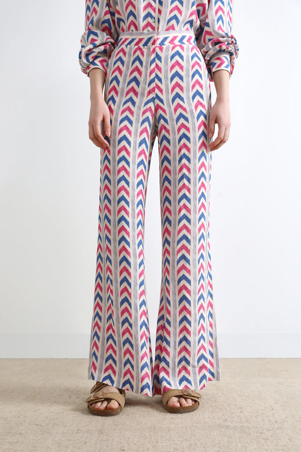 Calças com padrão.