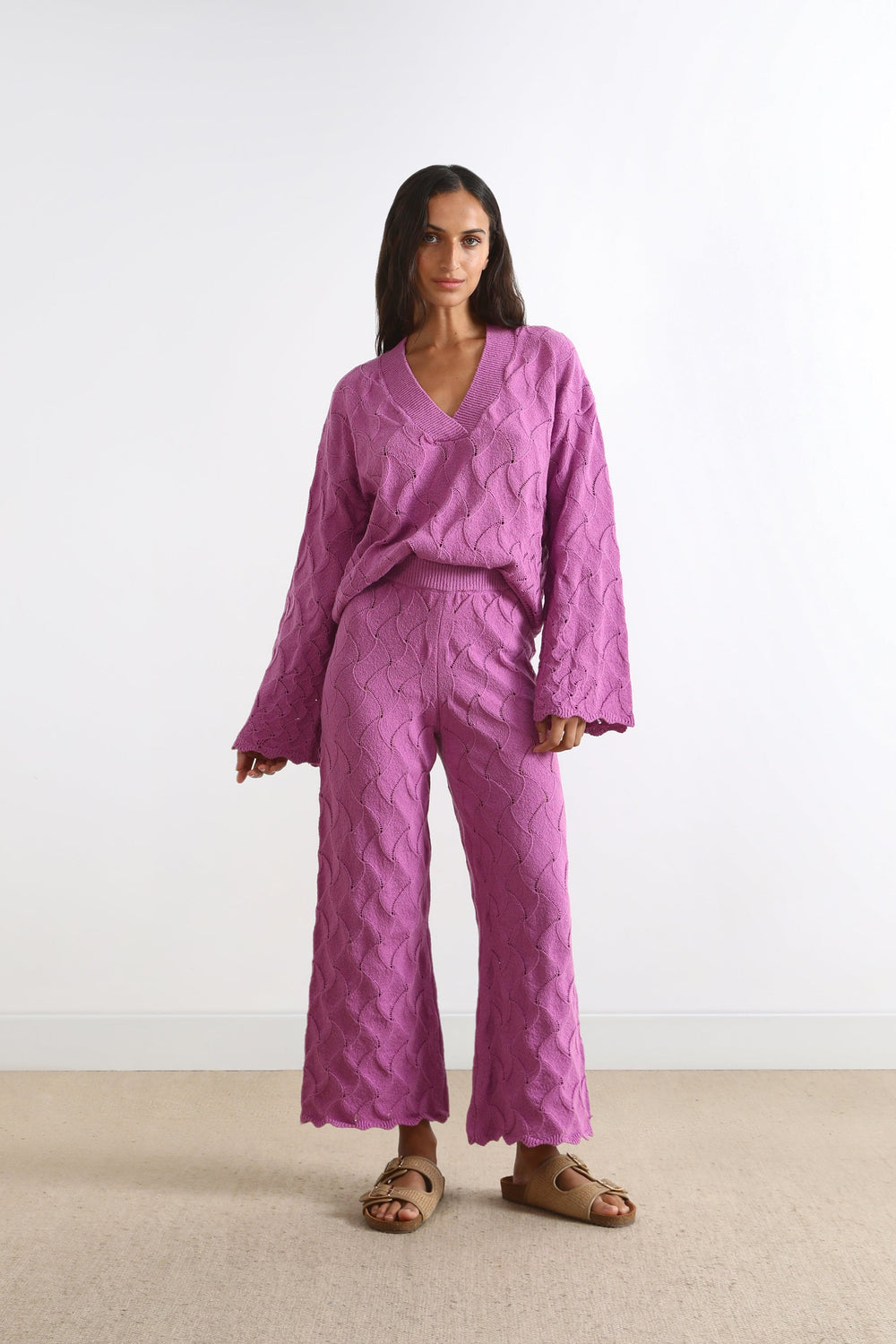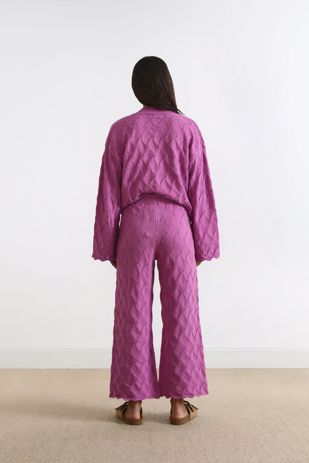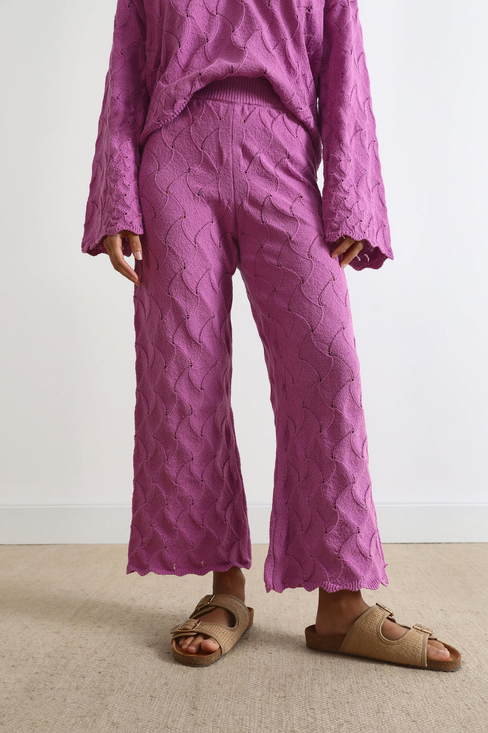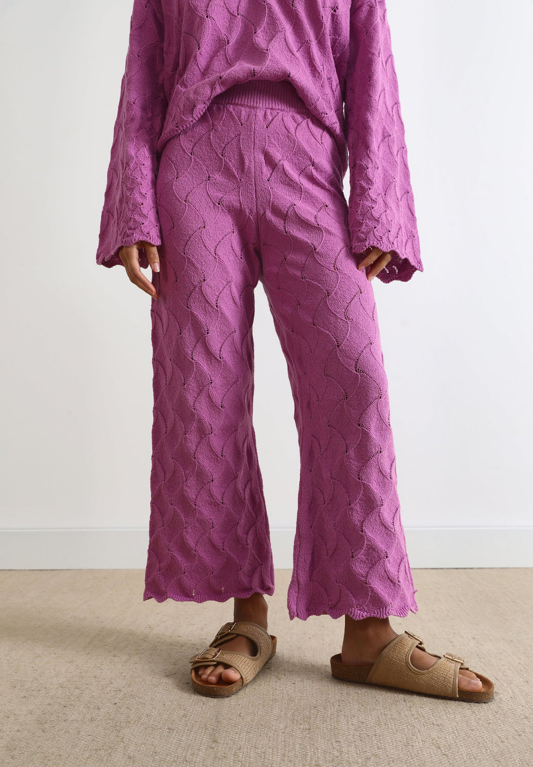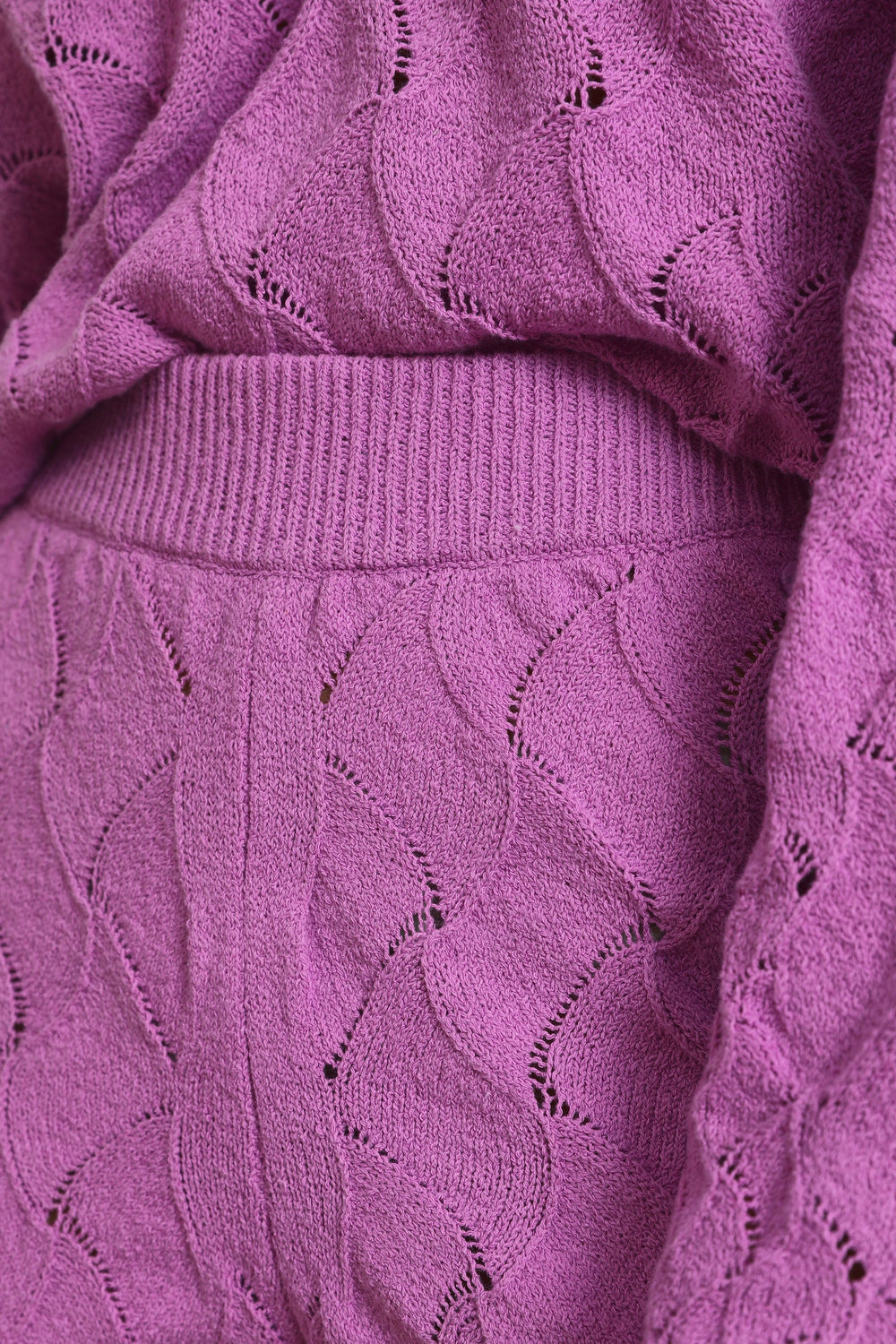 Calças de malha com pormenor de pointelle.