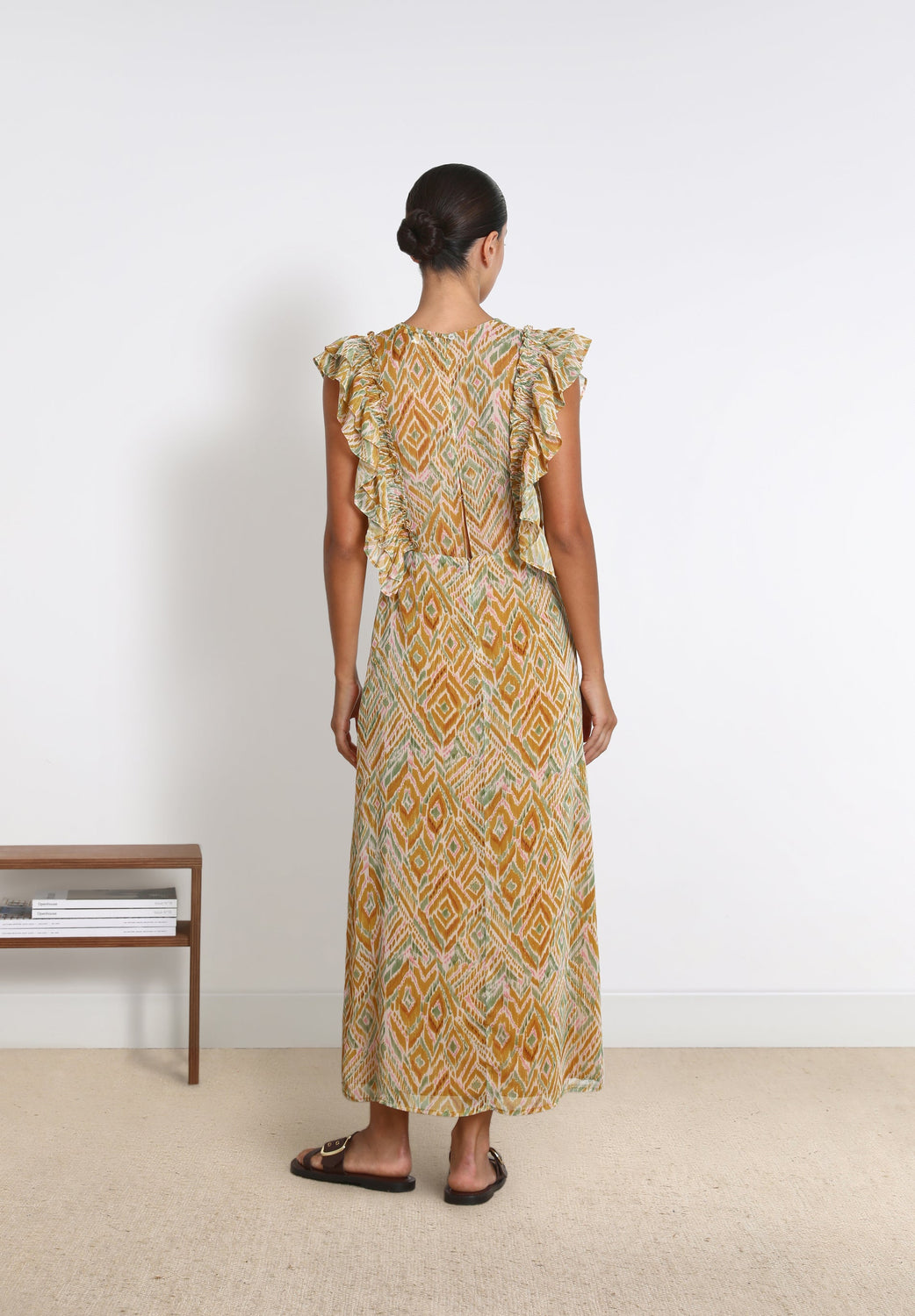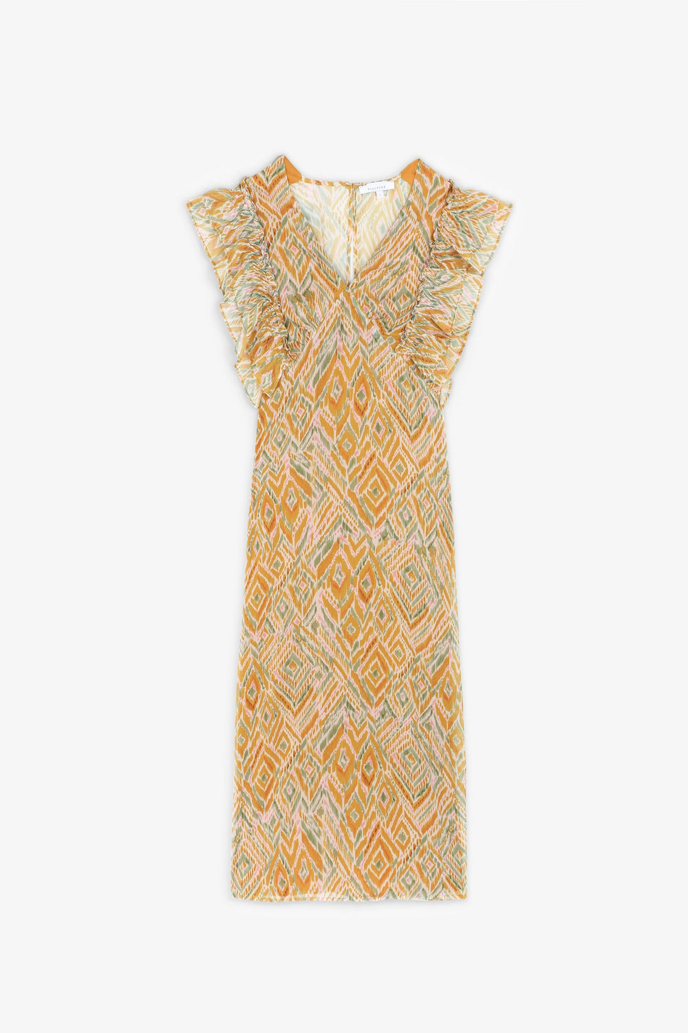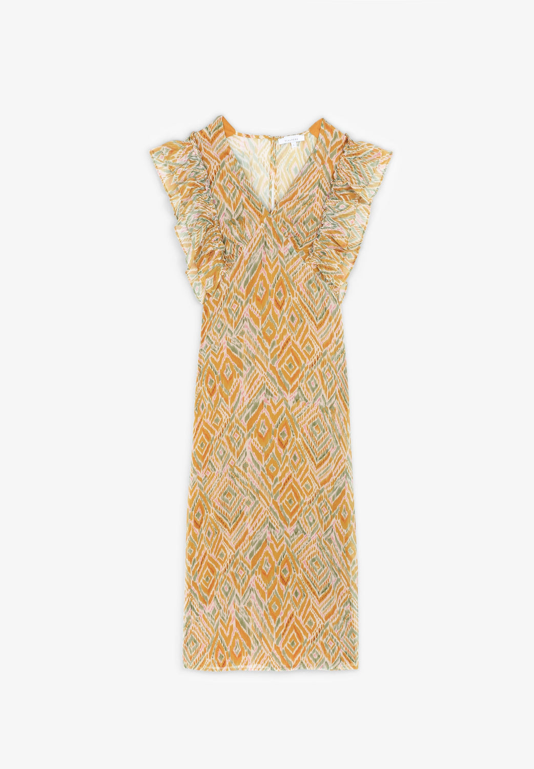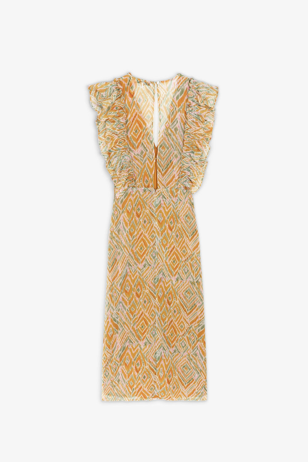 VESTIDO MIDI COM MANGA DE FOLHOS