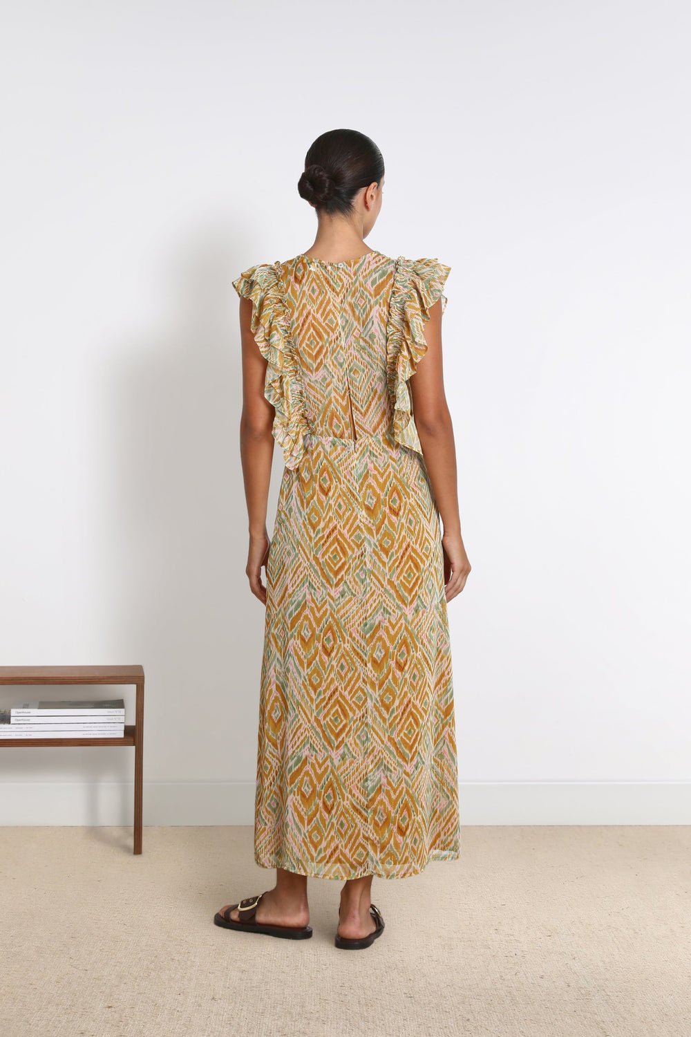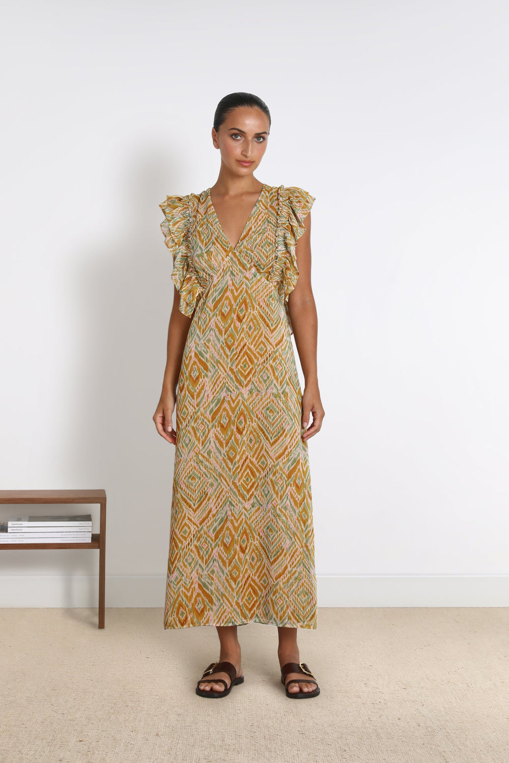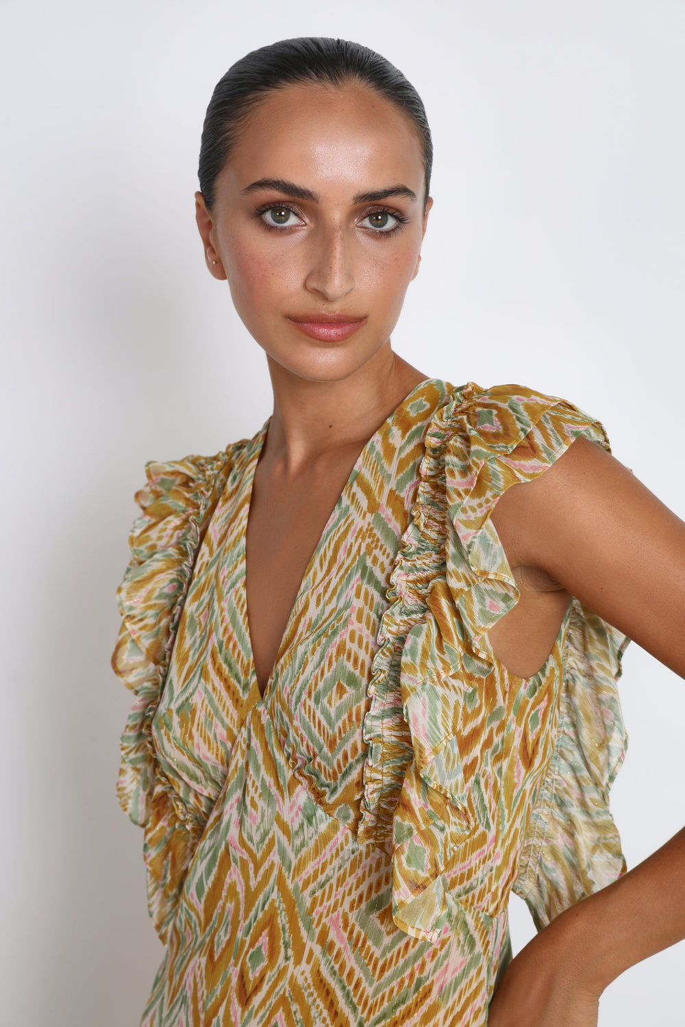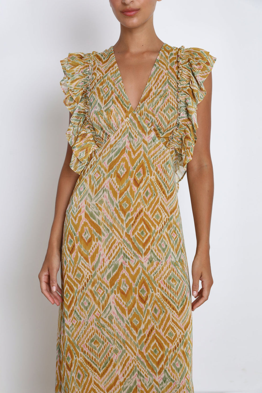 VESTIDO MIDI COM MANGA DE FOLHOS