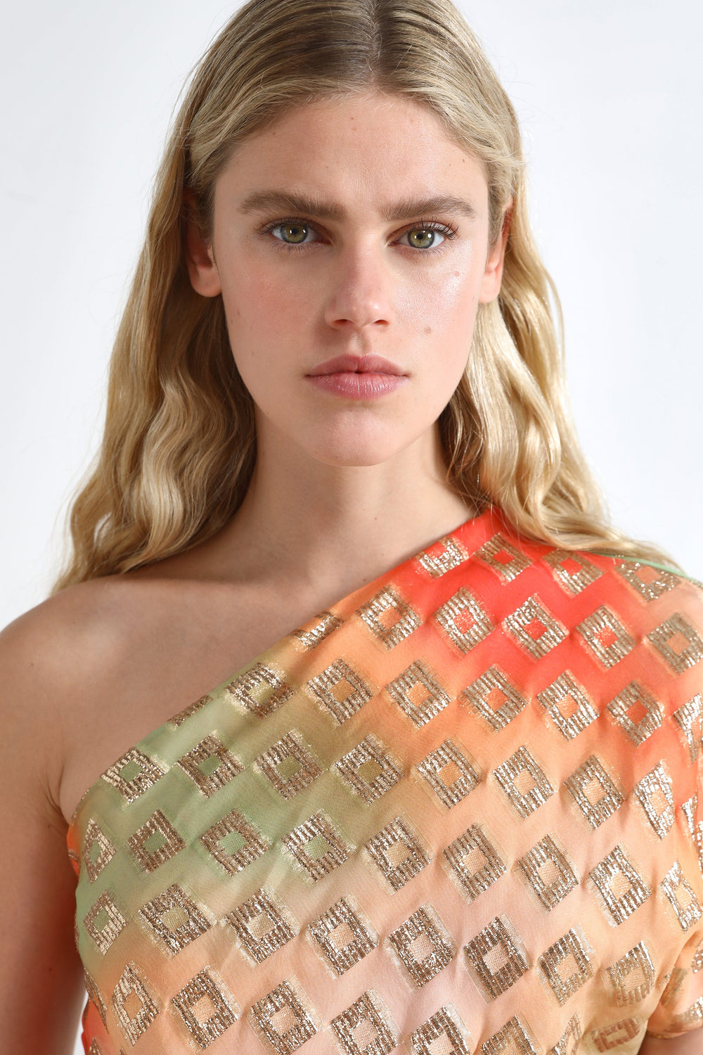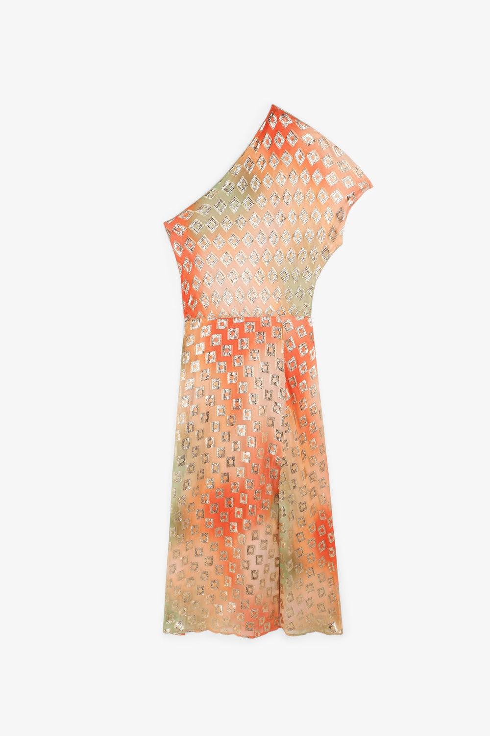 VESTIDO ASSIMÉTRICO COM PADRÃO METALIZADO