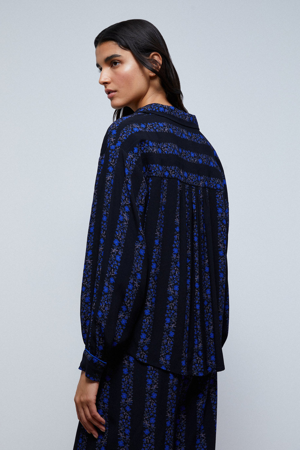 Blusa de riscas com padrão floral
