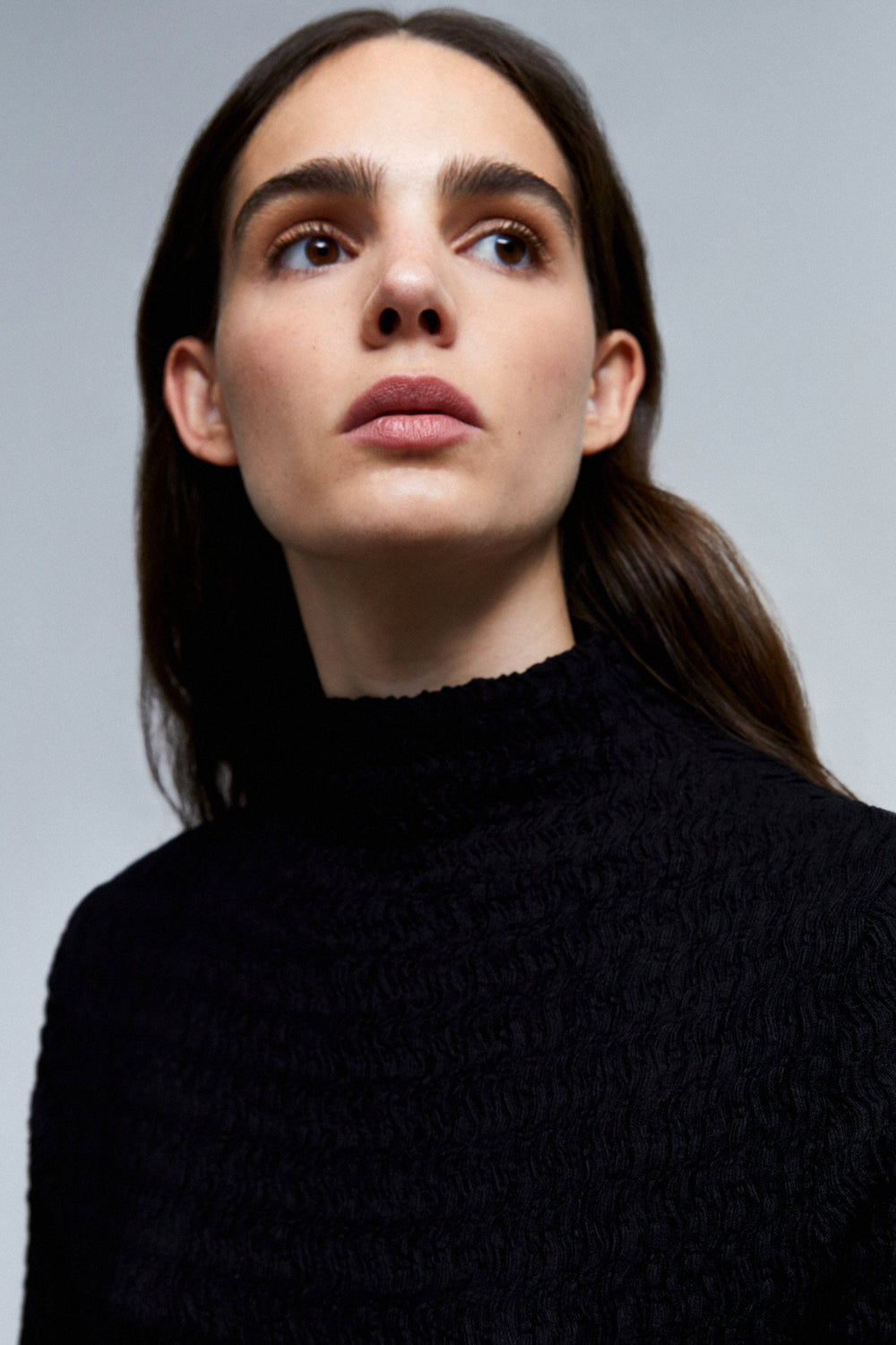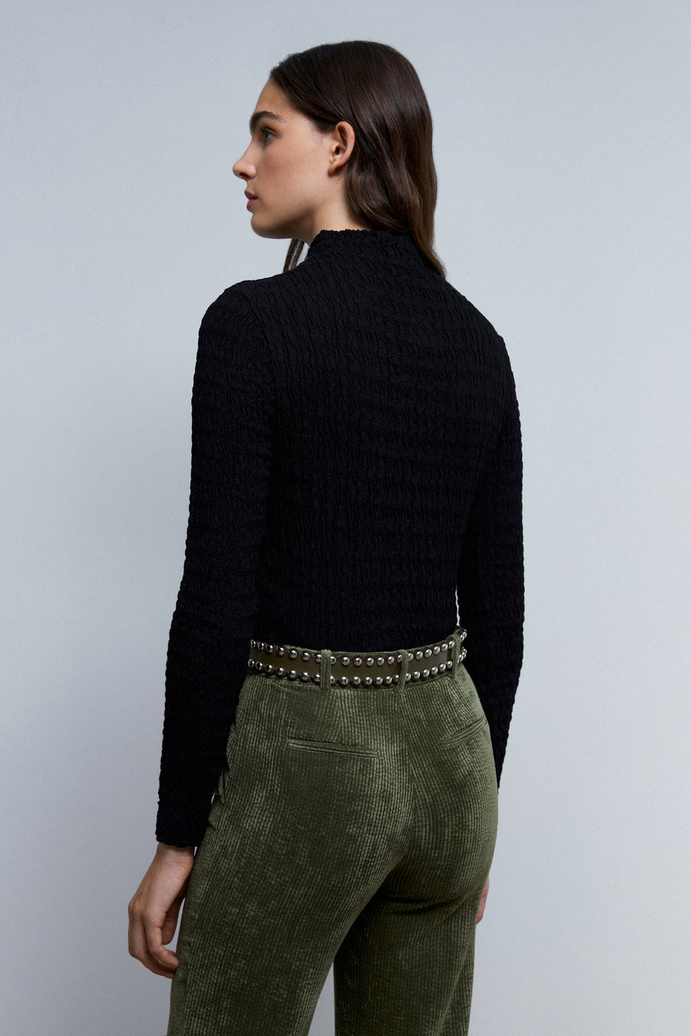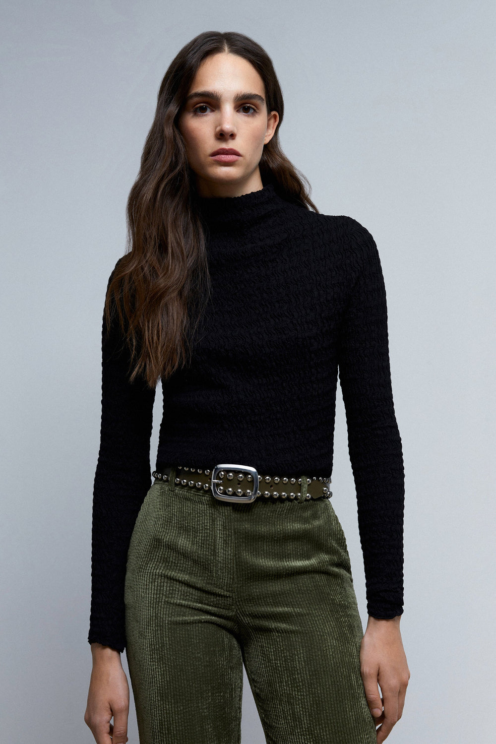 T-SHIRT DE GOLA ALTA COM TEXTURA