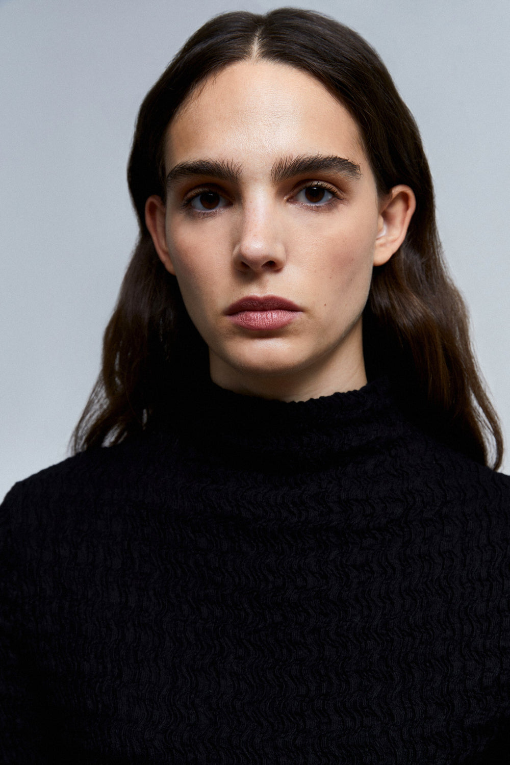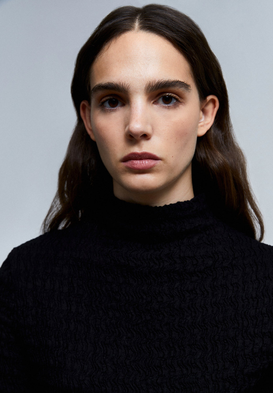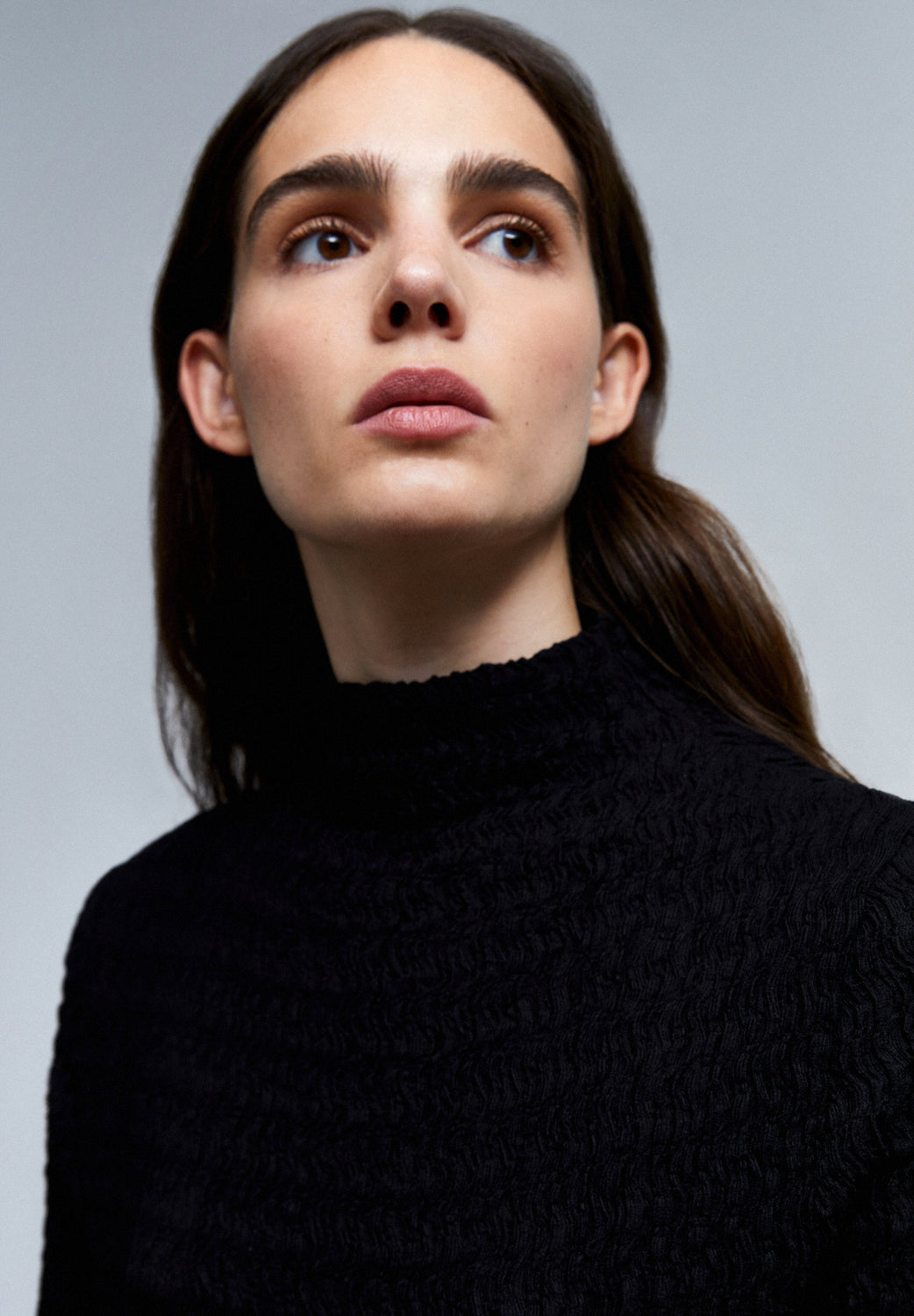 T-SHIRT DE GOLA ALTA COM TEXTURA