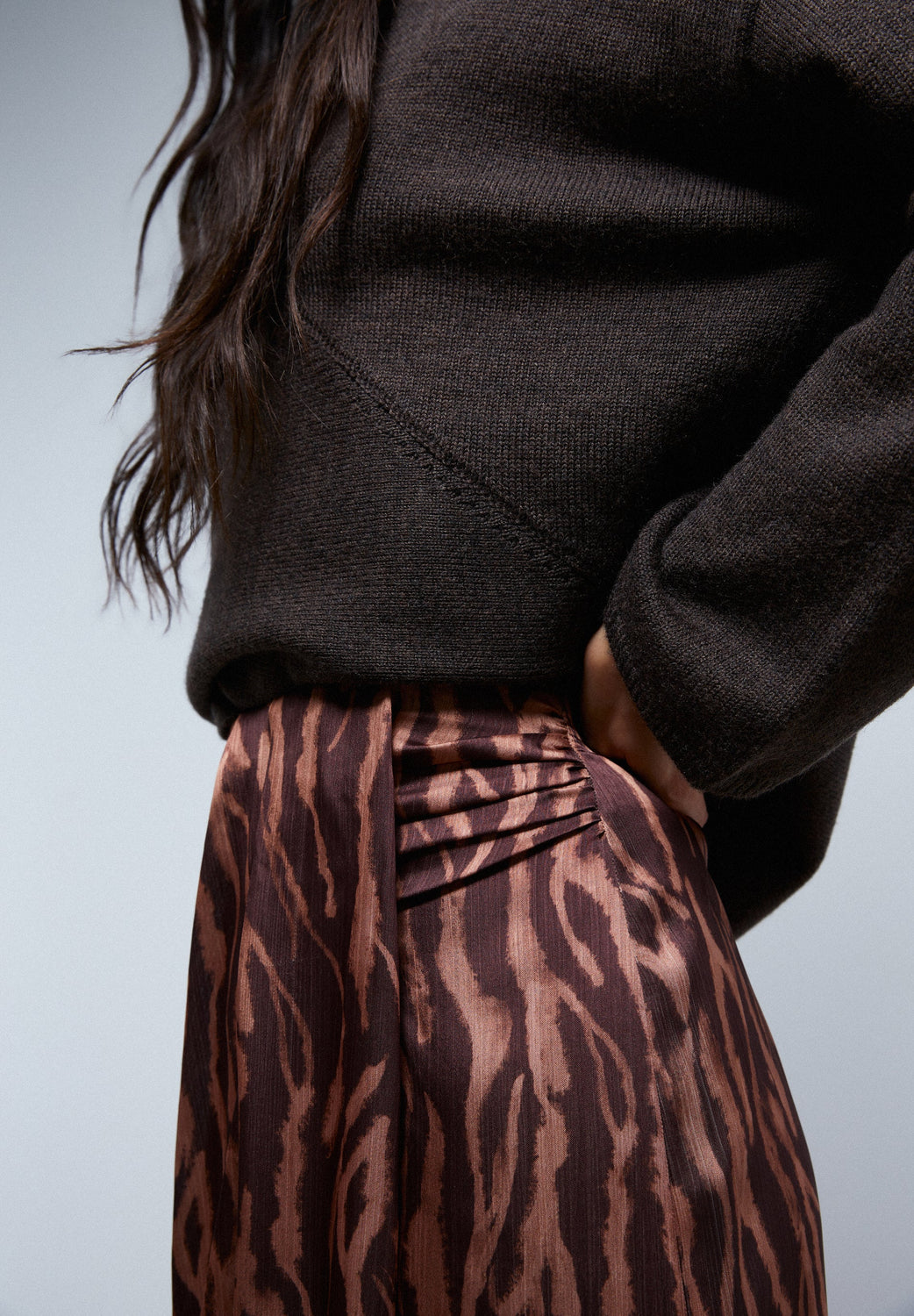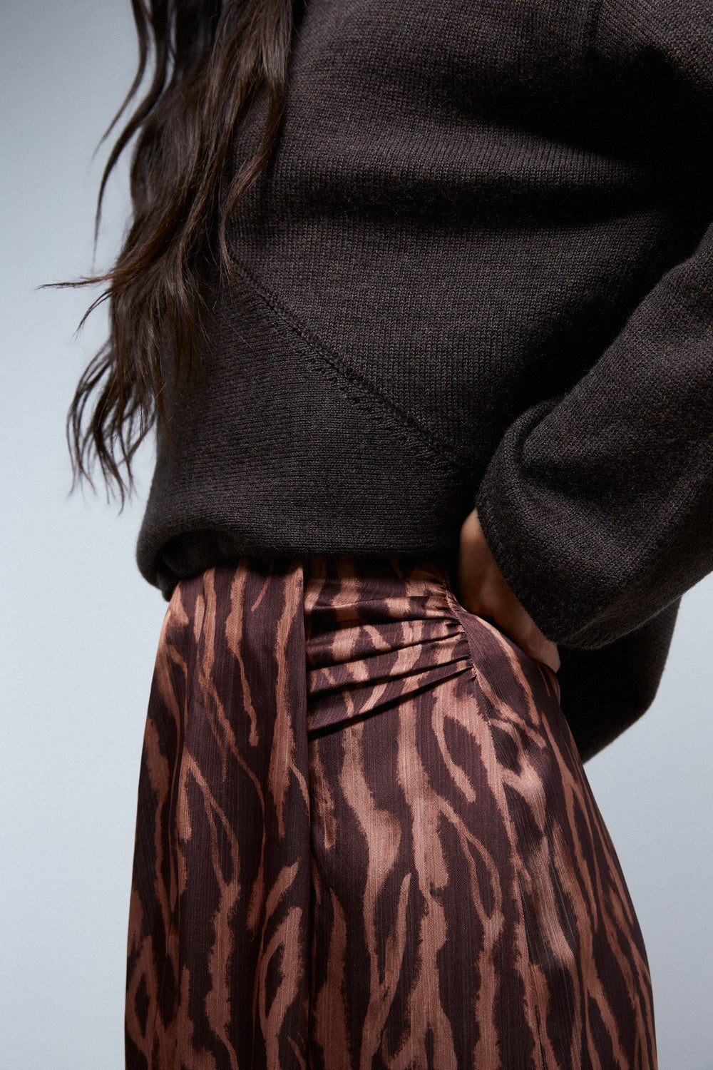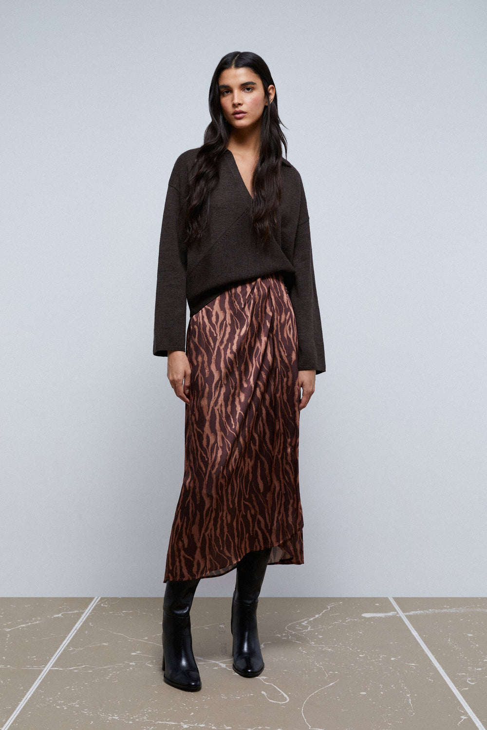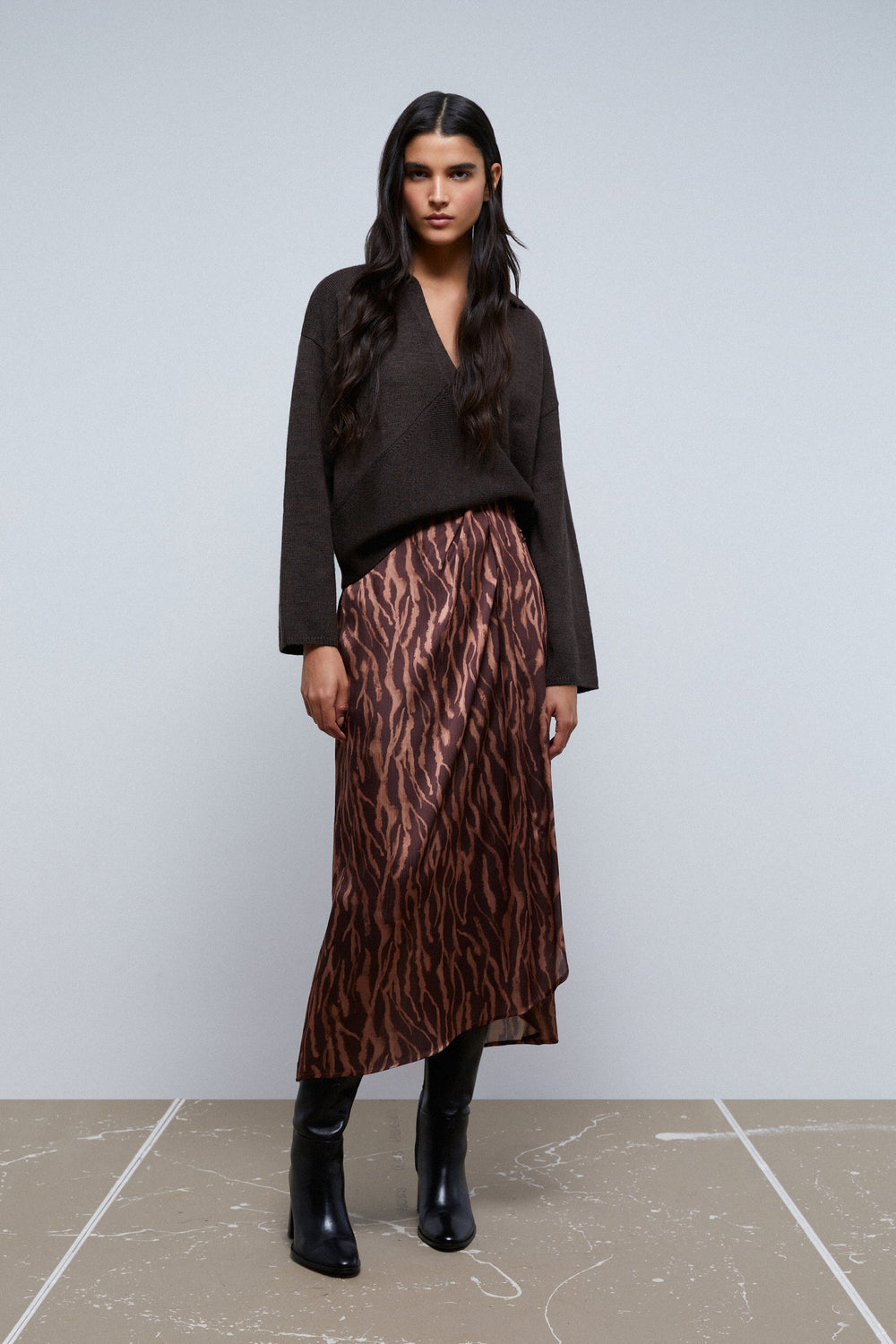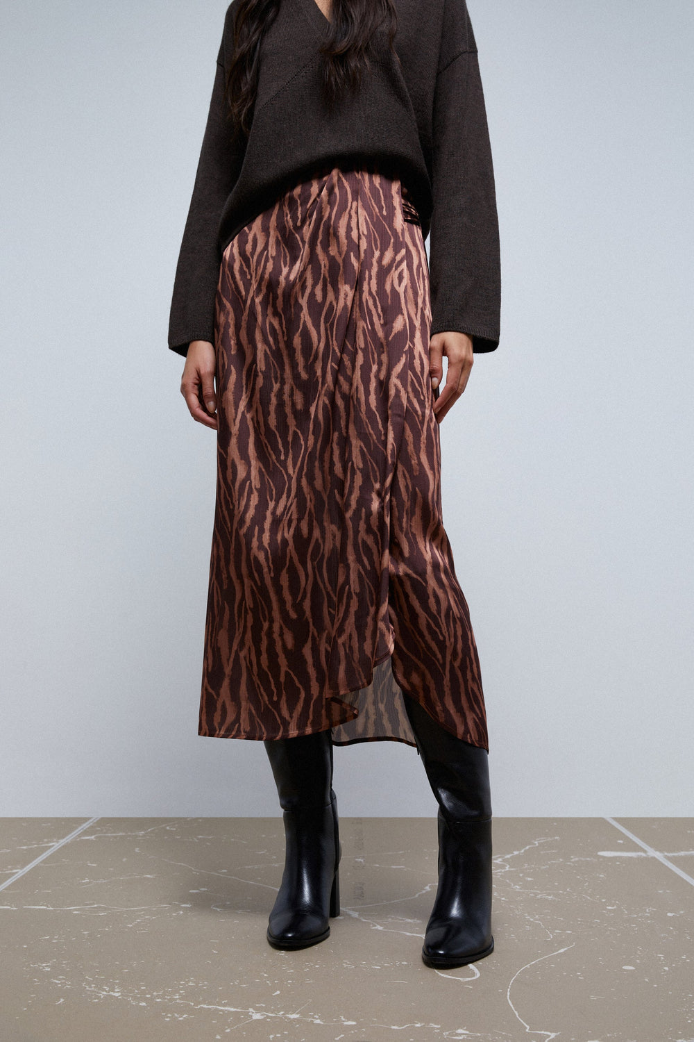 Saia midi com franzido à frente