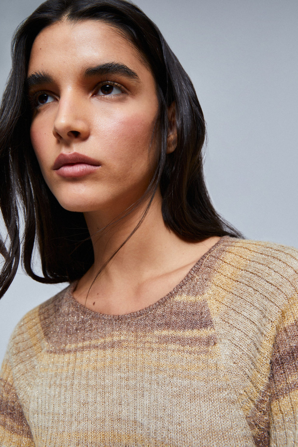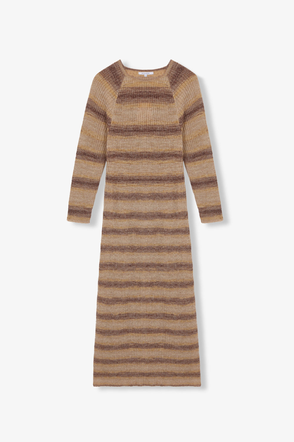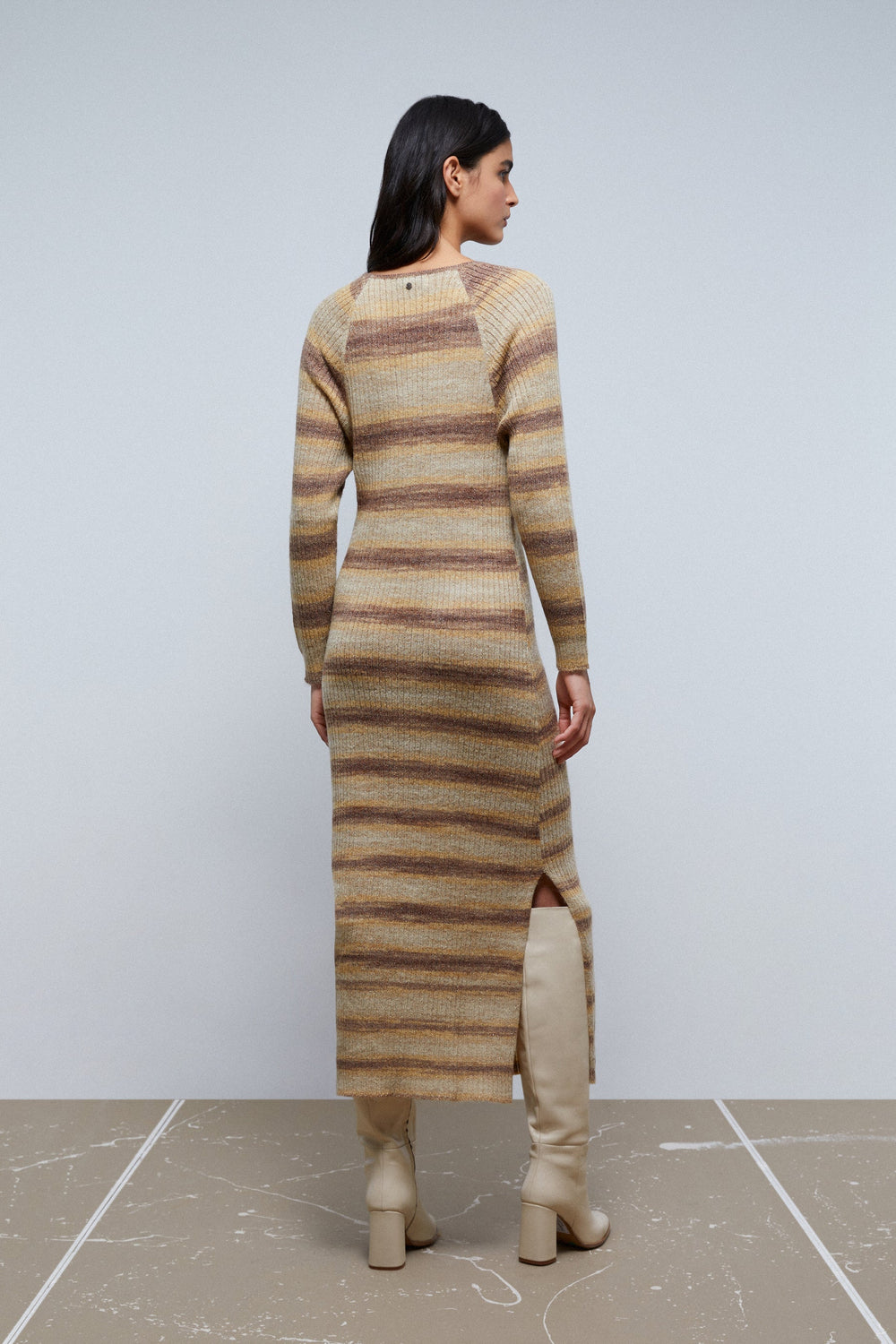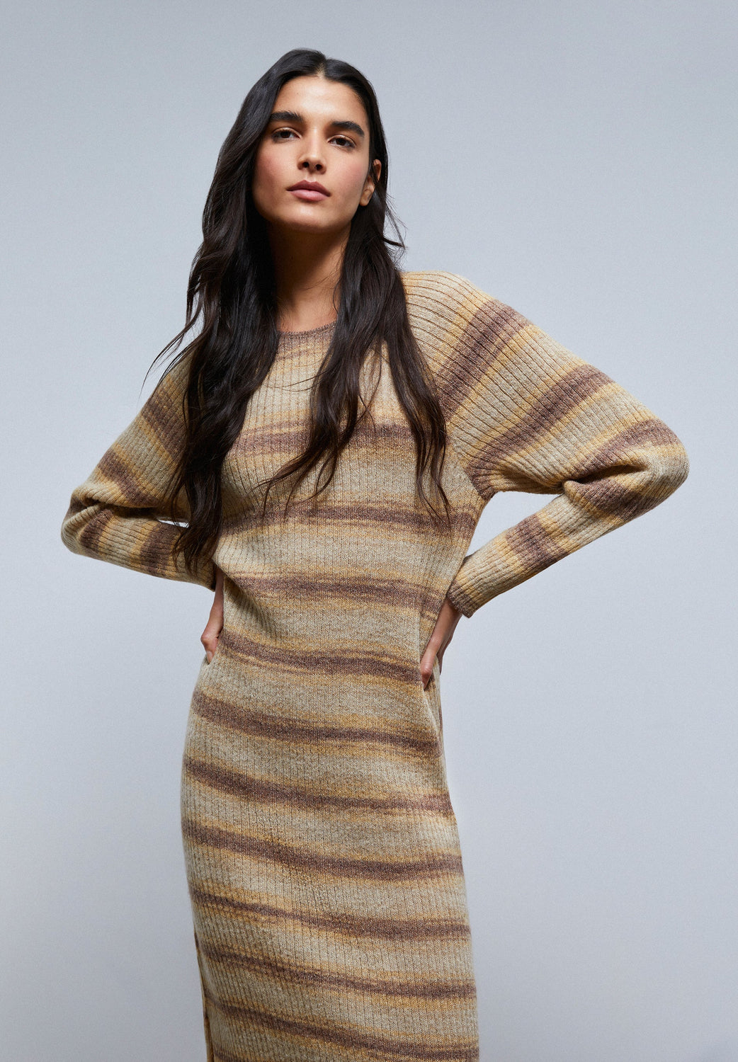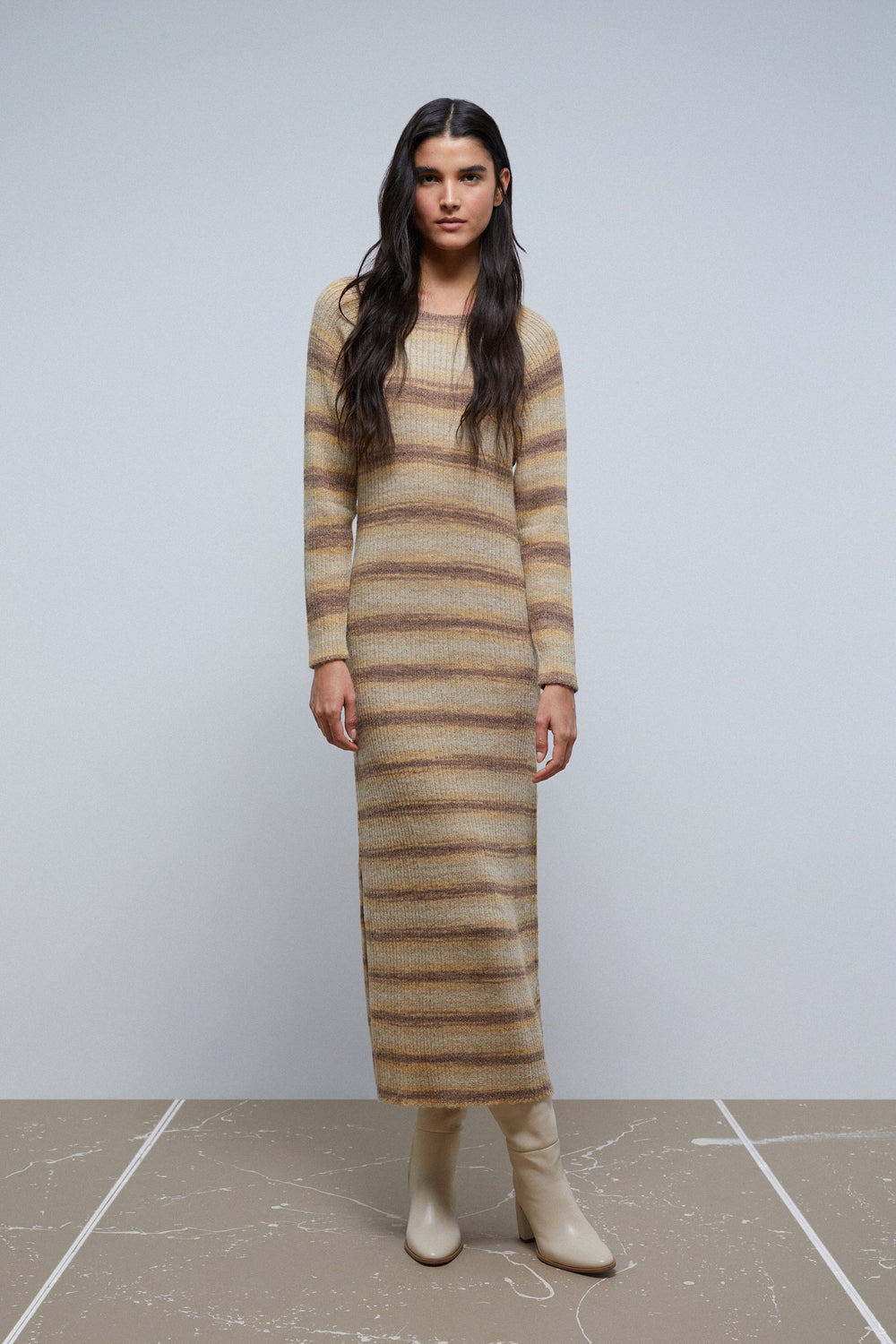 VESTIDO MIDI DE MALHA ÀS RISCAS
