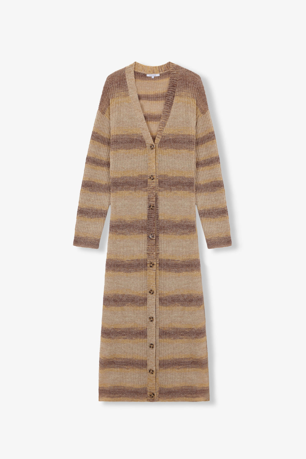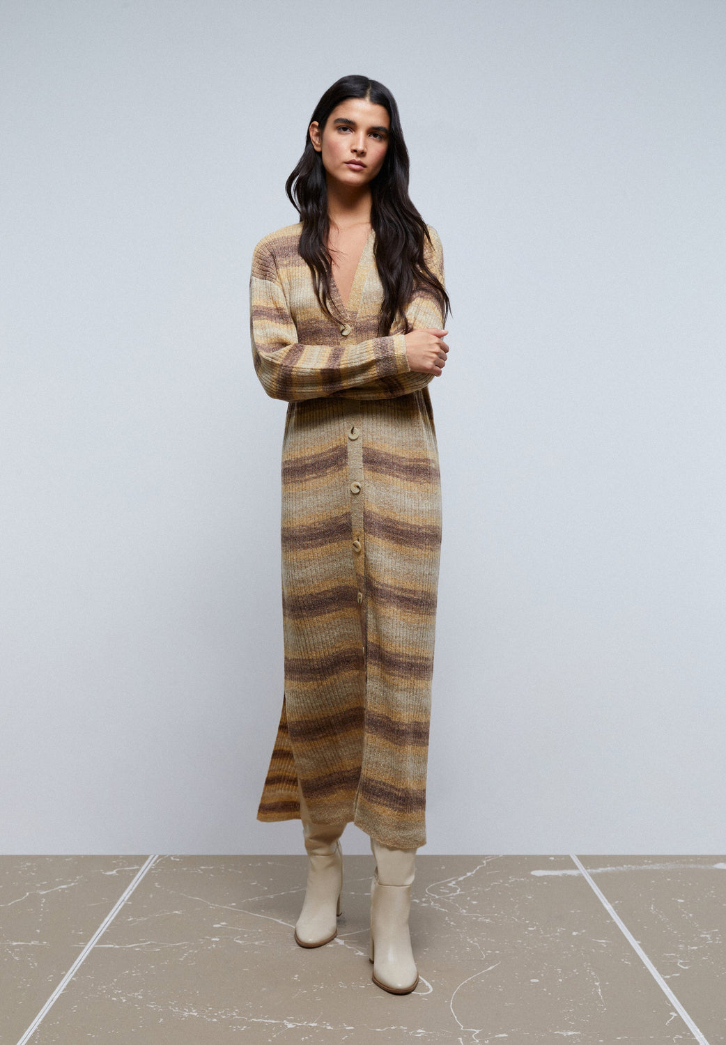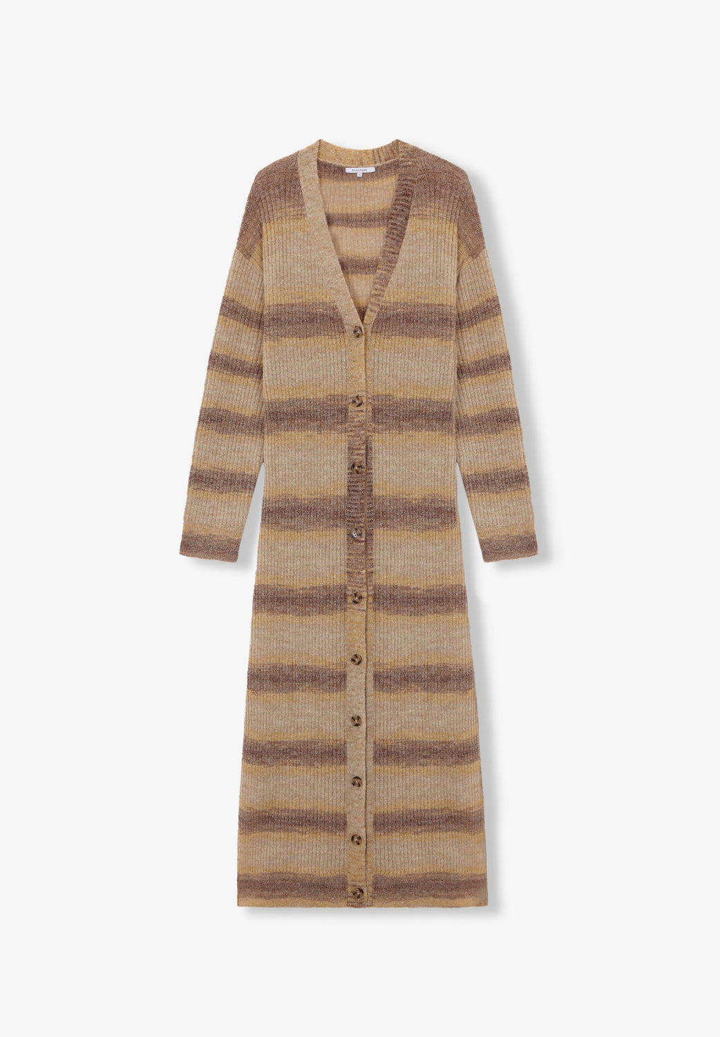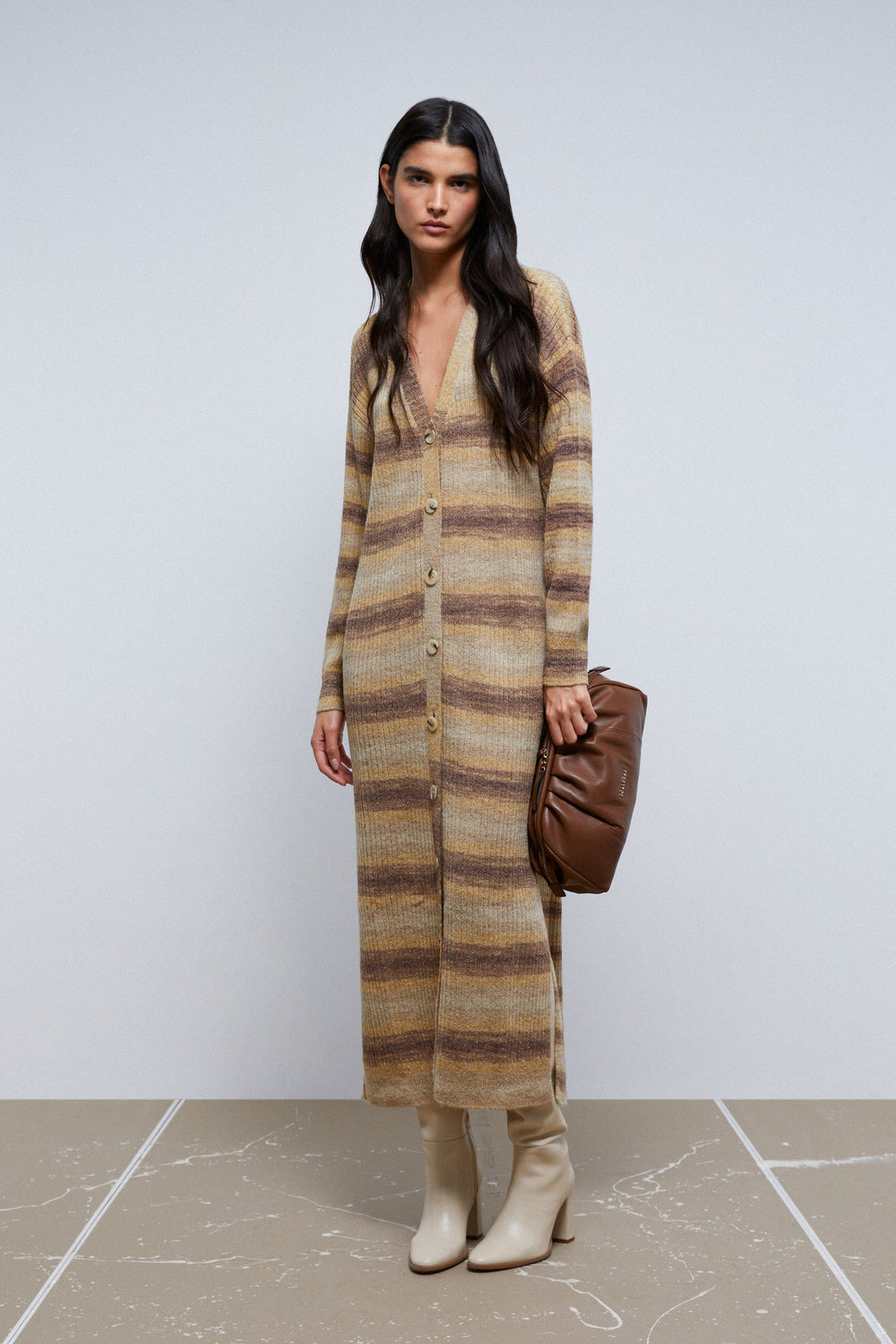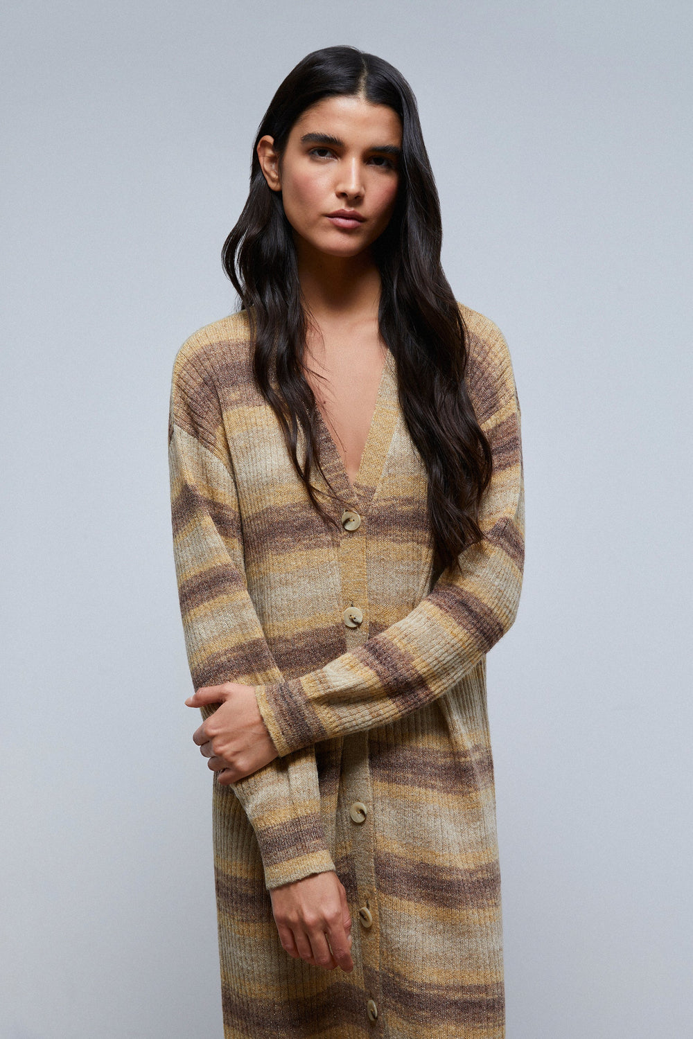 Cardigan comprido de riscas.