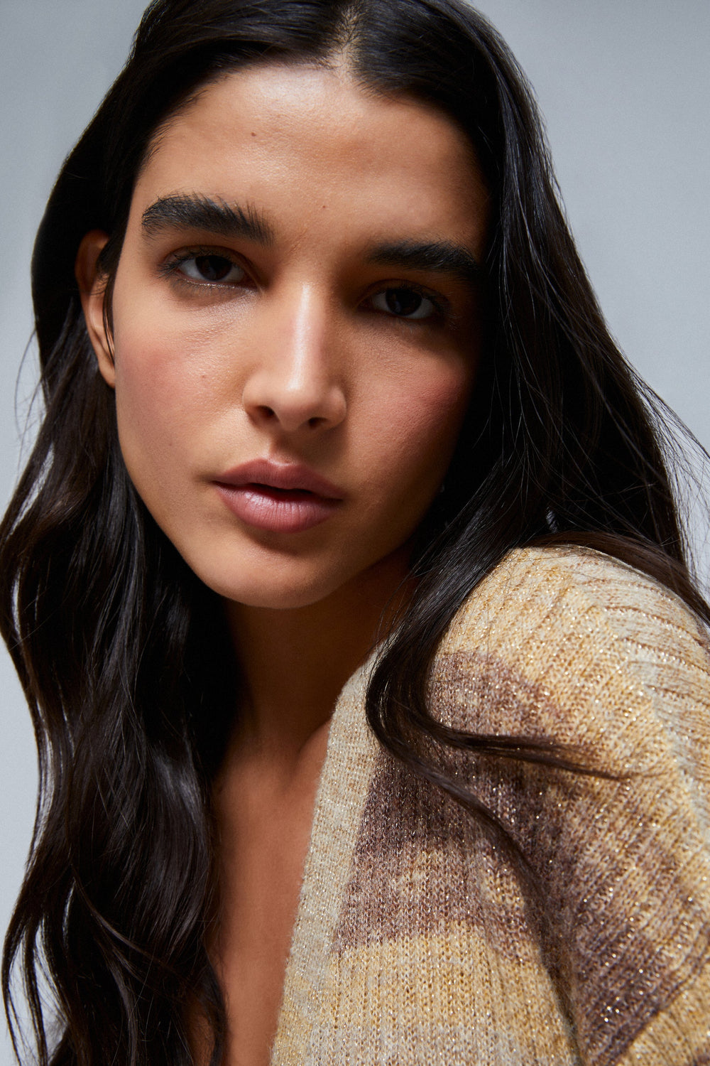 - Confecionado em malha com pormenores em fio metálico