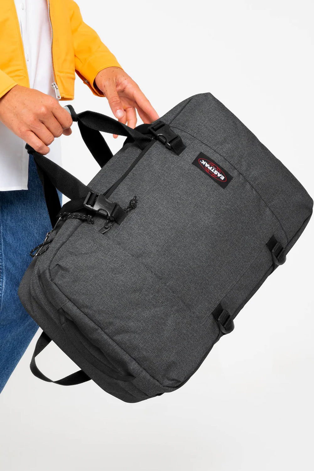 Mochila Eastpak confecionada em 100% poliéster. Com dois compartimentos principais e bolso frontal com fecho de correr, correias de ombro acolchoadas e ocultáveis, alças de transporte ocultáveis, bolsa acolchoada compatível com dispositivos de até 17". Modelo aceite como bagagem de mão na maioria das companhias aéreas.