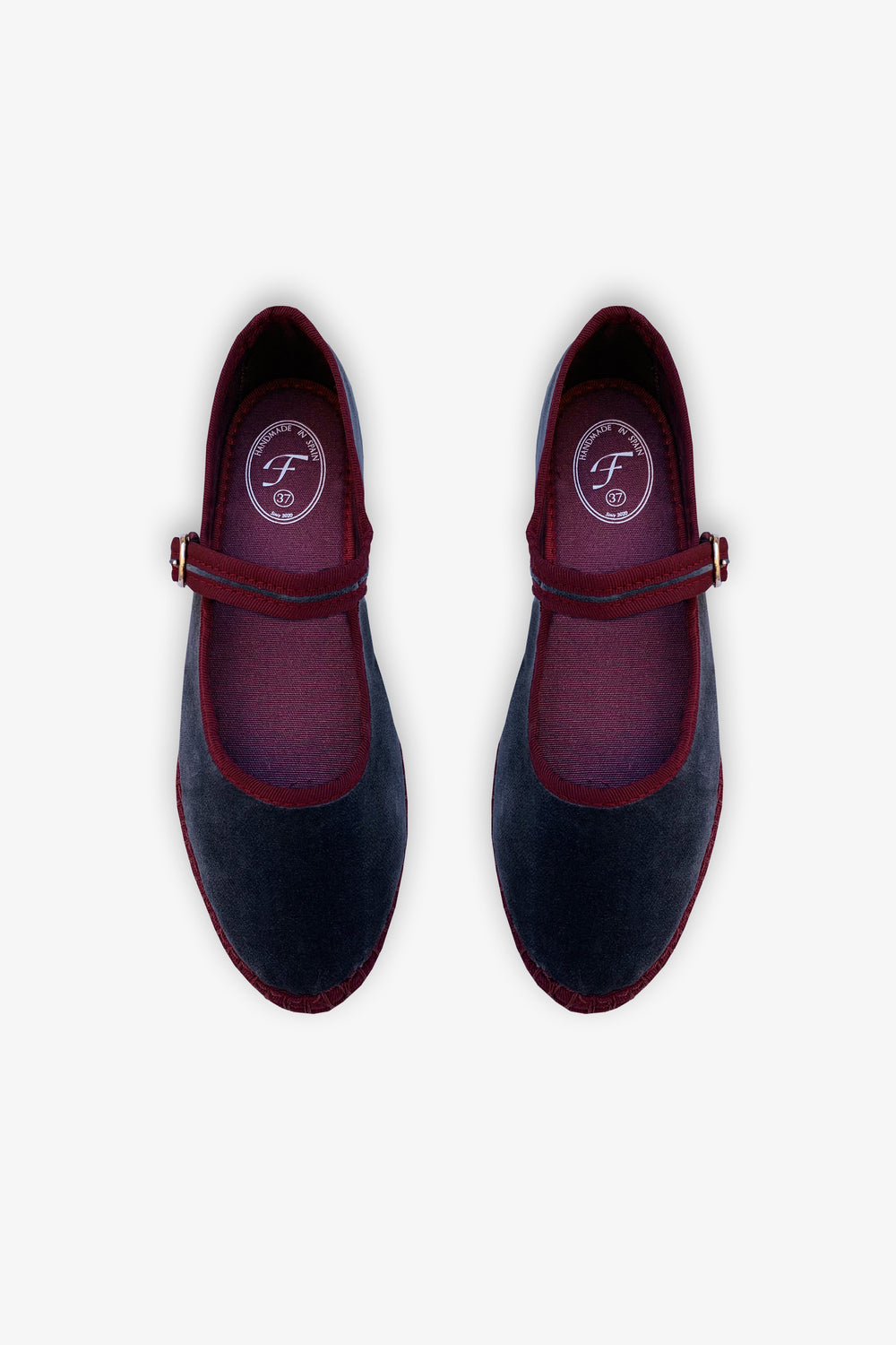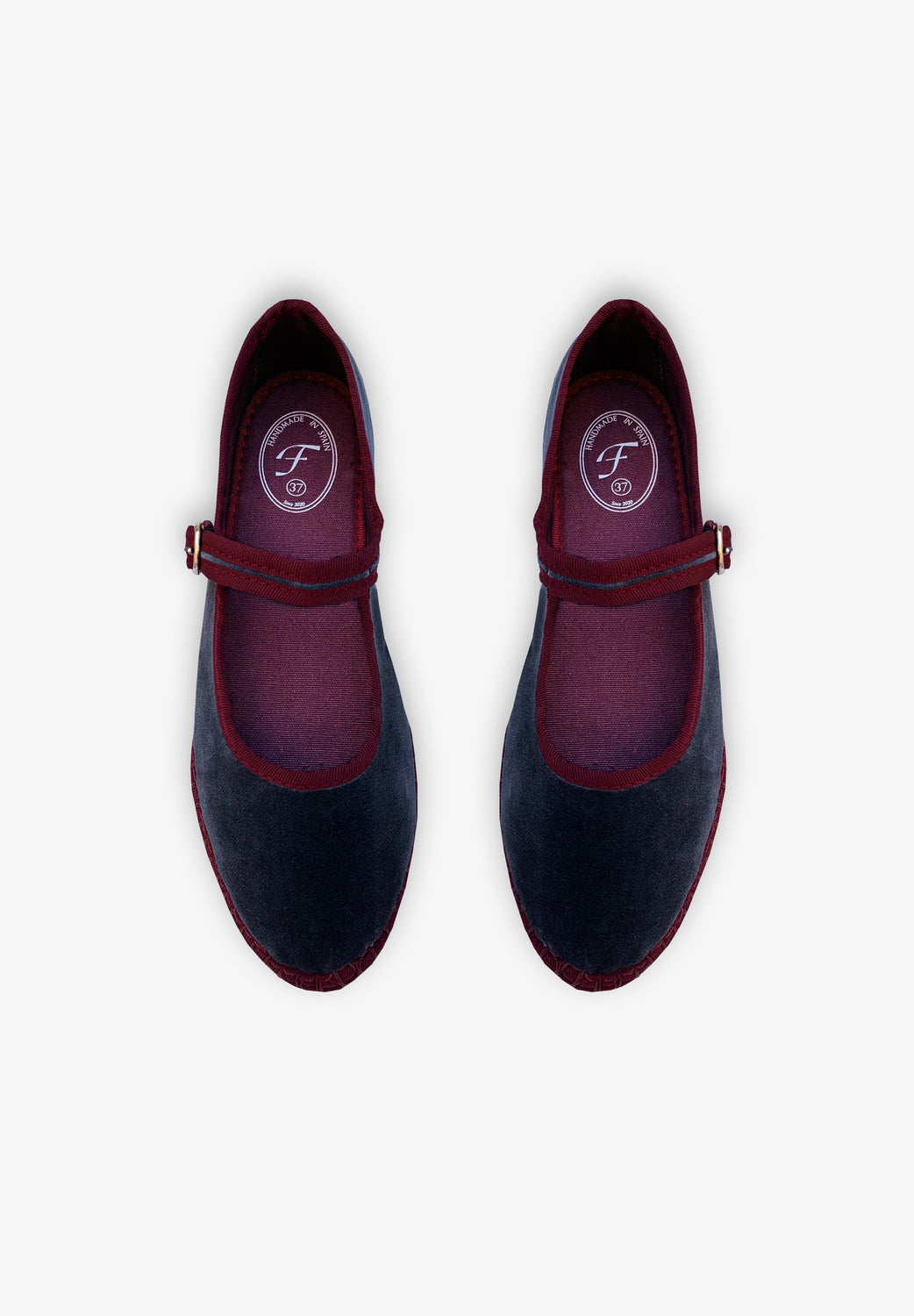 Alpergatas Flabelus confecionadas em veludo 100% orgânico.
