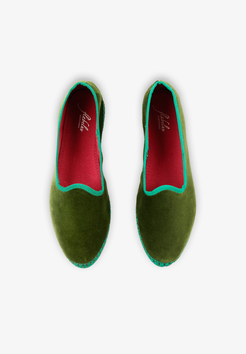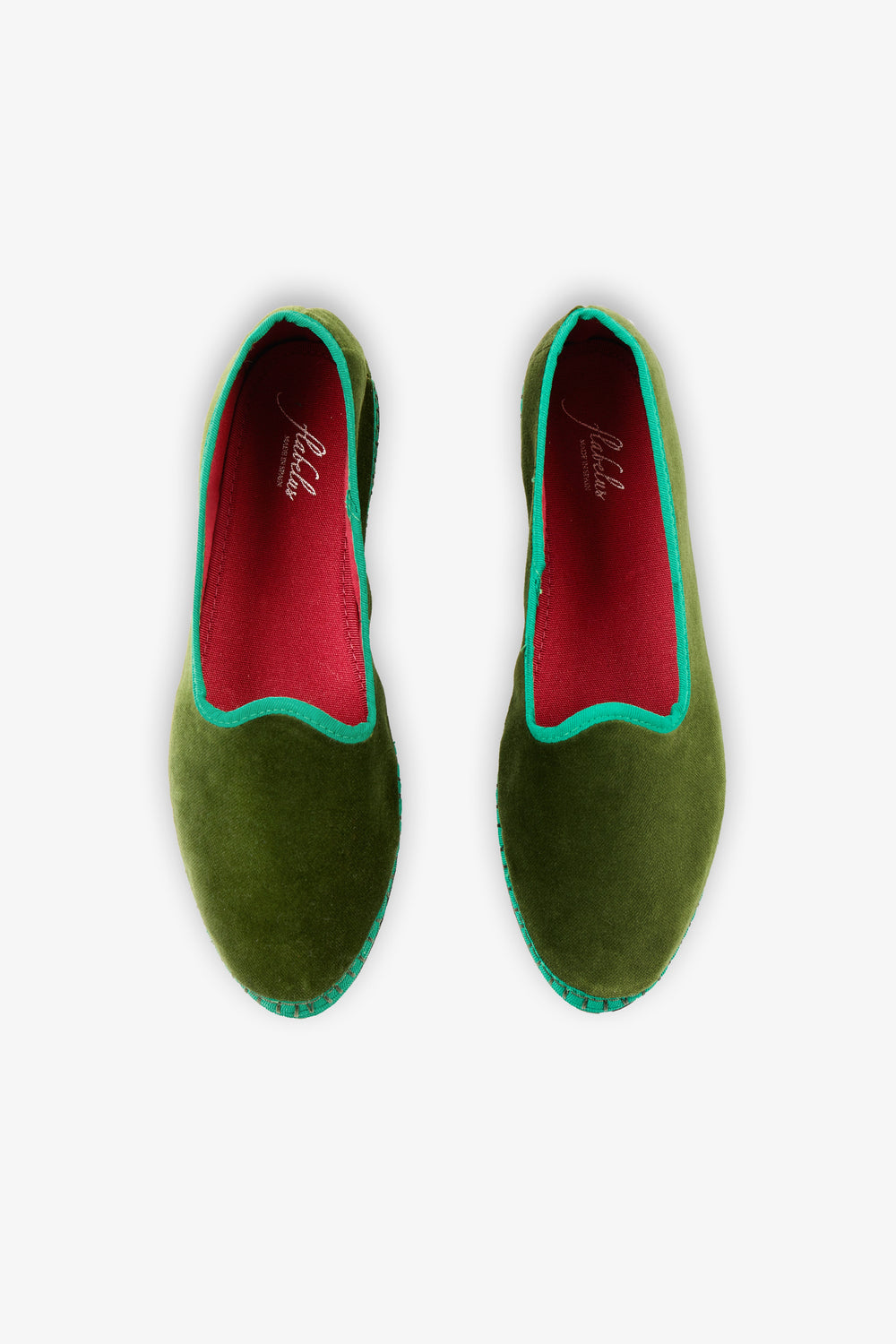 Alpergatas Flabelus confecionadas em veludo 100% orgânico.