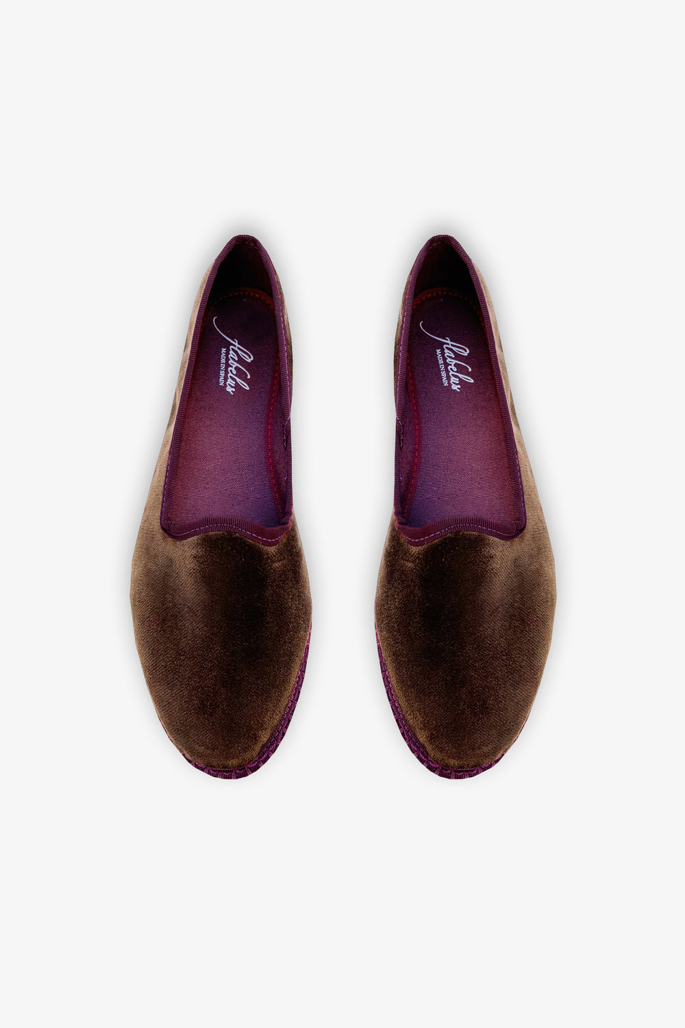 Alpergatas Flabelus confecionadas em veludo 100% orgânico.