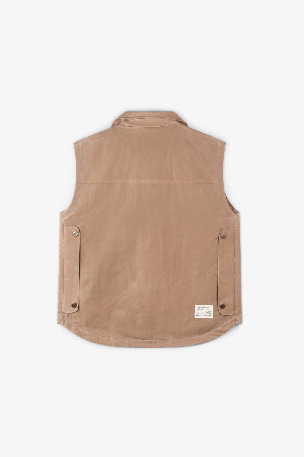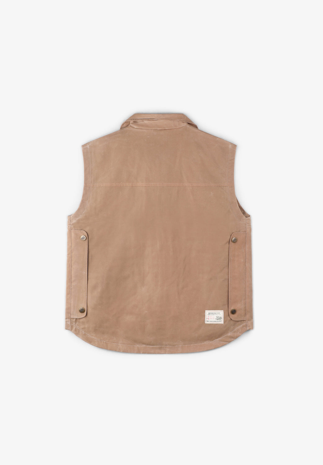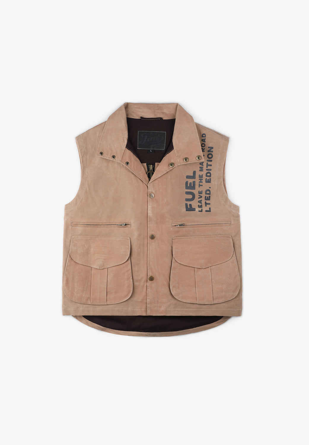 Colete Fuel Motocycles confecionado em tecido de algodão encerado.