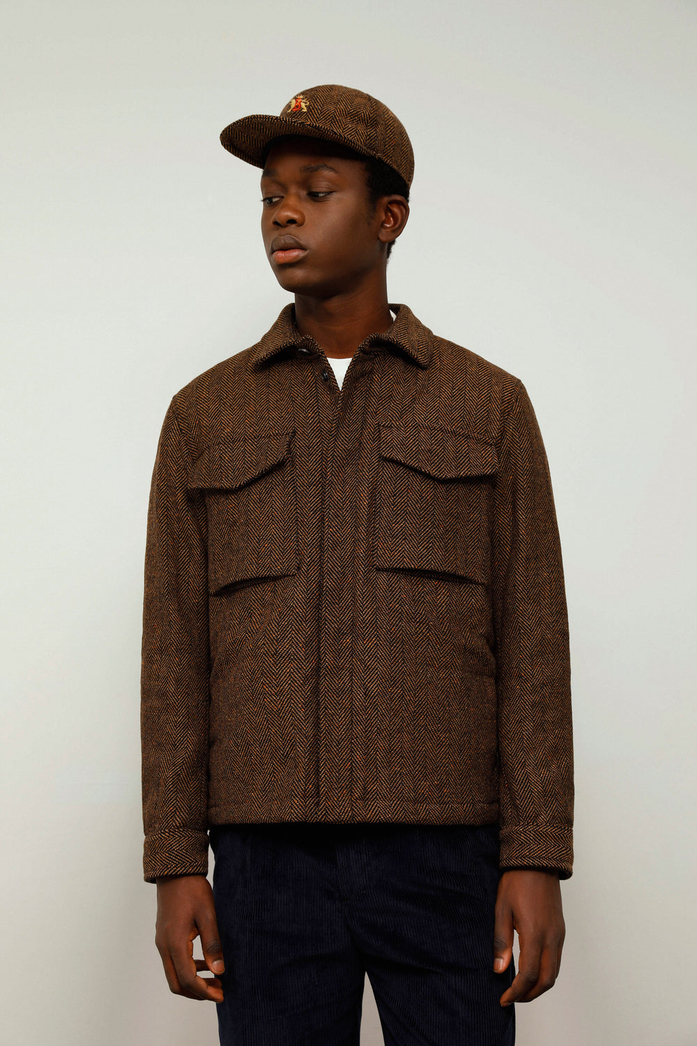 Chaqueta Baracuta confeccionada en tejido mezcla de lana en espiga.