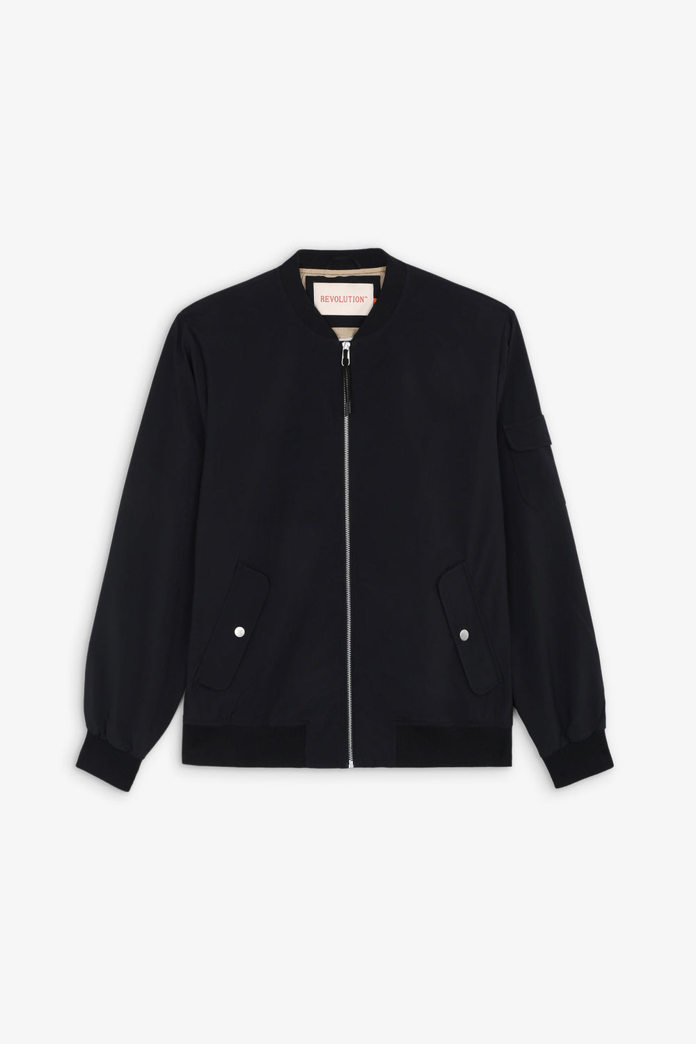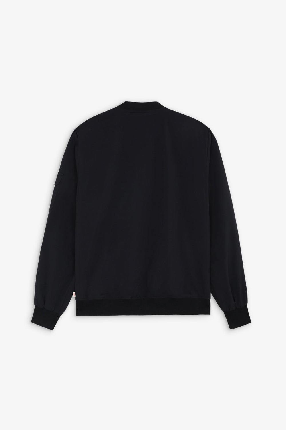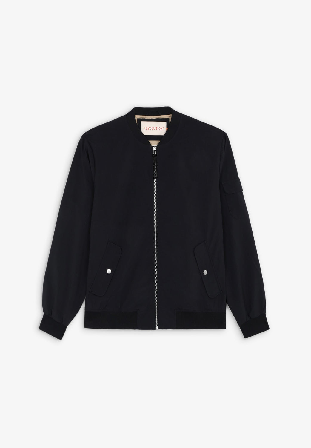 Casaco bomber confecionado em tecido de mistura de poliéster reciclado e elastano.