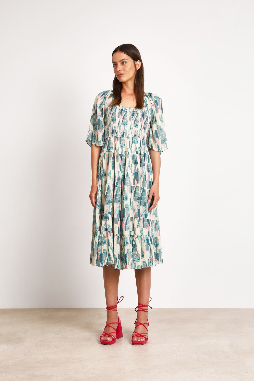 Vestido midi Bash confecionado em tecido de mistura de algodão e modal.