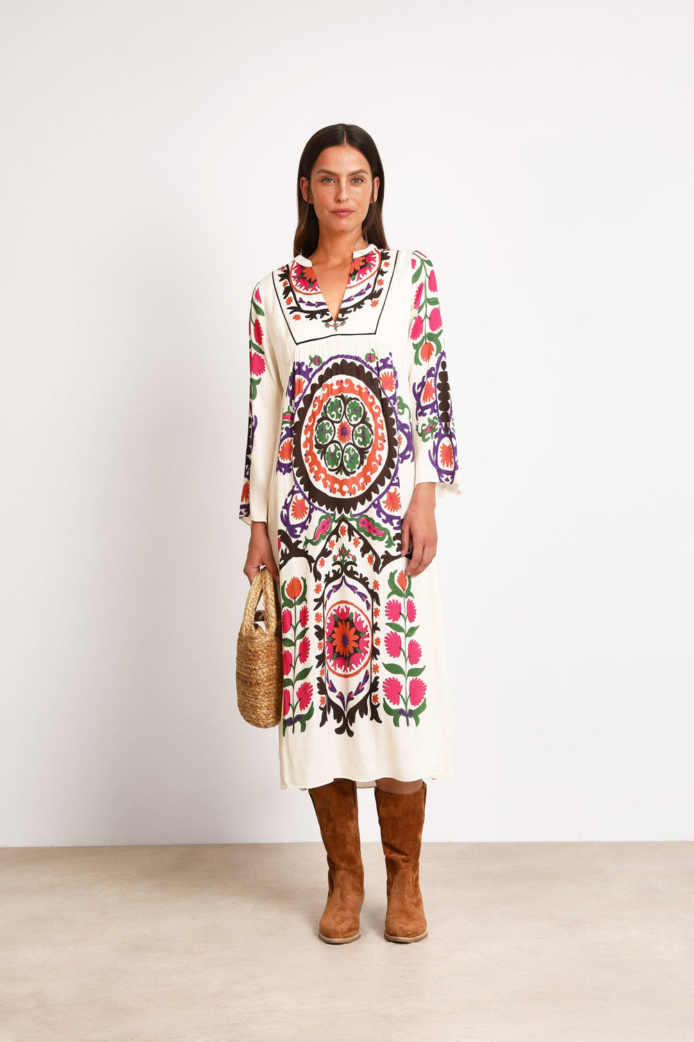 Vestido midi ba&sh confecionado em tecido 100% viscose e forro 100% algodão.