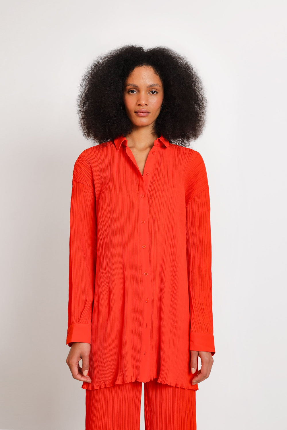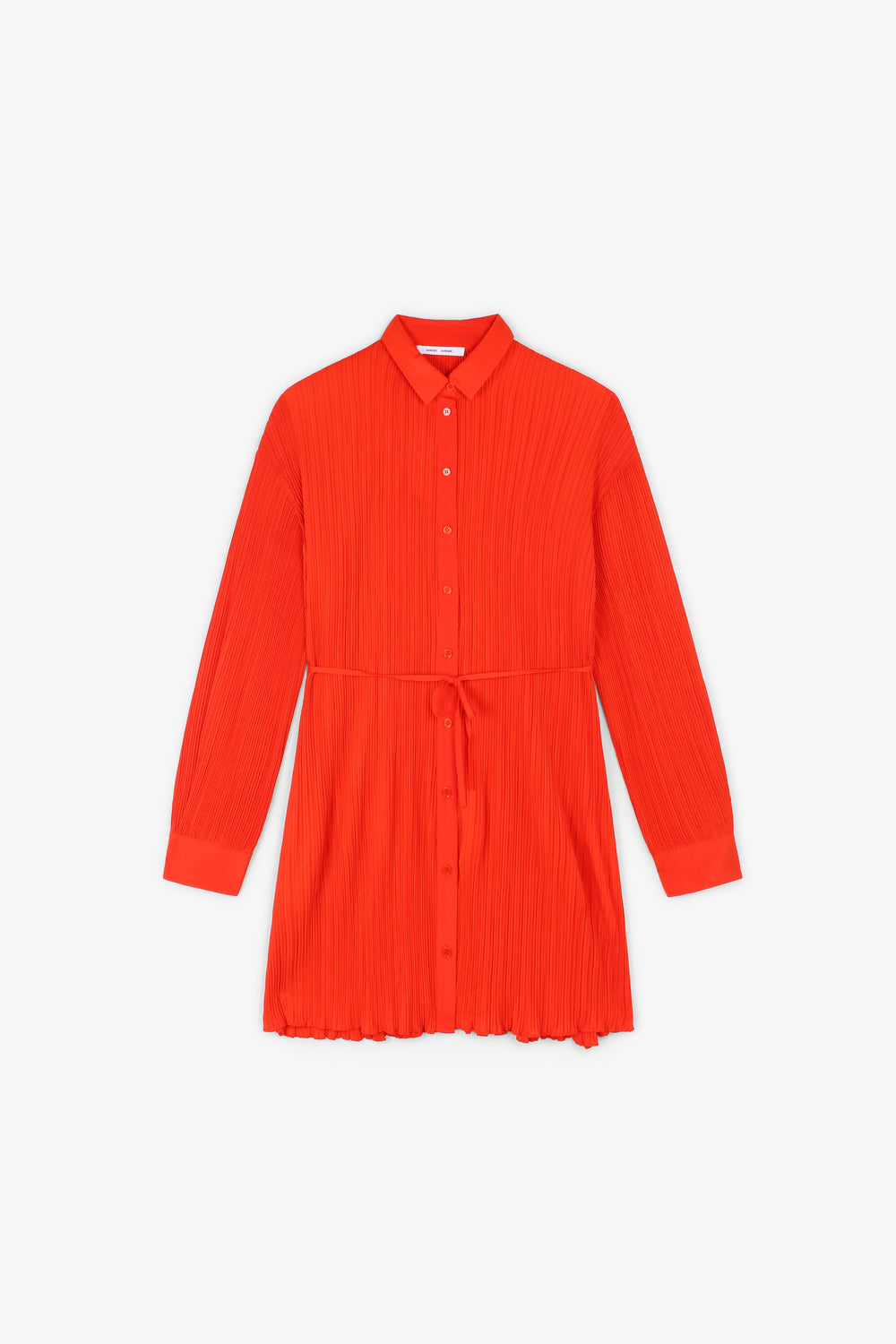 Vestido midi Samsoe confecionado em tecido plissado 100% poliéster, certificado GRS.