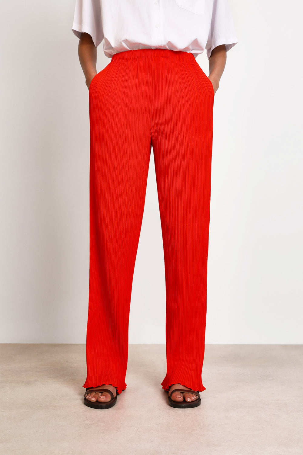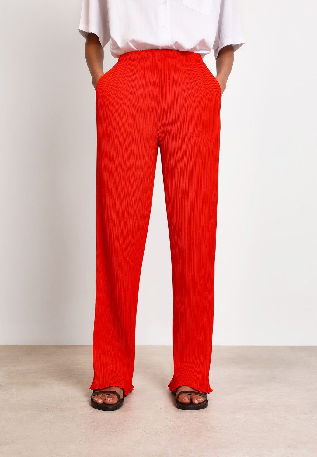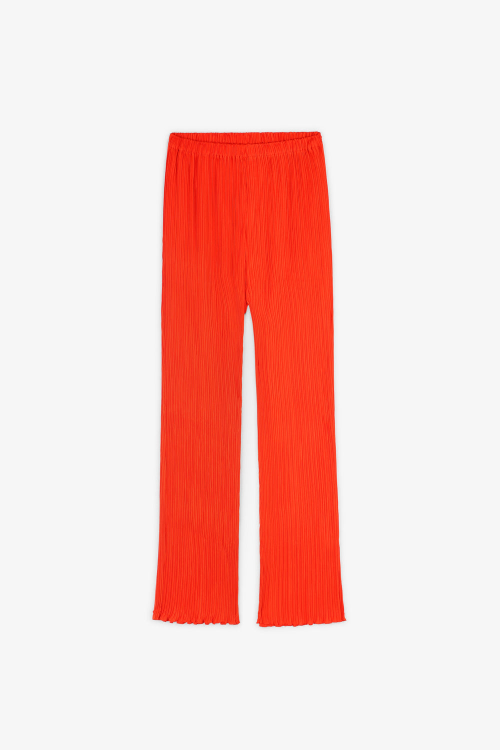 Calças Samsoe confecionadas em tecido plissado 100% poliéster, certificado GRS.