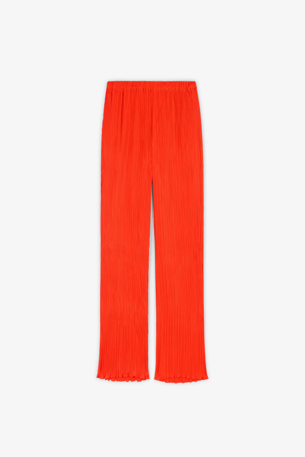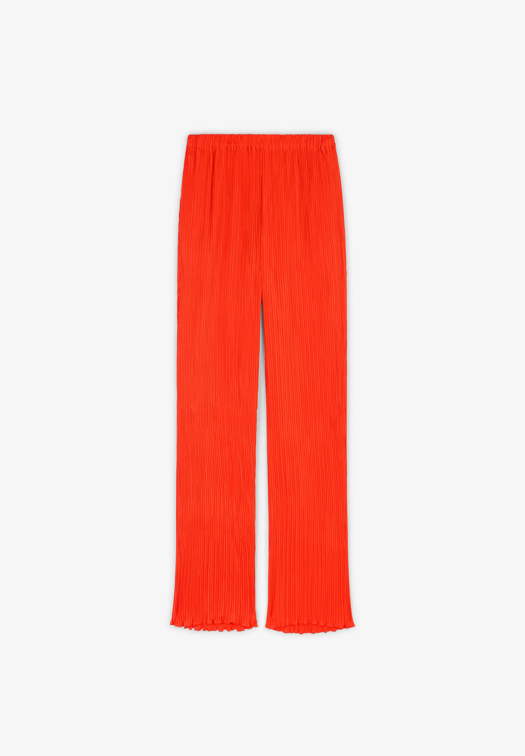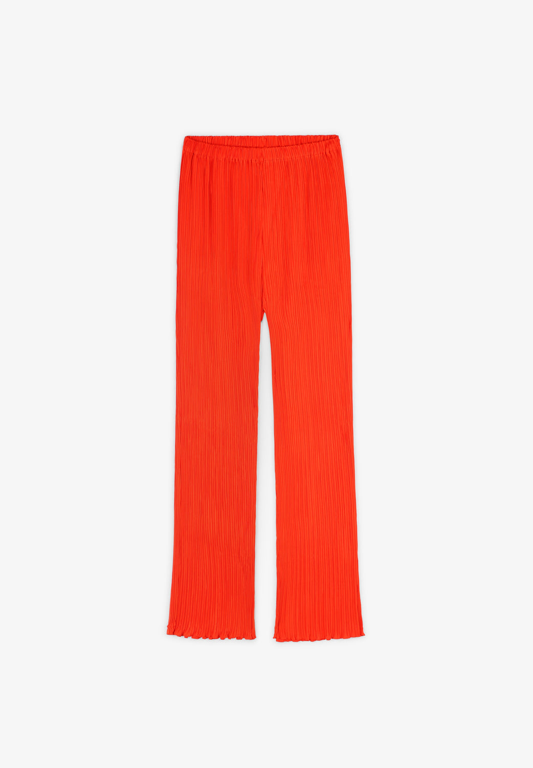 Calças Samsoe confecionadas em tecido plissado 100% poliéster, certificado GRS.