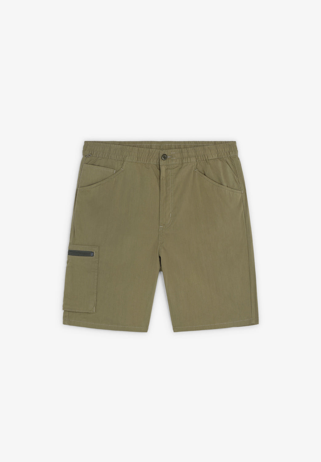 - Múltiplos bolsos: um com fecho de correr na coxa.
