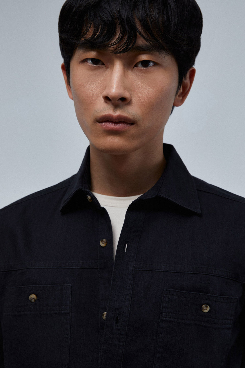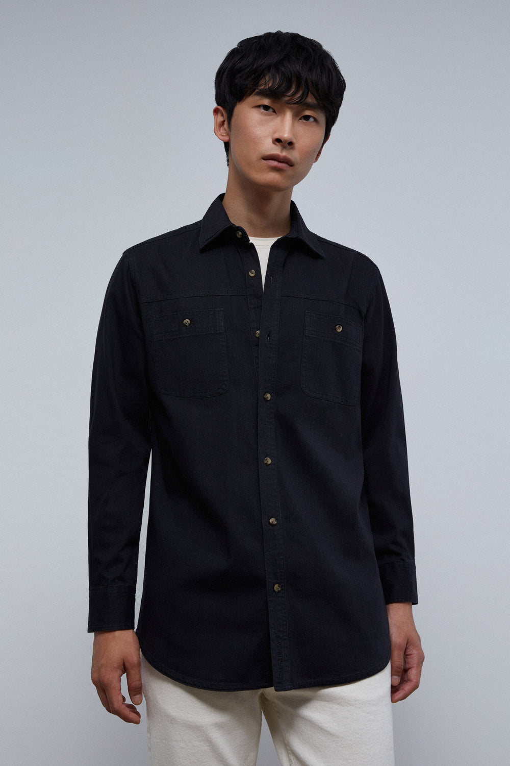 Camisa denim com bolso duplo no peito