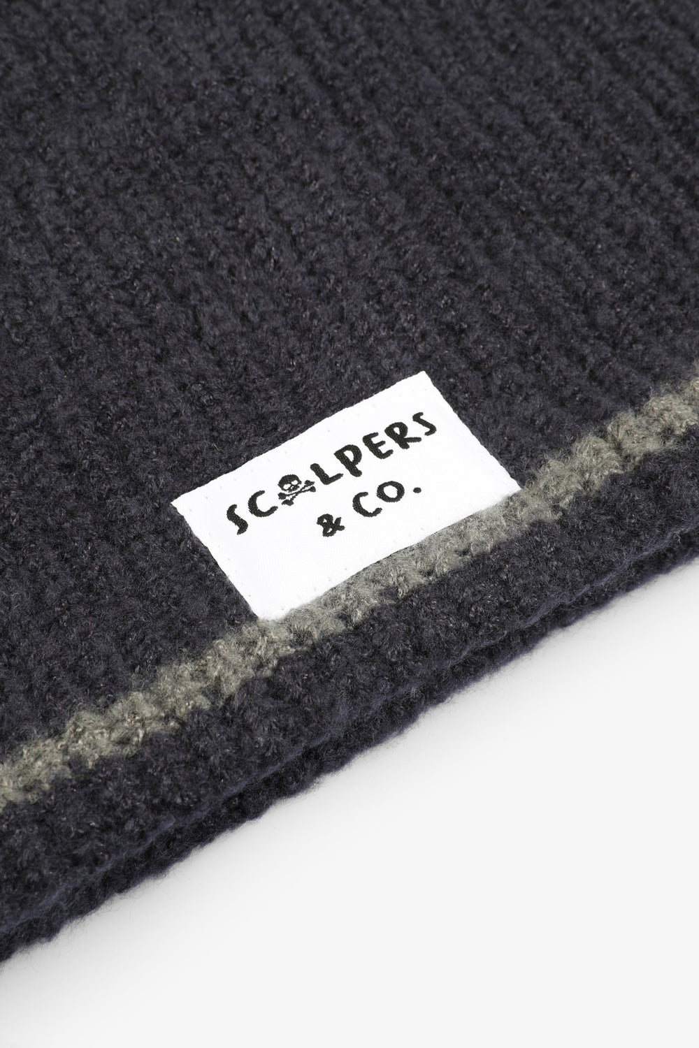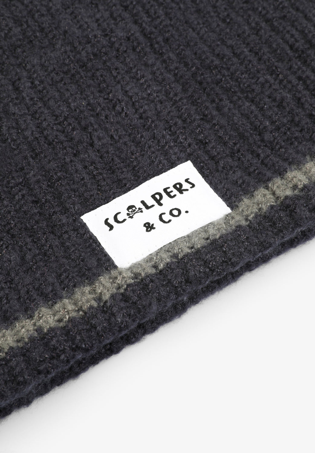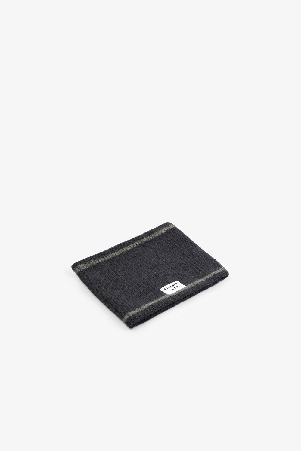 Gola de malha em canelado com riscas em contraste.