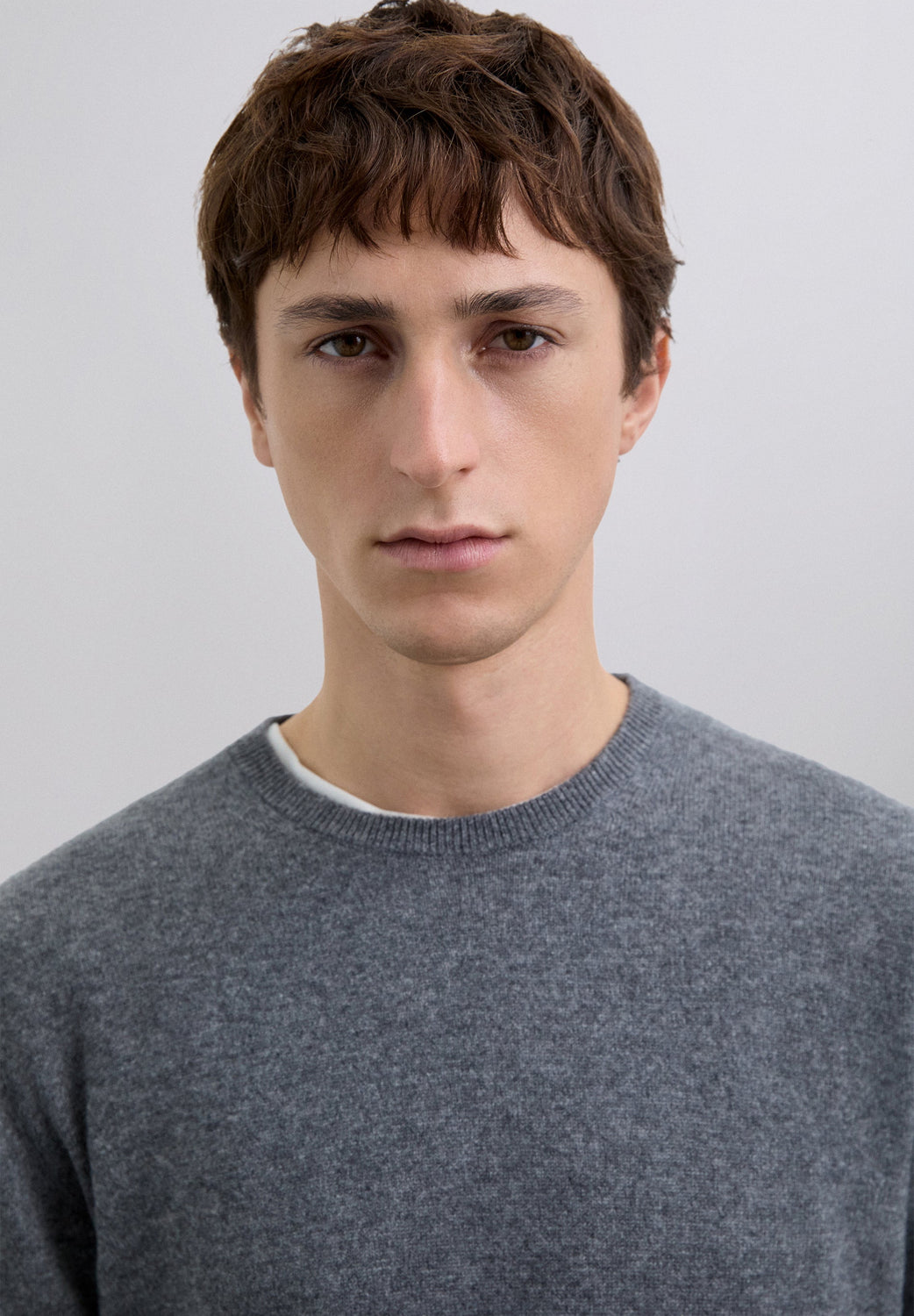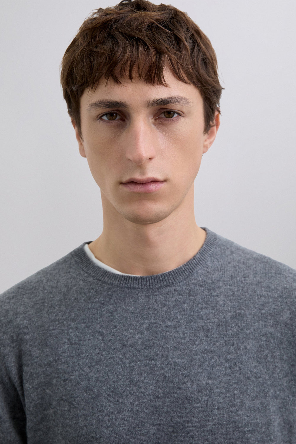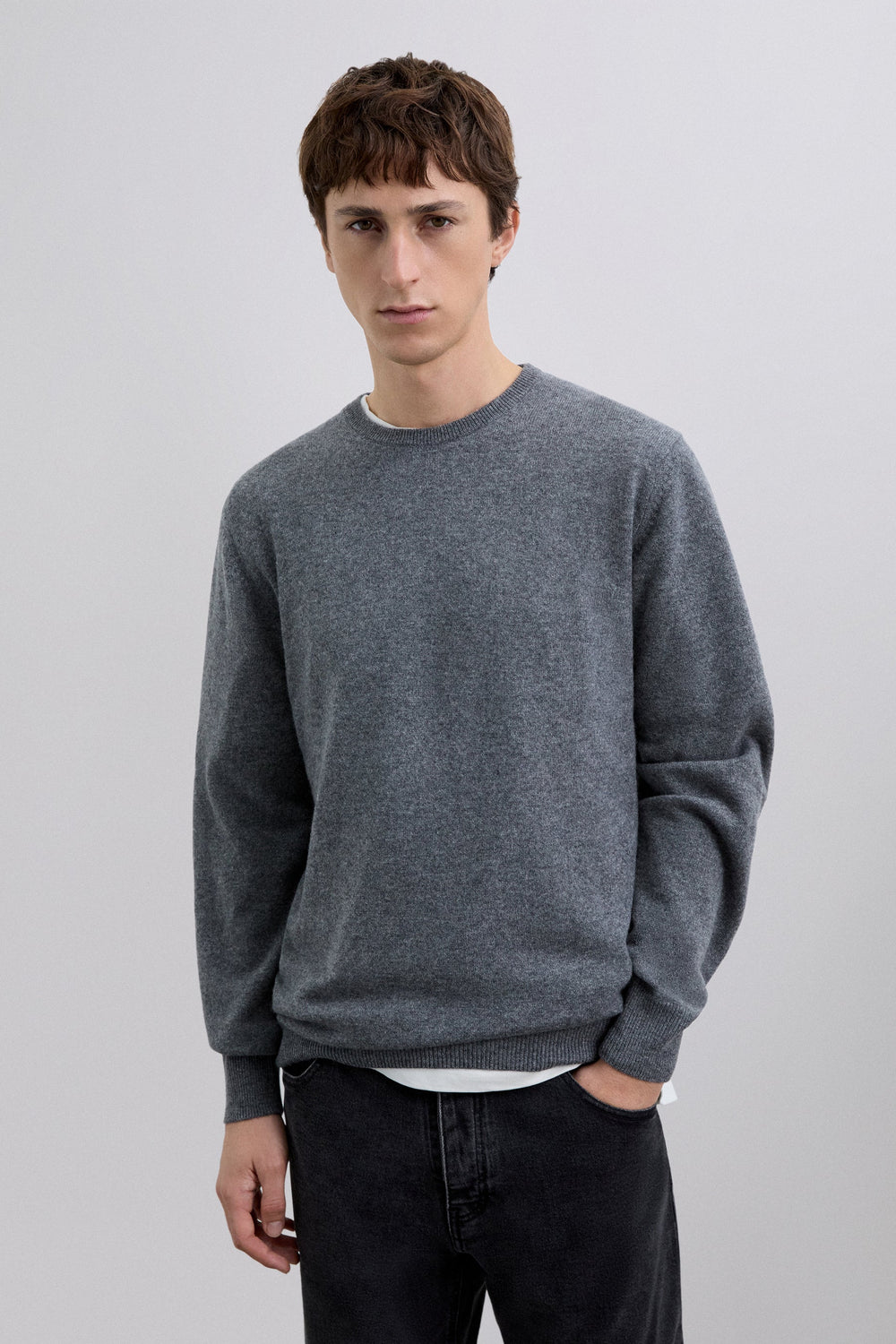 Camisola confeccionada em 100% caxemira. Corte Regular Fit. Gola redonda. Manga comprida.